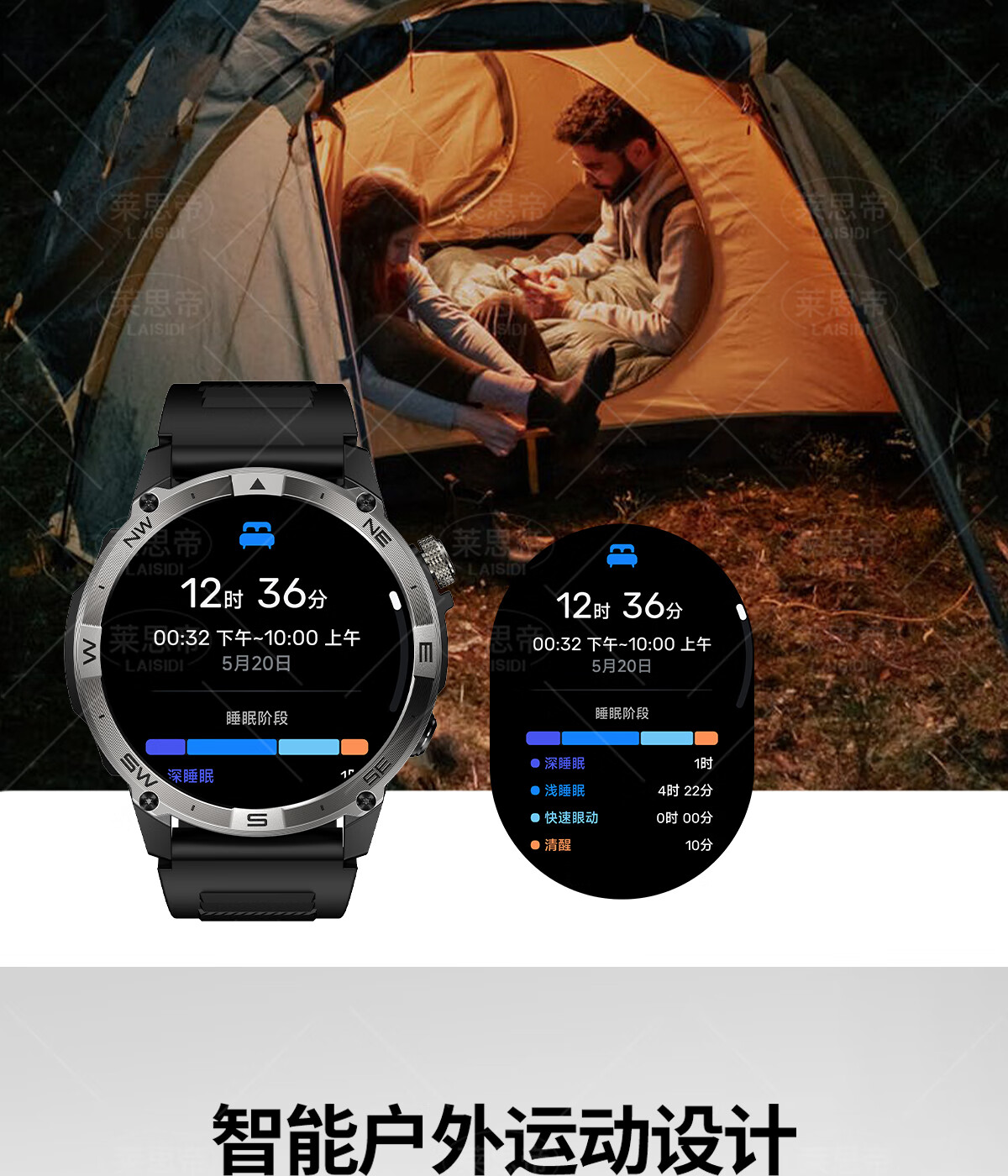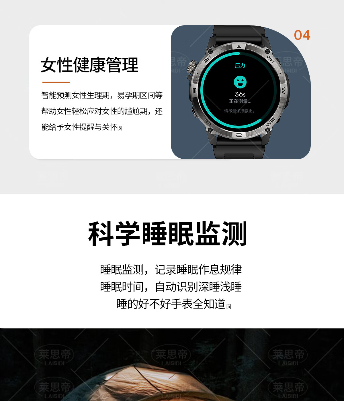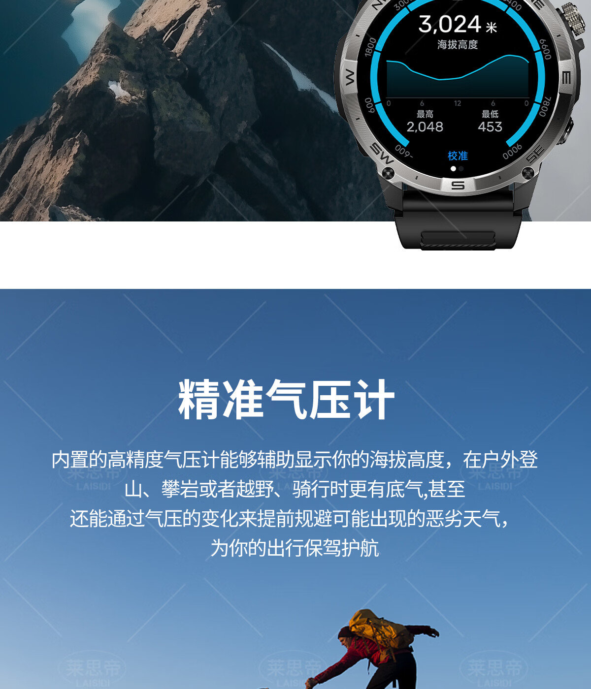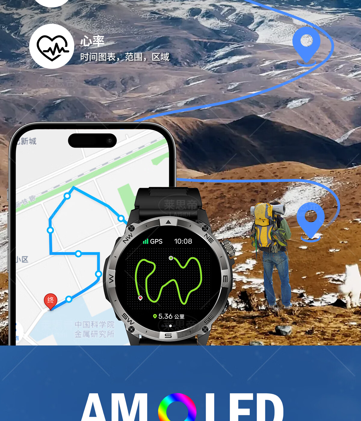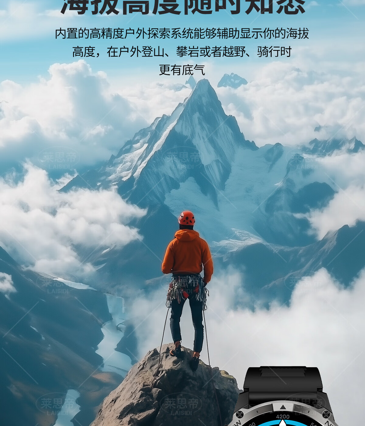 莱思帝运动手表智能马拉松专业GPS定位轨迹跑步心率配速海拔气压指南针血氧睡眠监测防水长续航消息提醒 高贵黑
