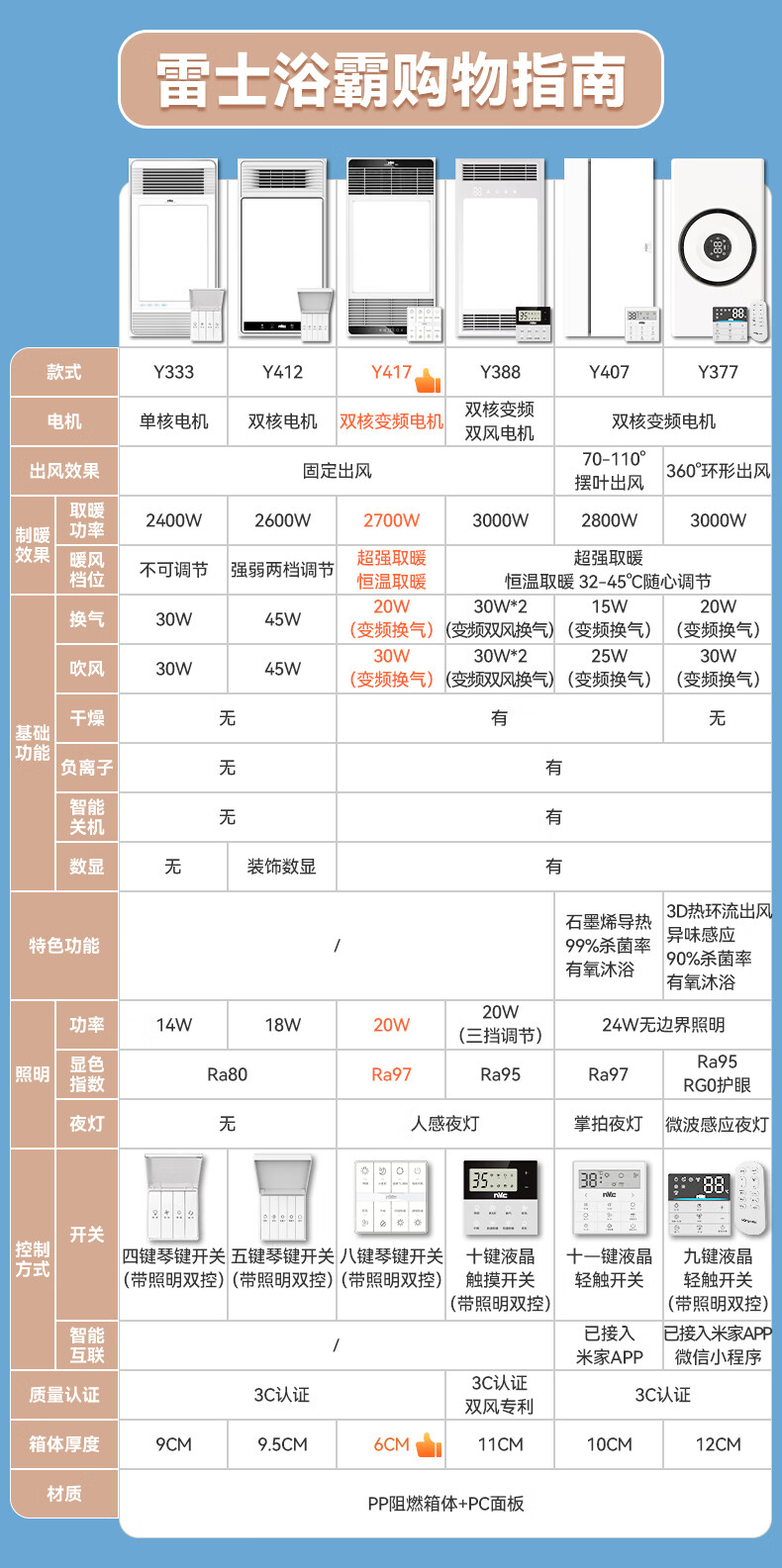 雷士(NVC)政府补贴风暖变频超薄浴霸人感夜灯浴室暖风照明排风换气一体Y417