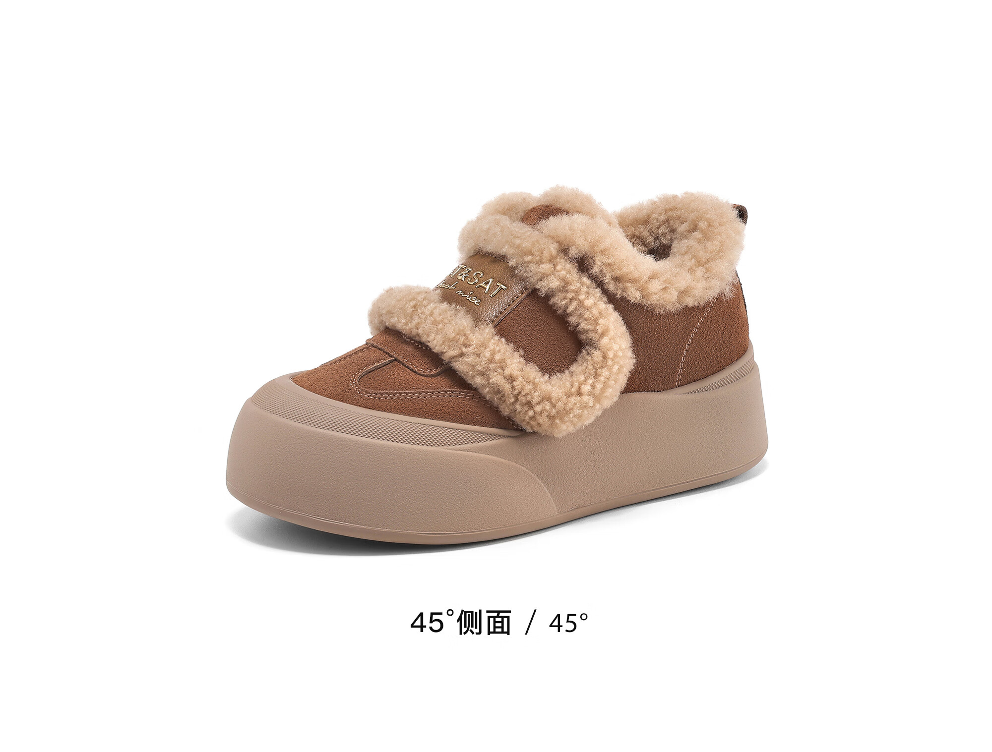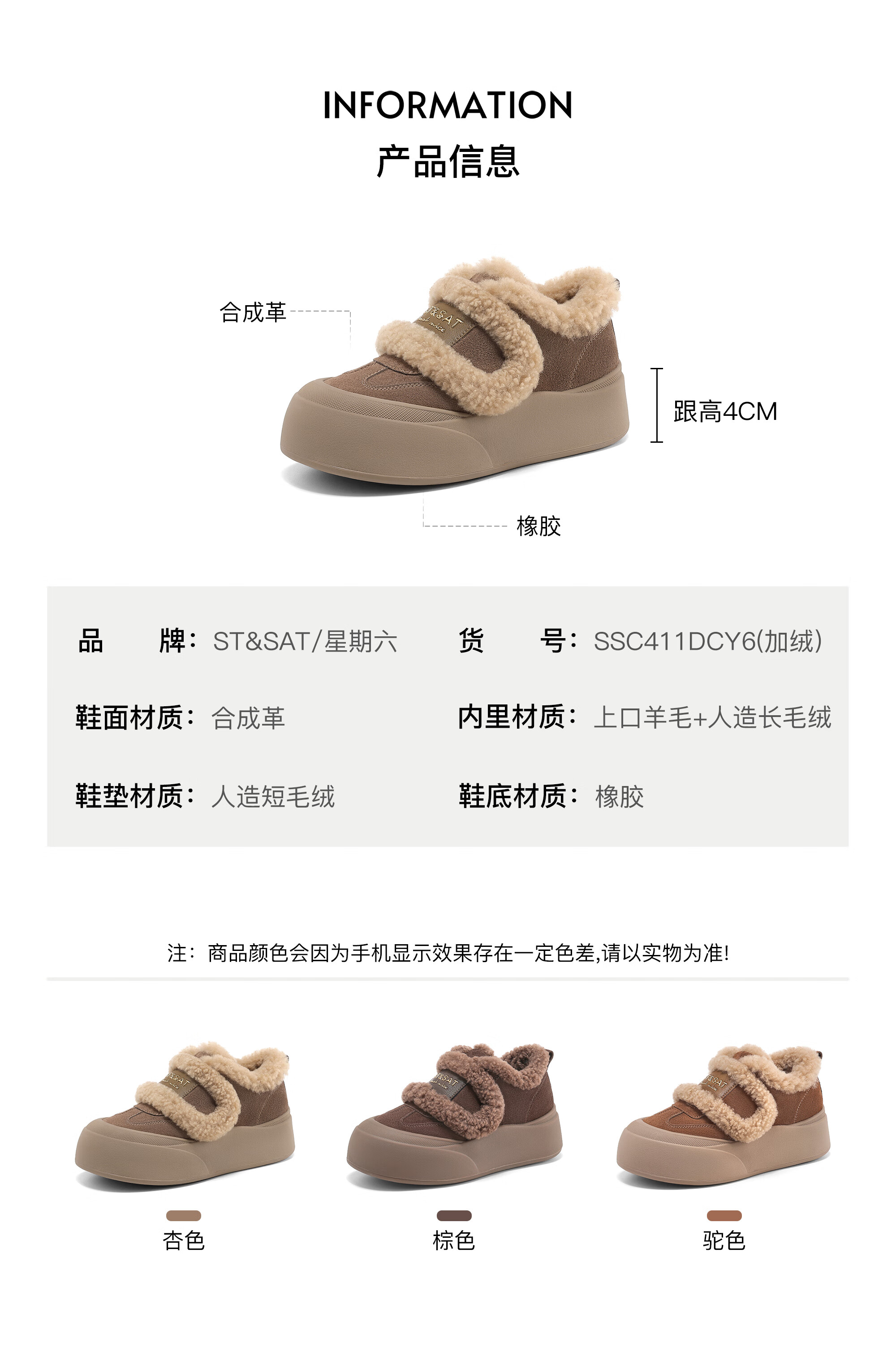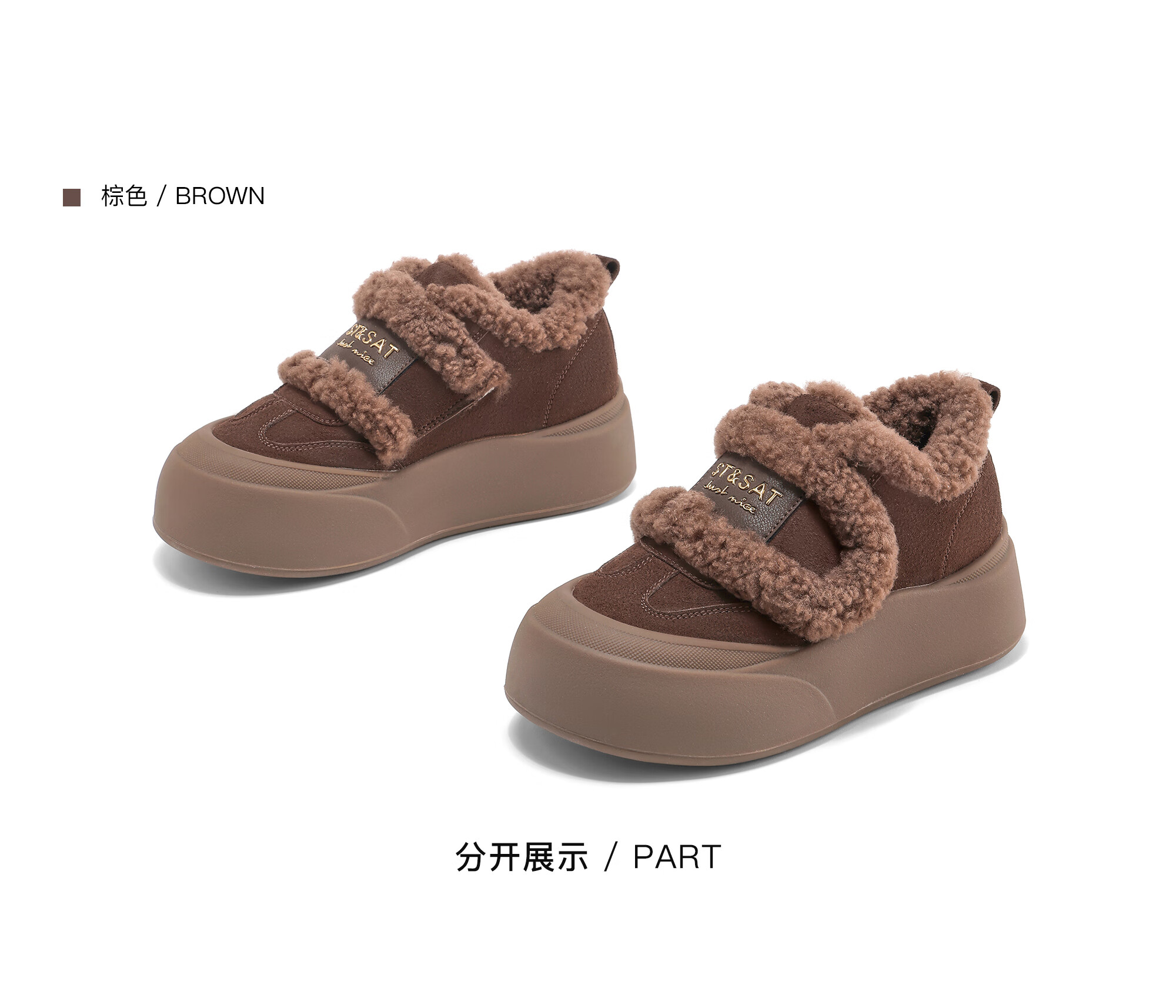 星期六厚底雪地靴女款2025新款冬季加绒魔术贴板鞋防滑加厚保暖棉鞋 棕色 【加绒保暖】跟高4cm 37