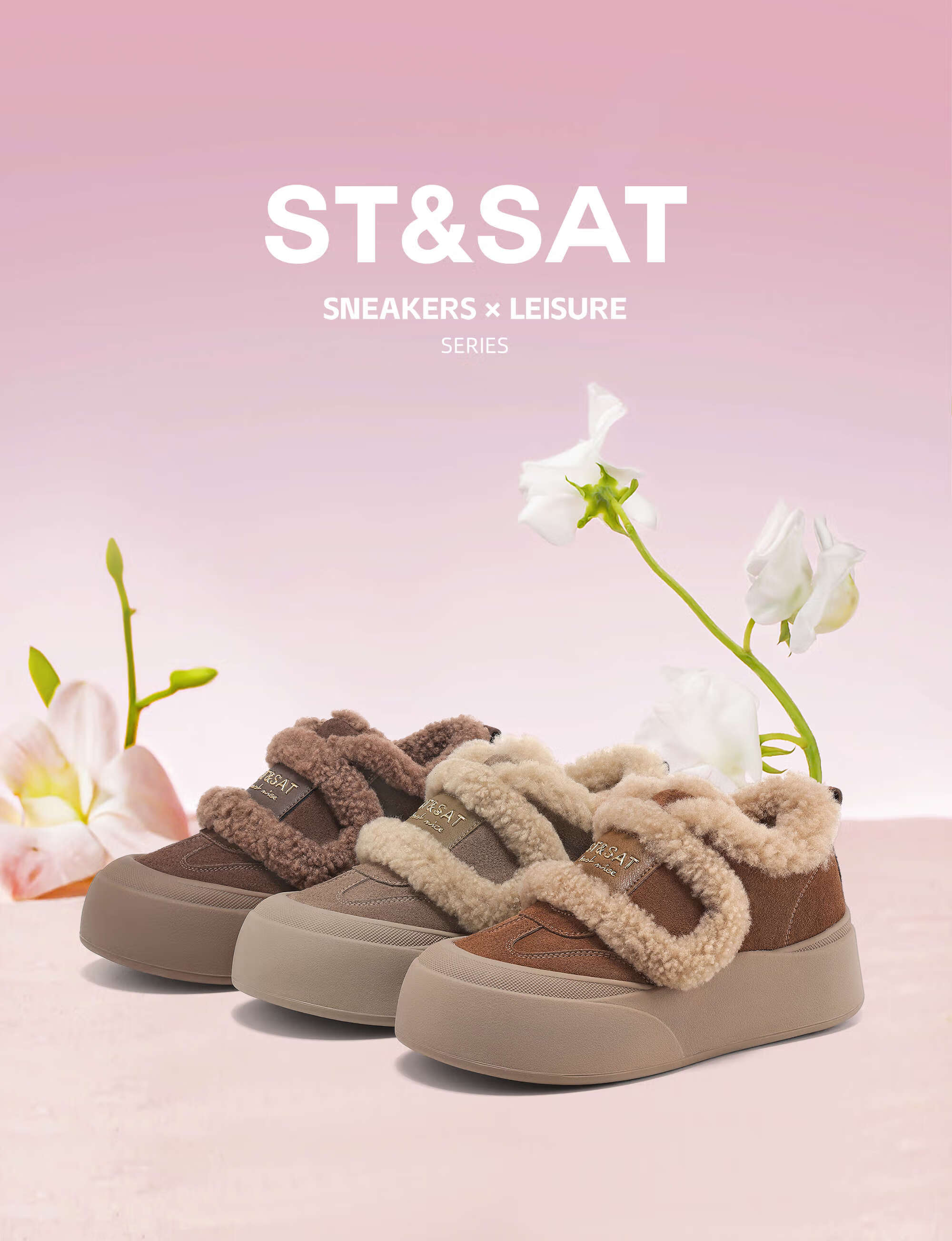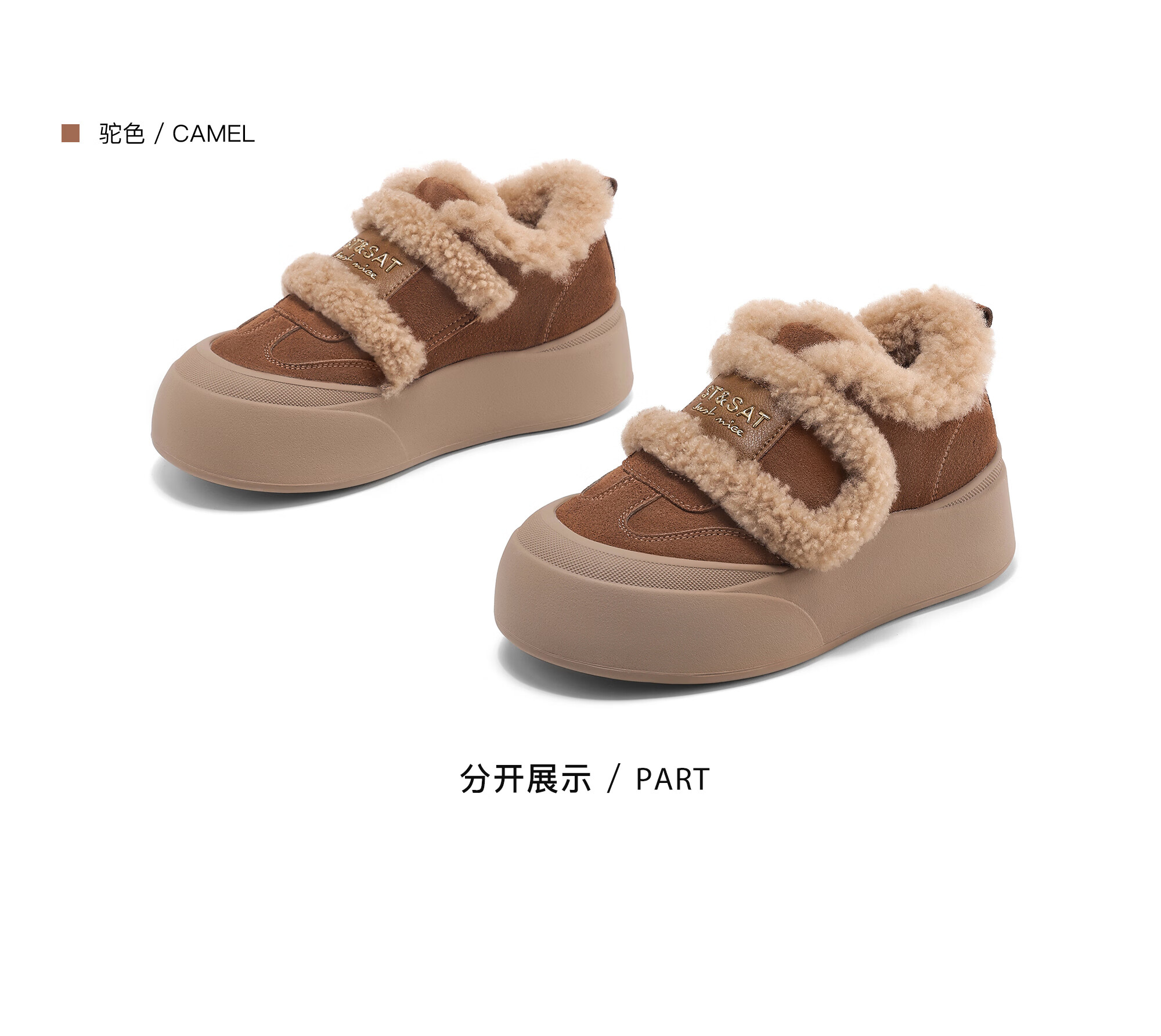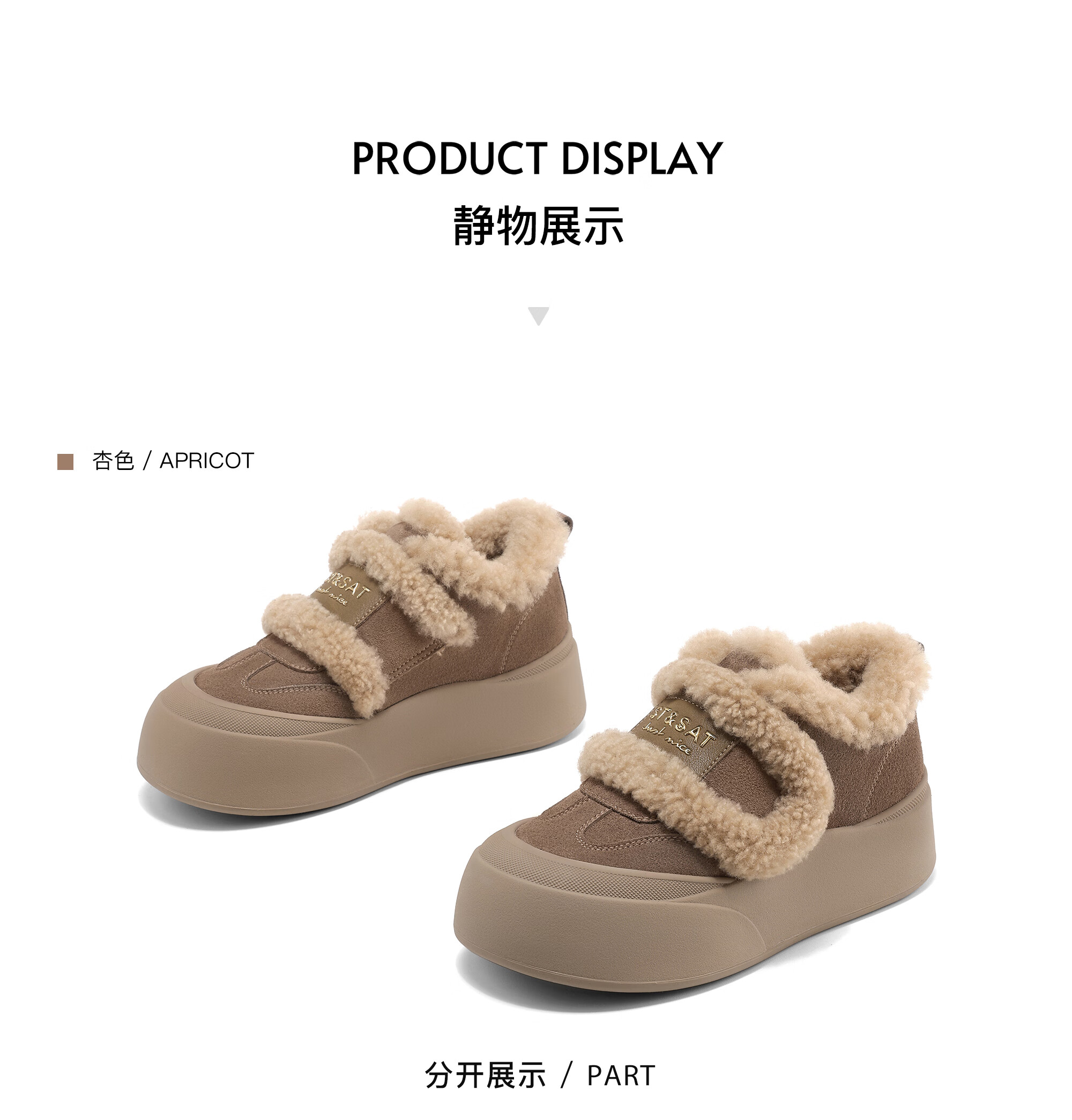 星期六厚底雪地靴女款2025新款冬季加绒魔术贴板鞋防滑加厚保暖棉鞋 棕色 【加绒保暖】跟高4cm 37