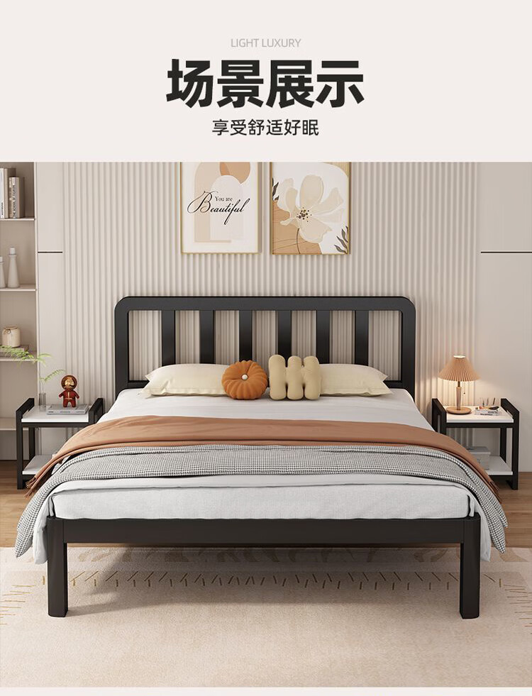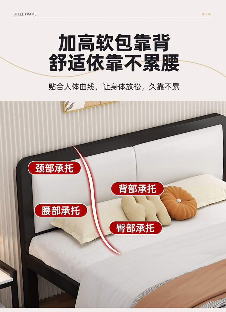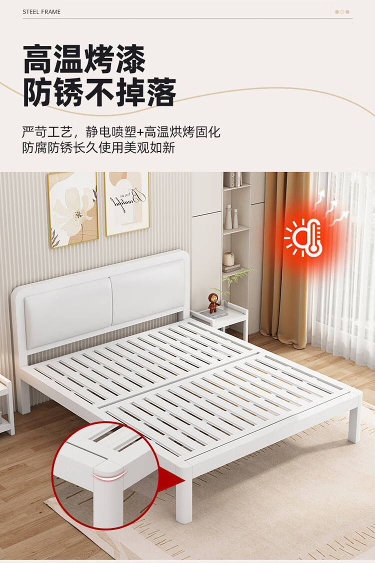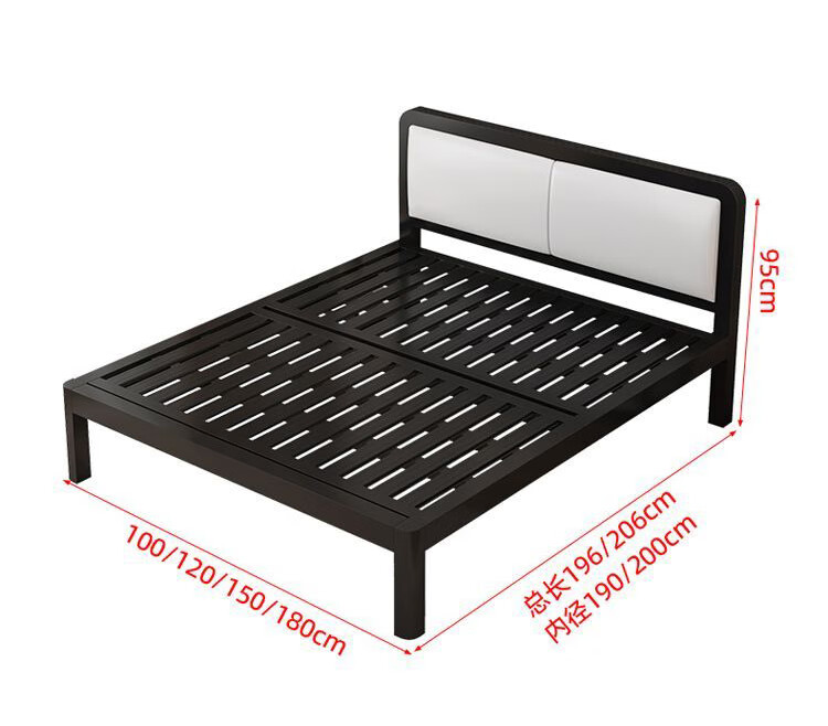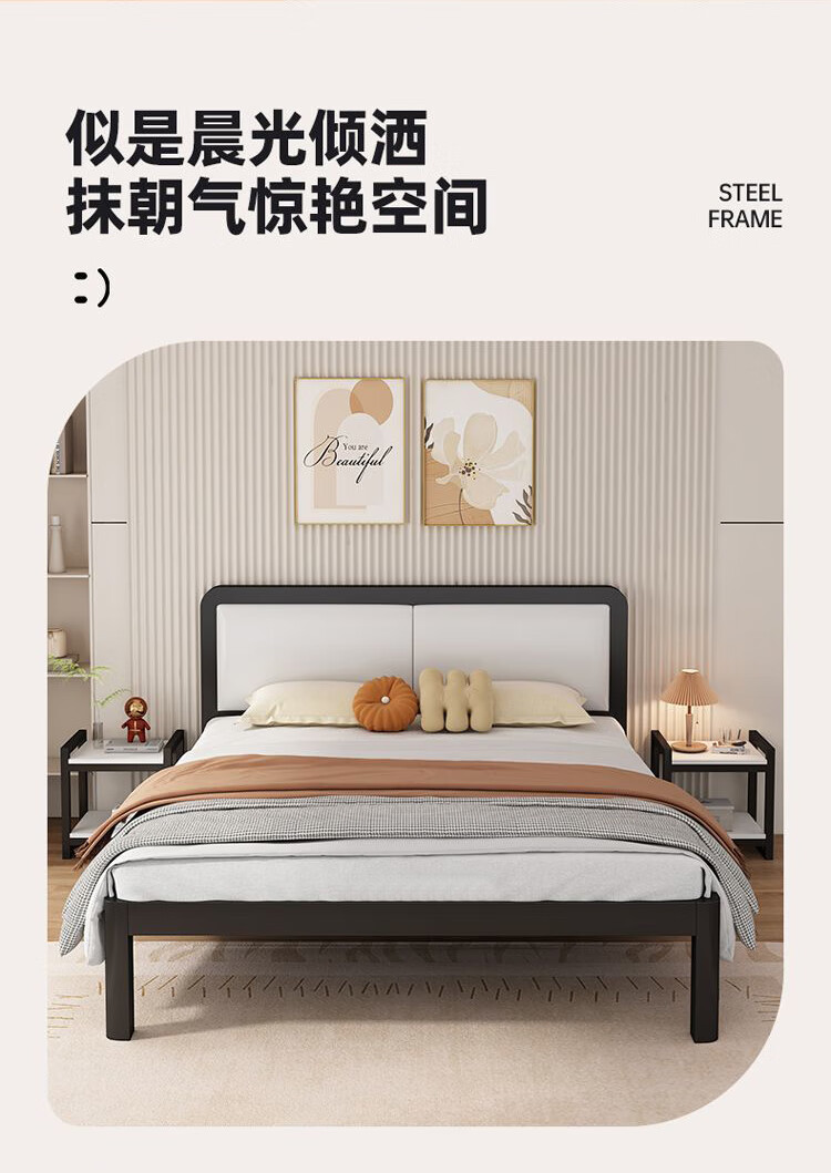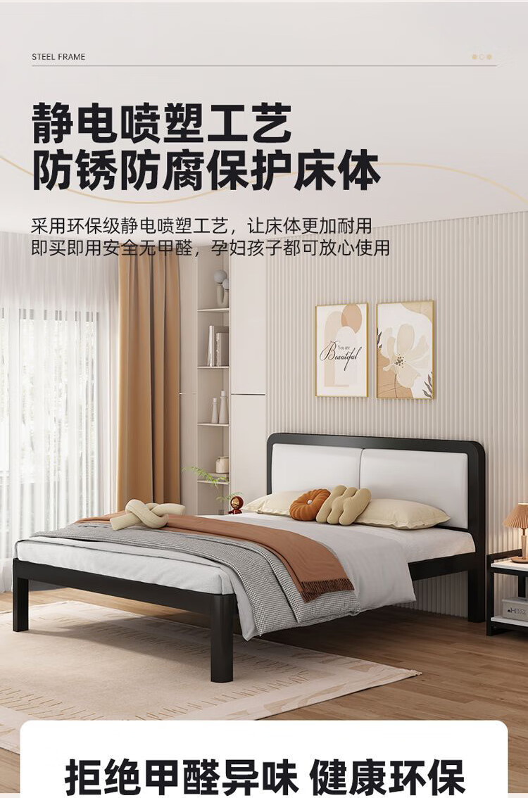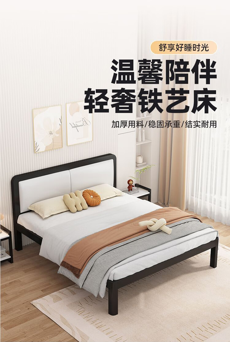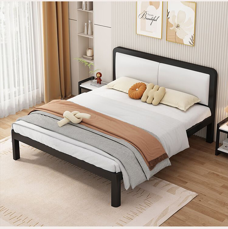 科虎铁艺床双人床主卧铁架床1.8米x2米铁床 黑床架白软包【20cm弹簧垫】 180*190/200cm【默认200cm】