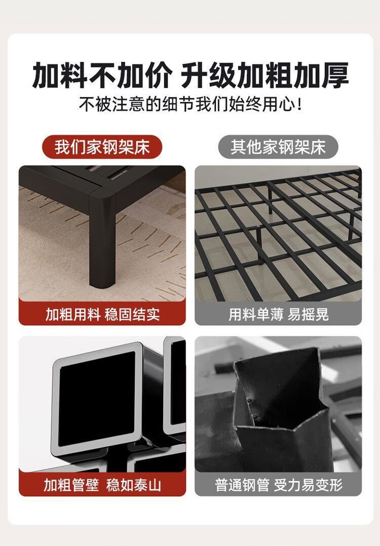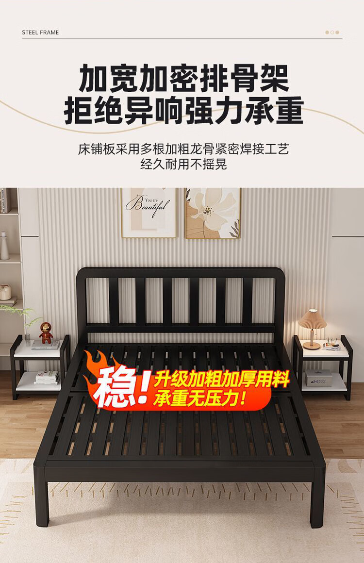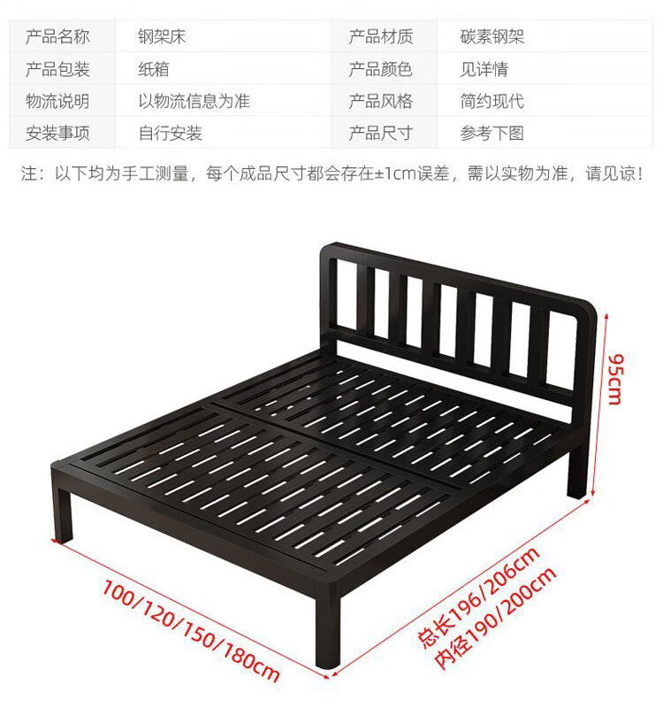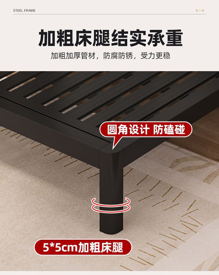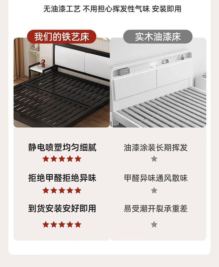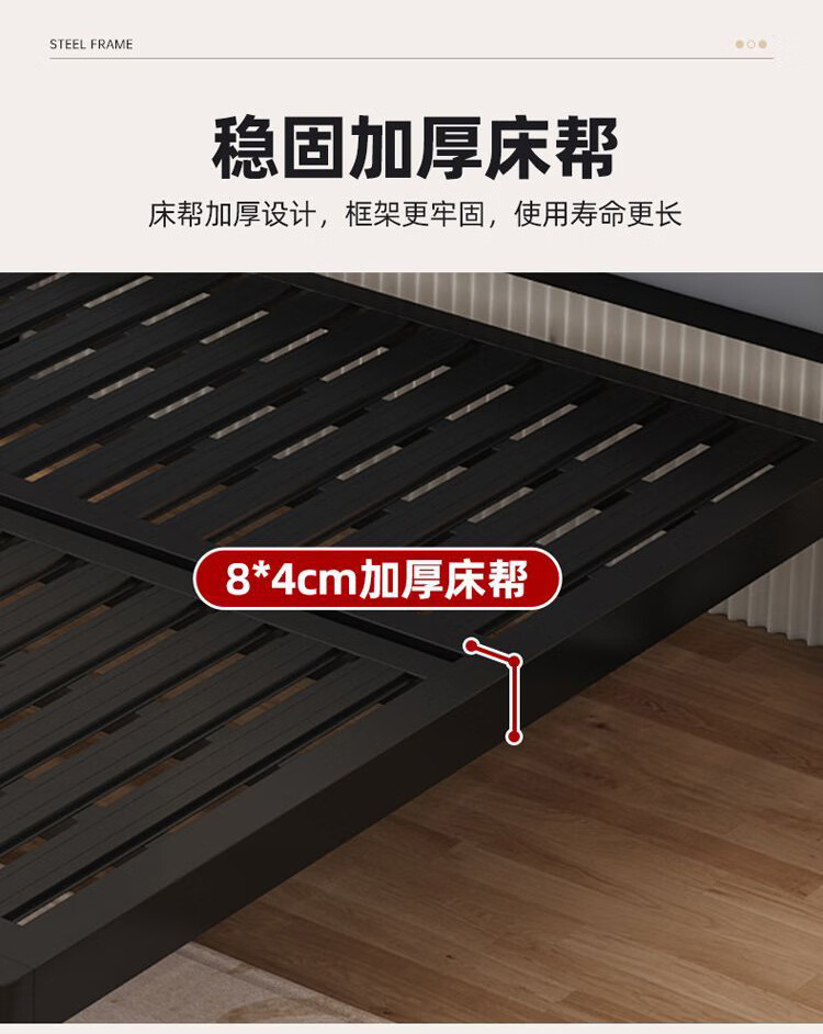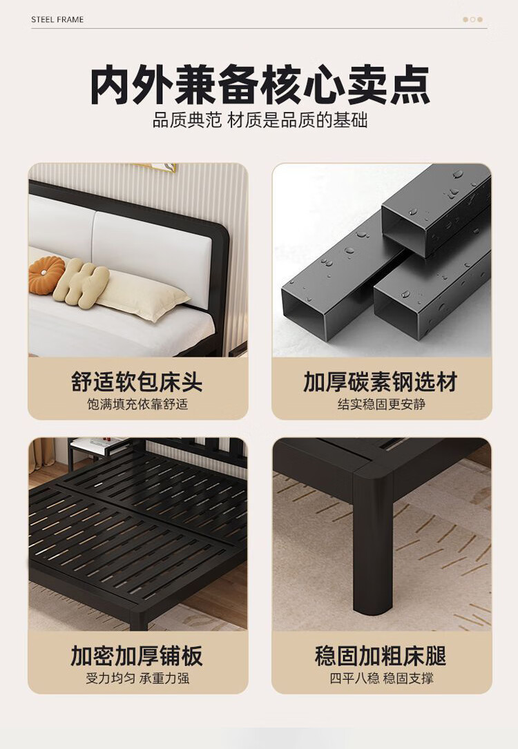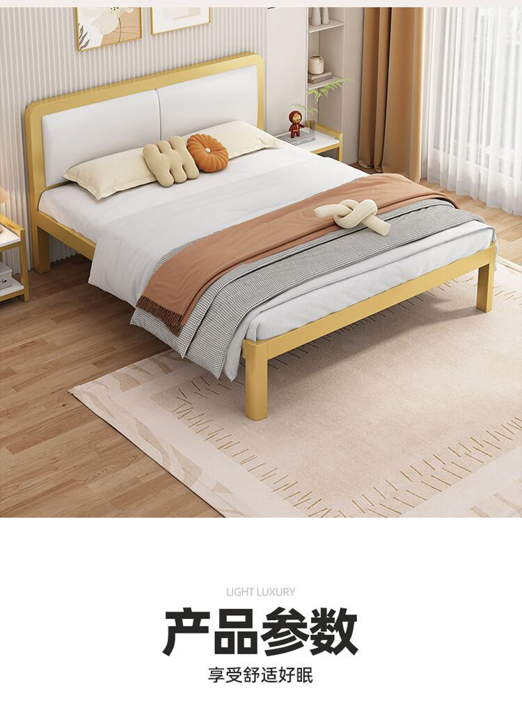 科虎铁艺床双人床主卧铁架床1.8米x2米铁床 黑床架白软包【20cm弹簧垫】 180*190/200cm【默认200cm】