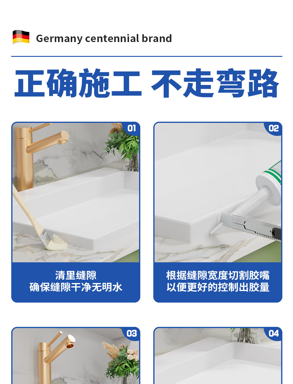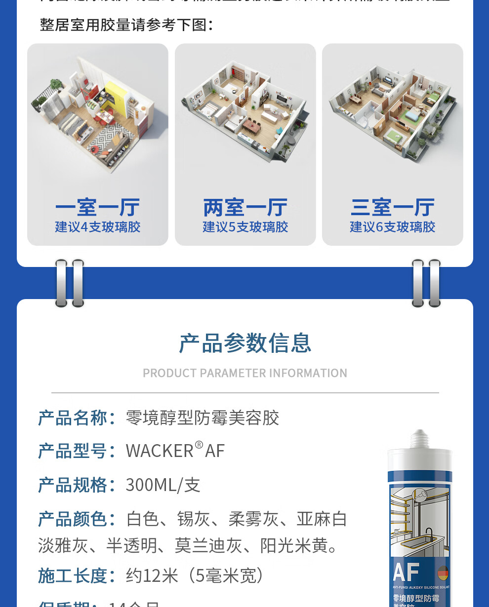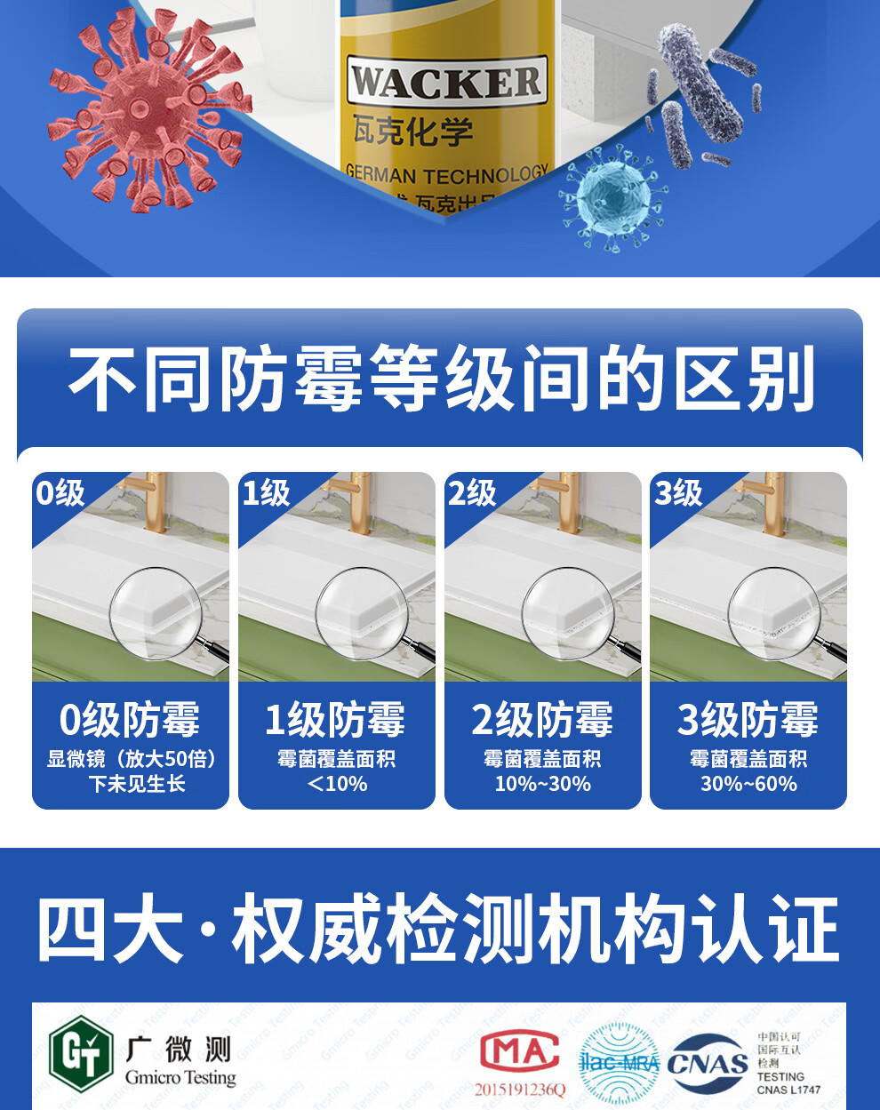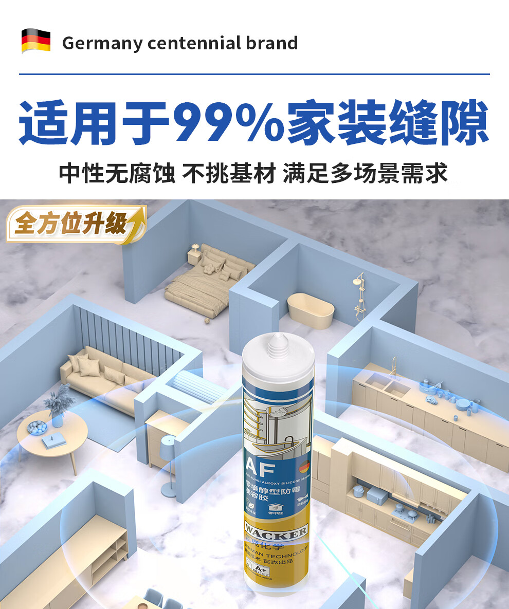 瓦克(WACKER)AF零境12倍时效0级防霉玻璃胶厨卫密封胶防水美容胶马桶封边胶 半透明