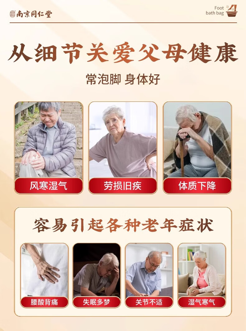 柏佳康南京同仁堂中老年人专用泡脚中药包祛寒驱湿舒筋活血化瘀助眠40包