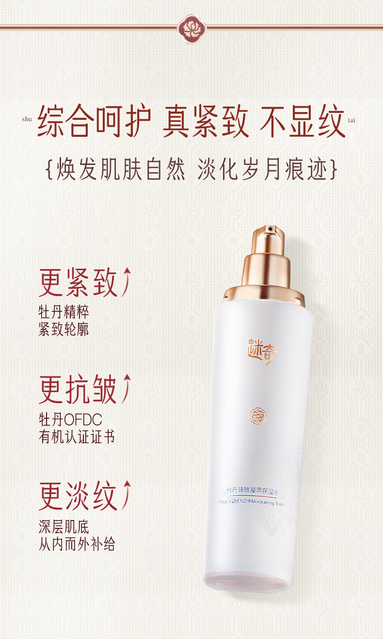 迷奇牡丹臻致凝萃爽肤水保湿补水抗皱紧致护肤品国货100ml送圣诞礼物