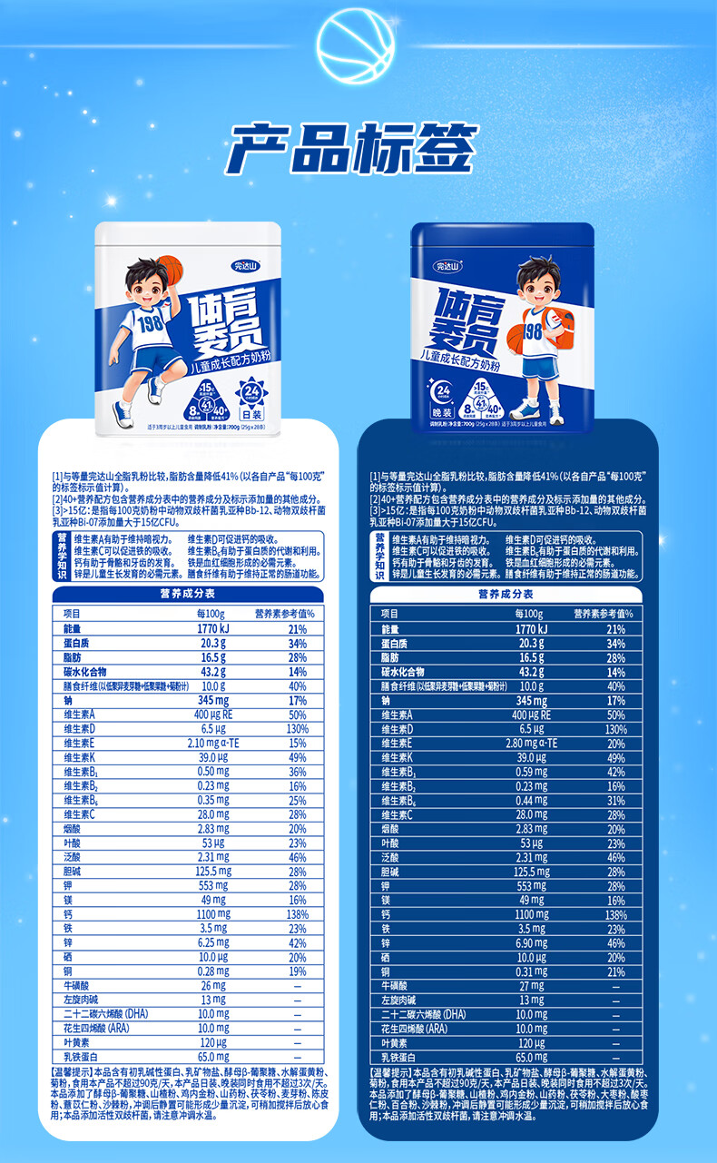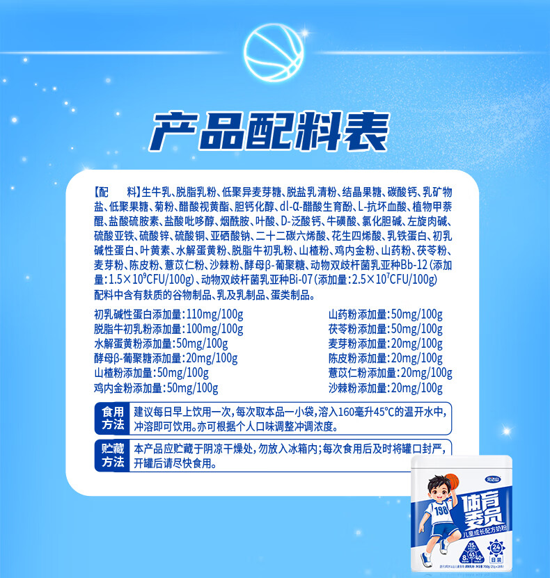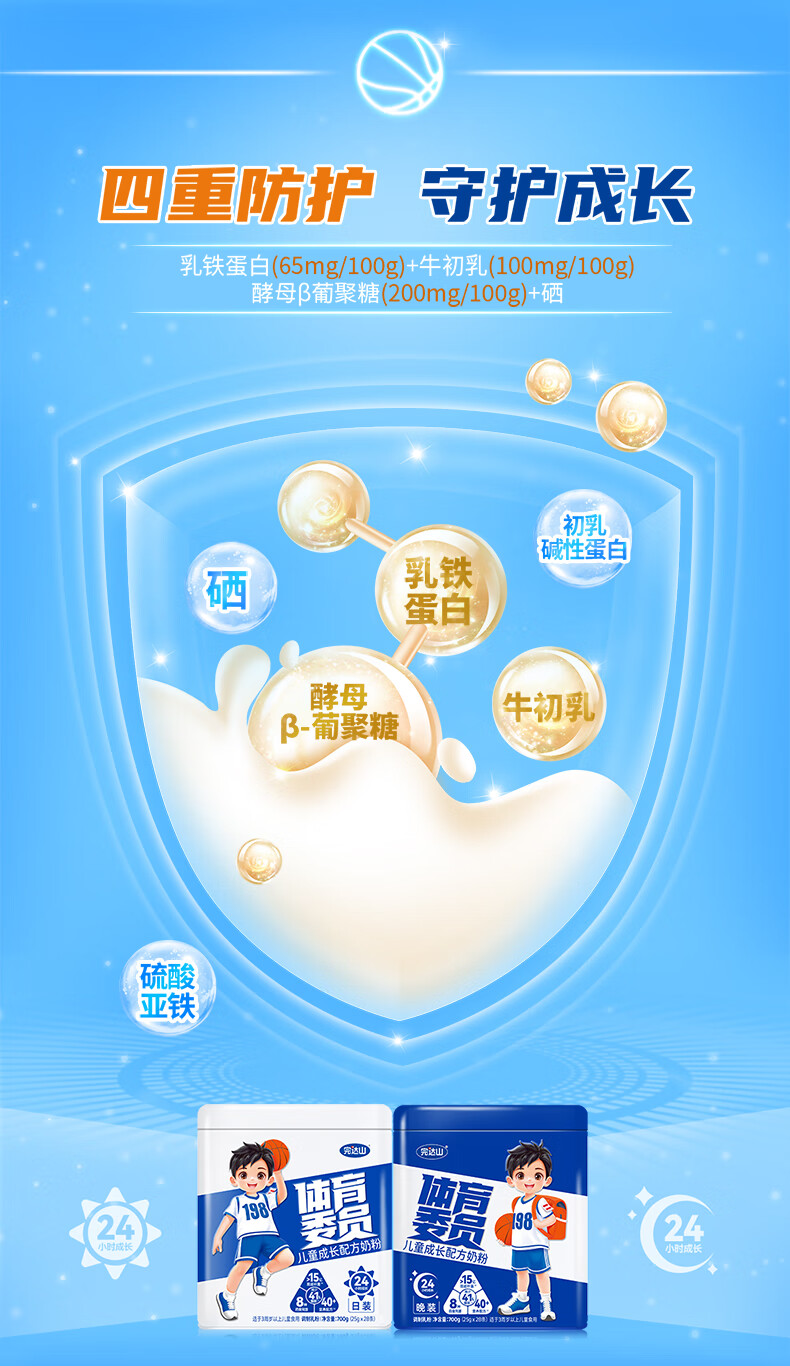 完达山体育委员儿童成长奶粉4段药食同源CBP乳铁蛋白 日装700g(3岁以上)