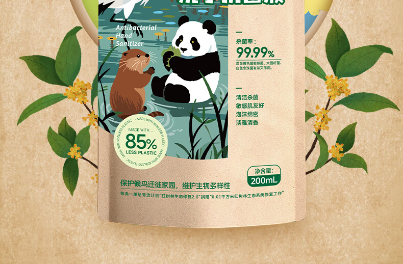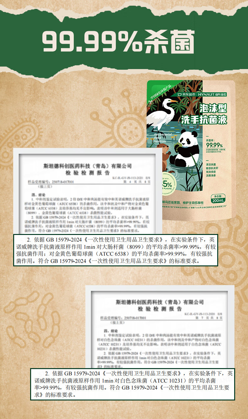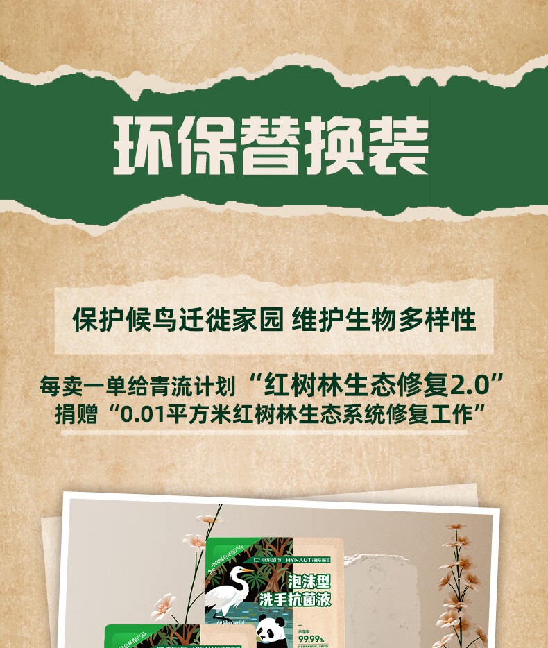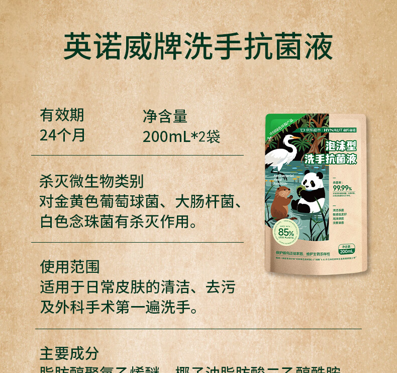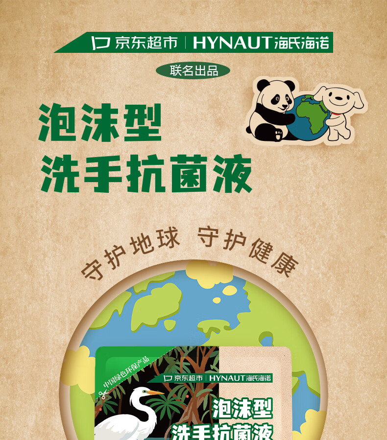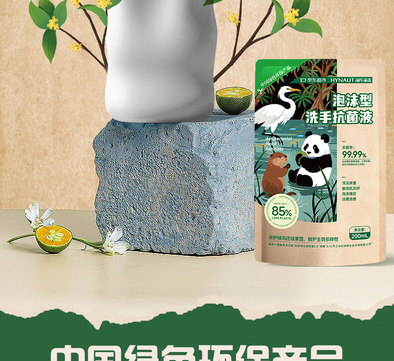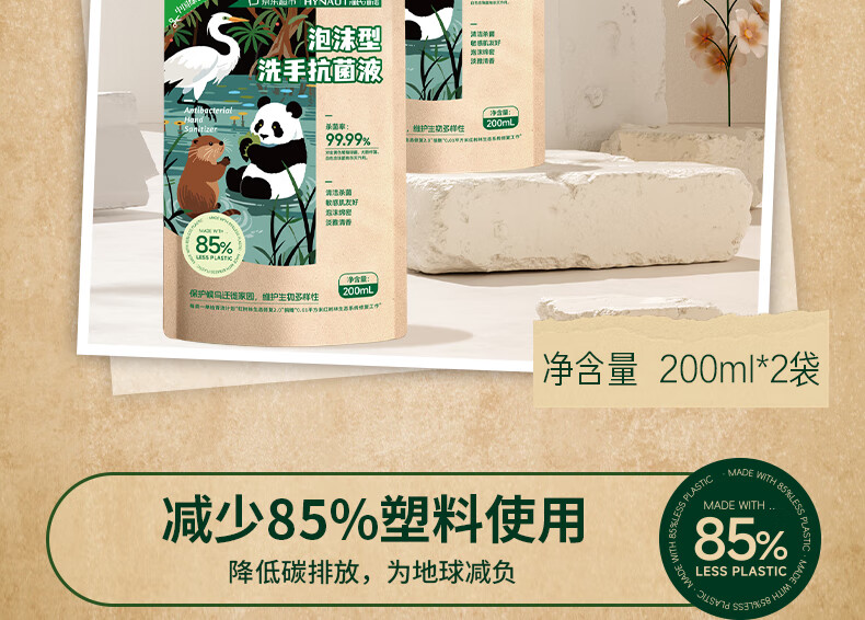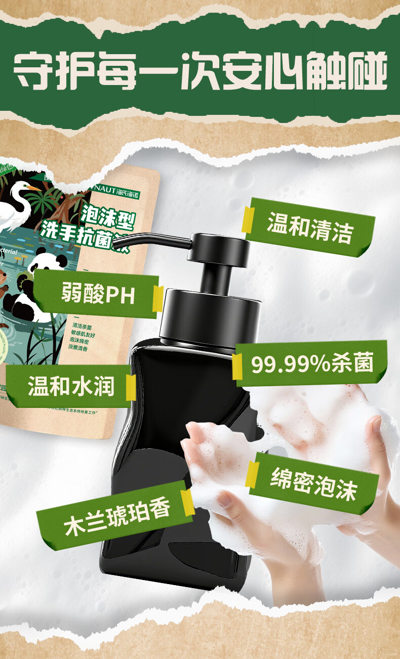 海氏海诺环保洗手液泡沫抑菌杀菌消毒补充装200mL*2泡泡补充装家庭温和