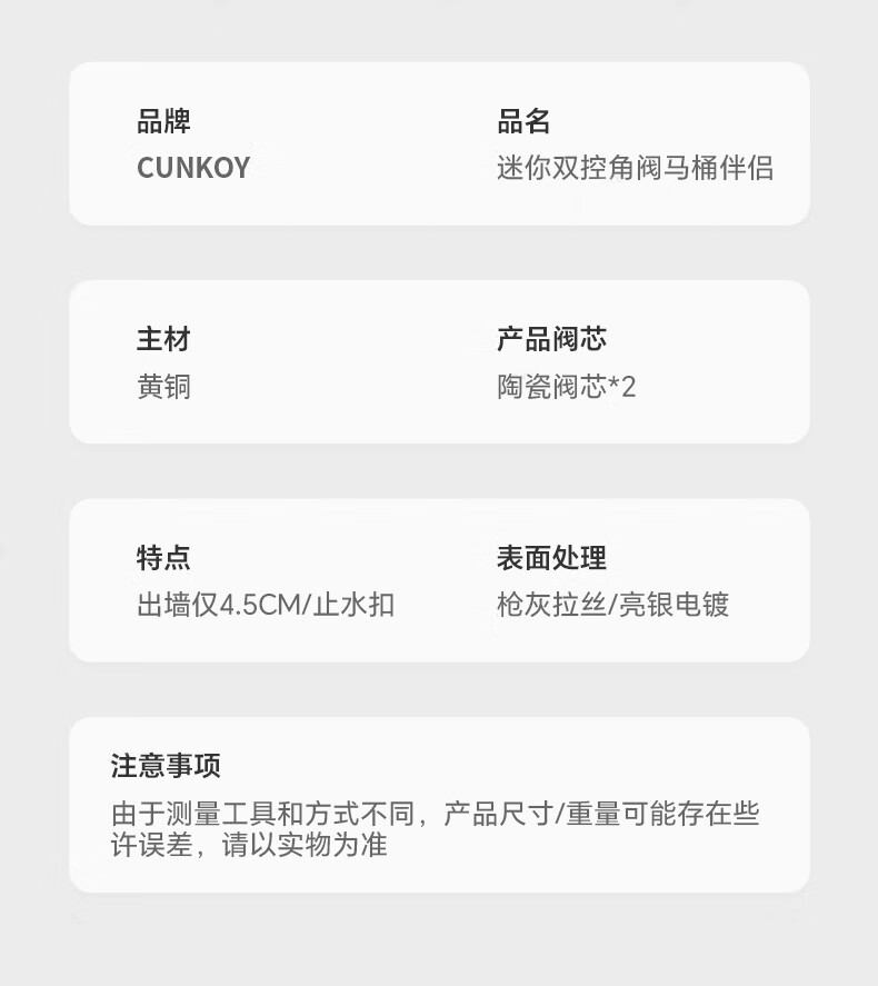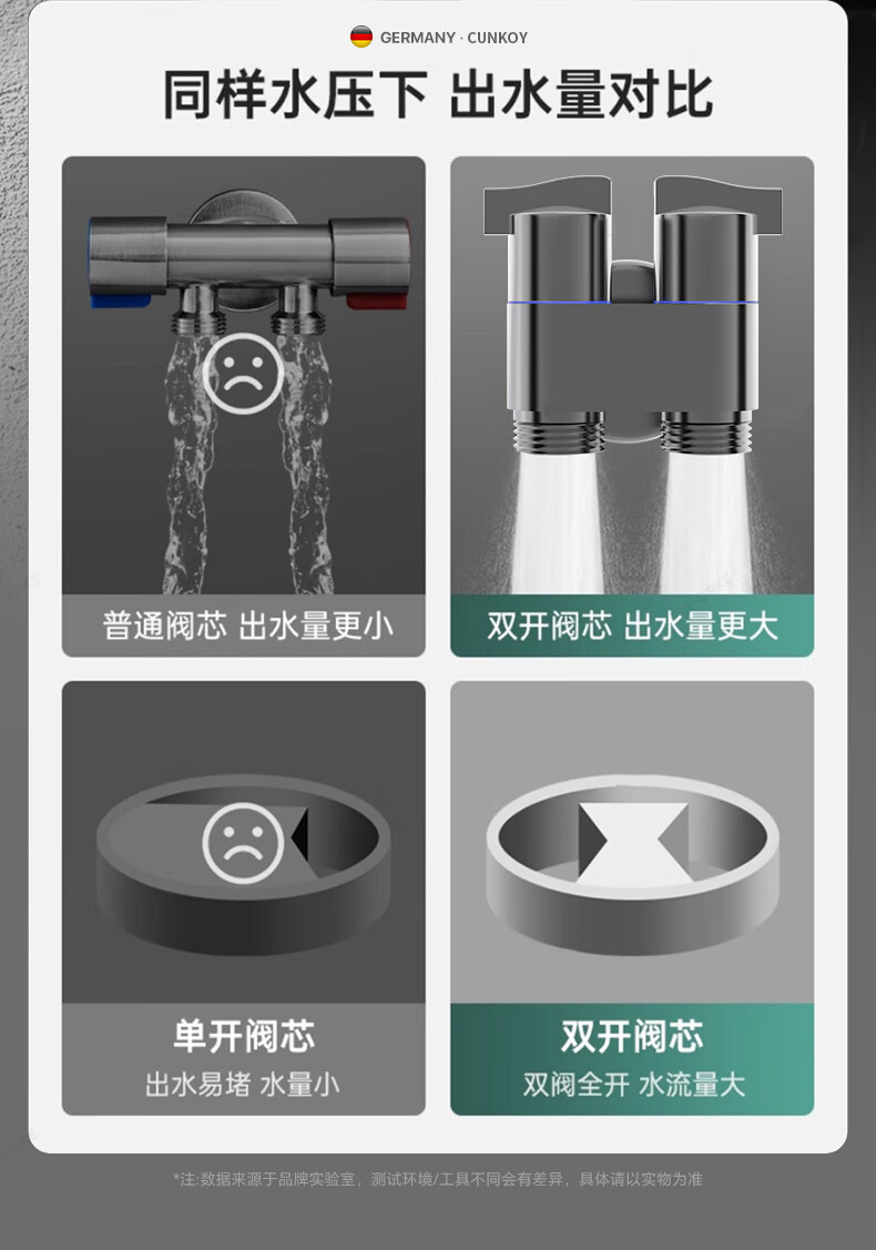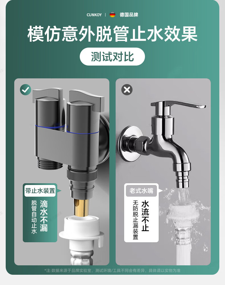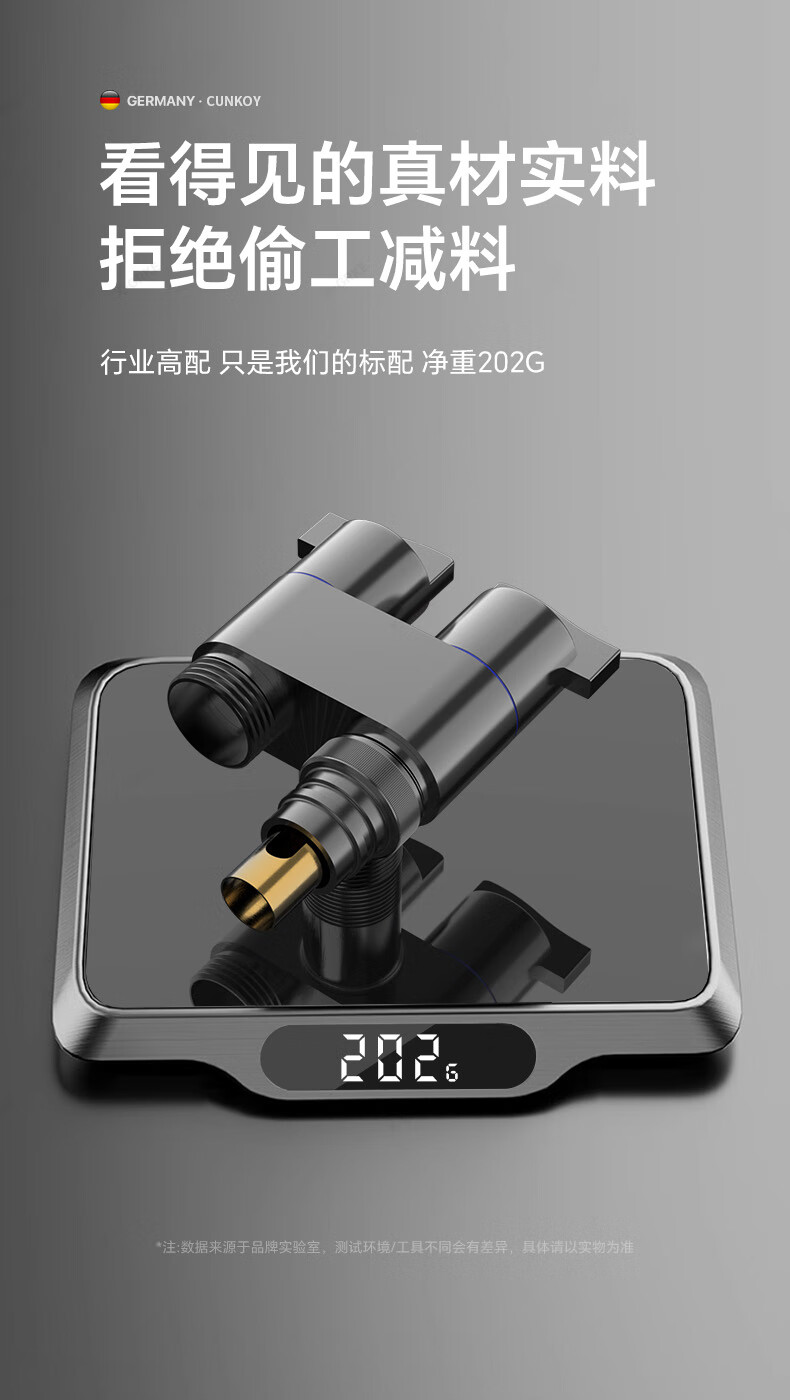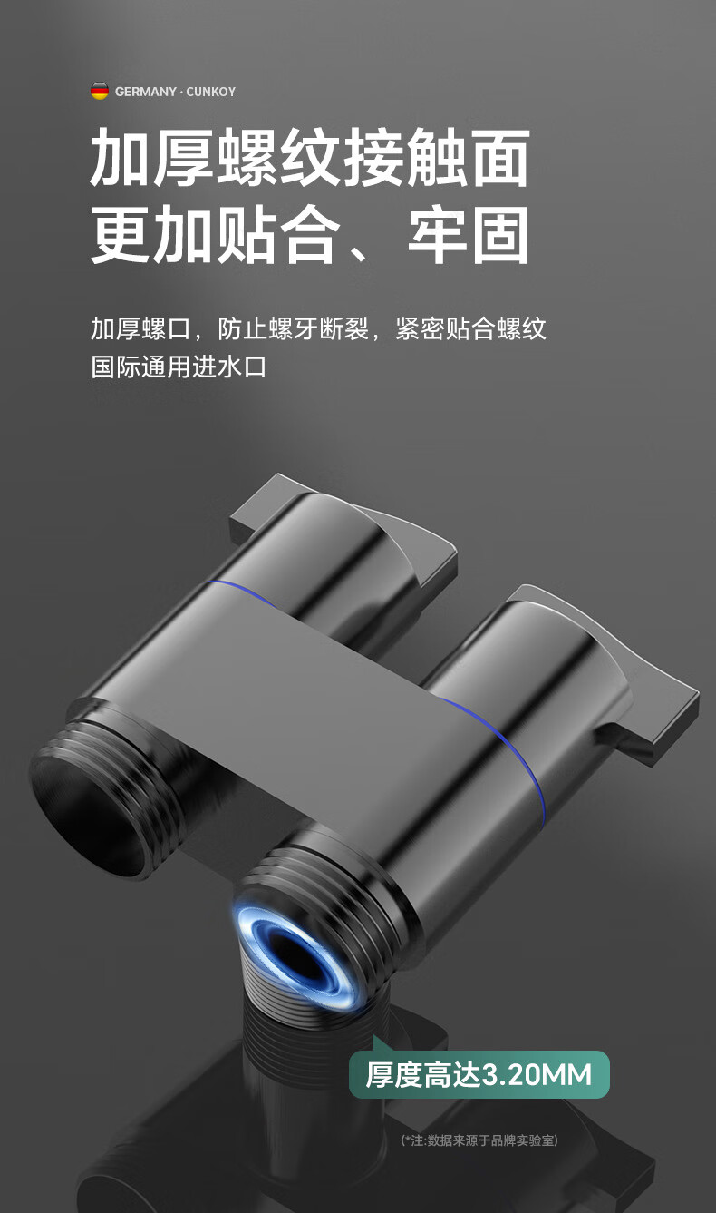 CUNKOY【德国】洗衣机水龙头全铜主体角阀4分接口专用防脱落自动止水阀 双出水洗衣机龙头【全铜主体】枪灰 4分通用接口丨脱管自动止水
