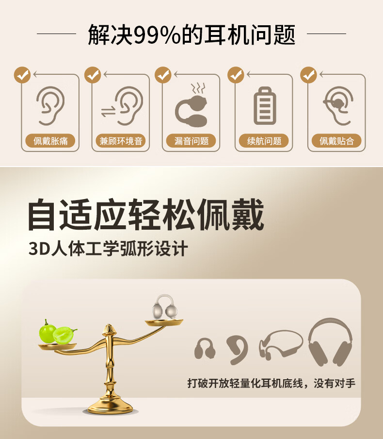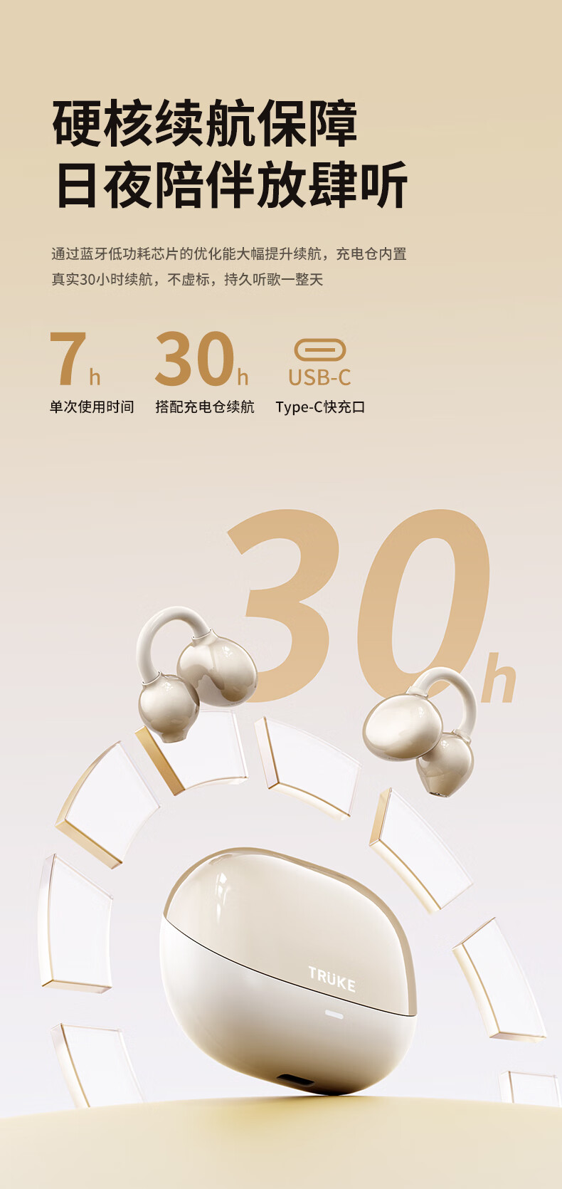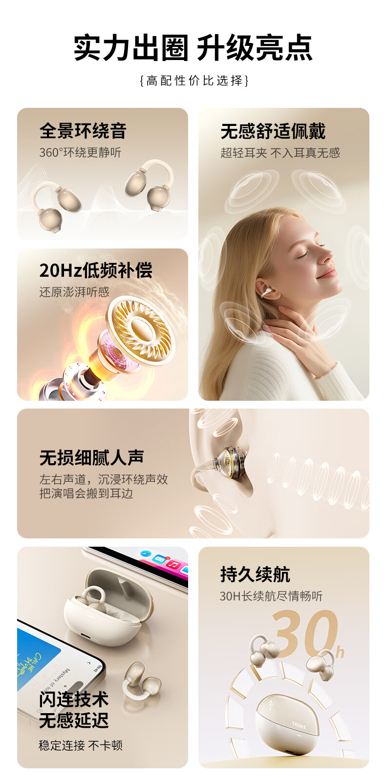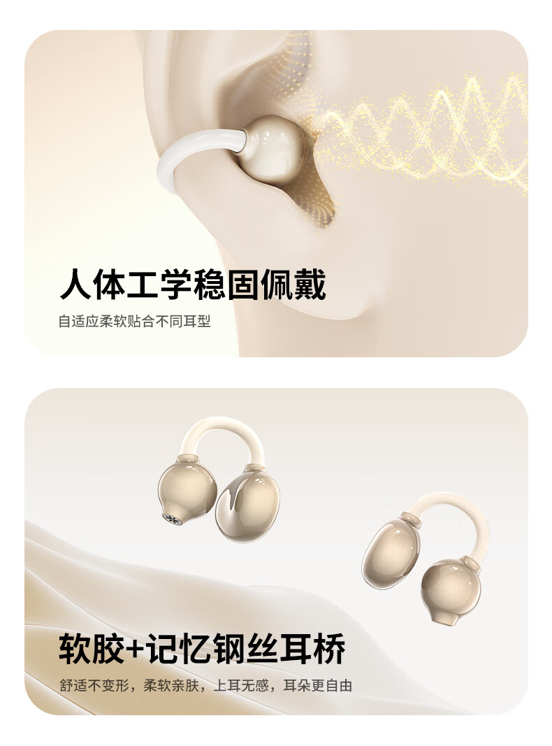 充客蓝牙耳机耳夹式无线开放式运动跑步骨传导通话降噪不入耳长续航适用于华为小米苹果安卓