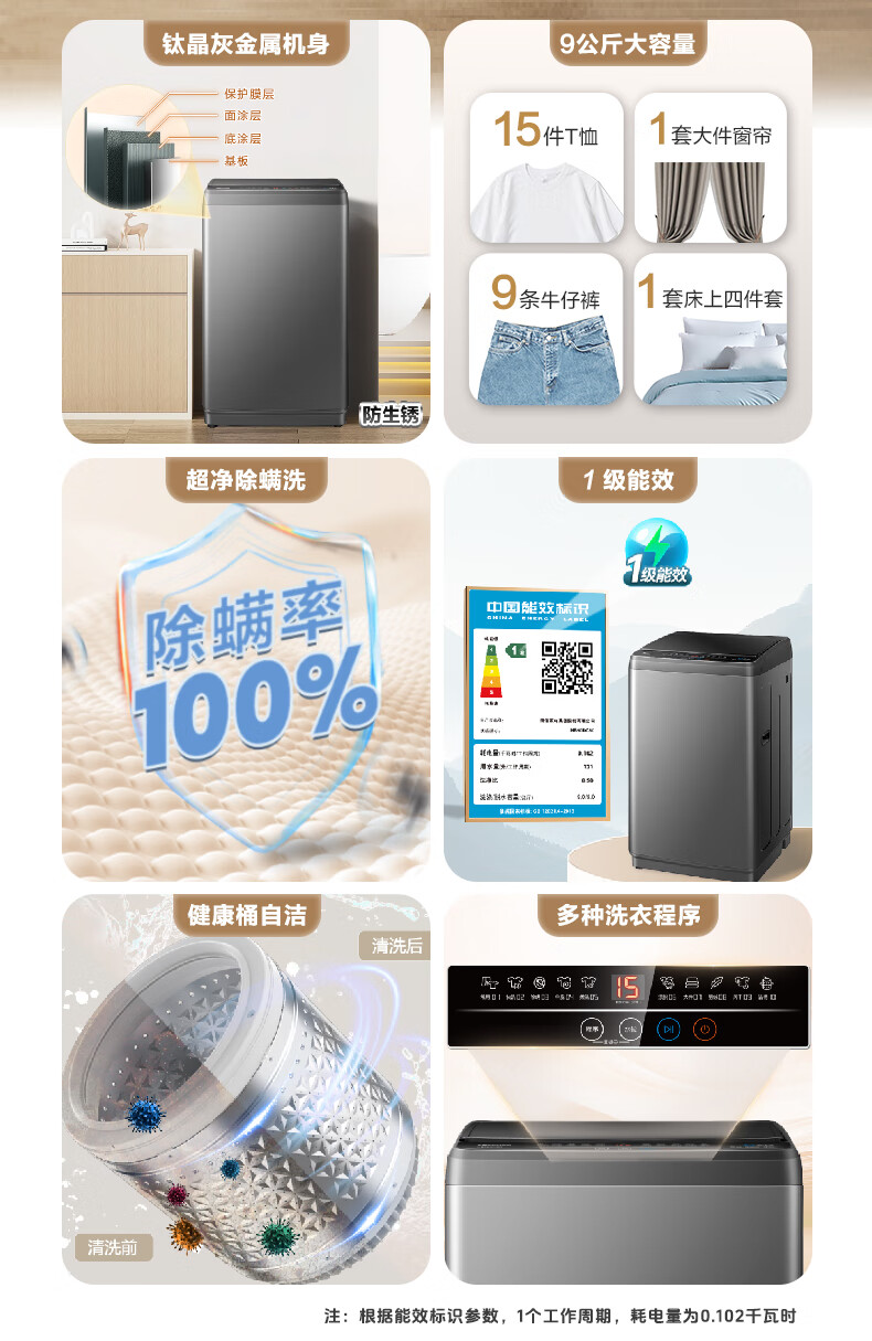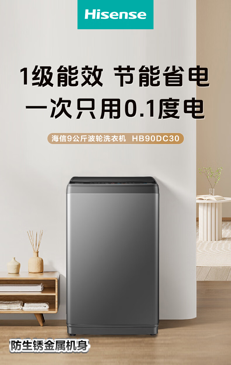 海信(Hisense)波轮洗衣机全自动9公斤 家用 宿舍出租房神器 大容量 脱水免清洗 低噪 除螨 HB90DC30家电国家补贴 灰色