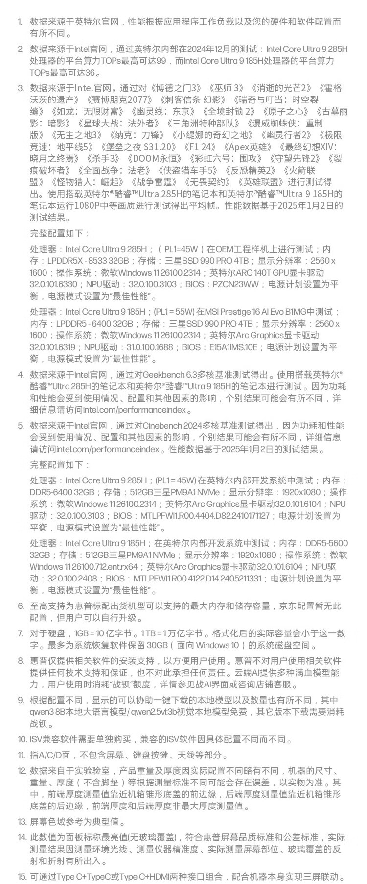 惠普(HP)战99 全新16英寸 工作站级高性能AI商务笔记本 酷睿二代Ultra7 255H 32G 1T 2.5K屏【政府补贴】