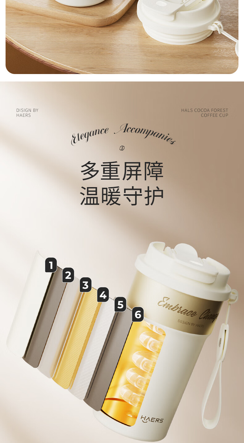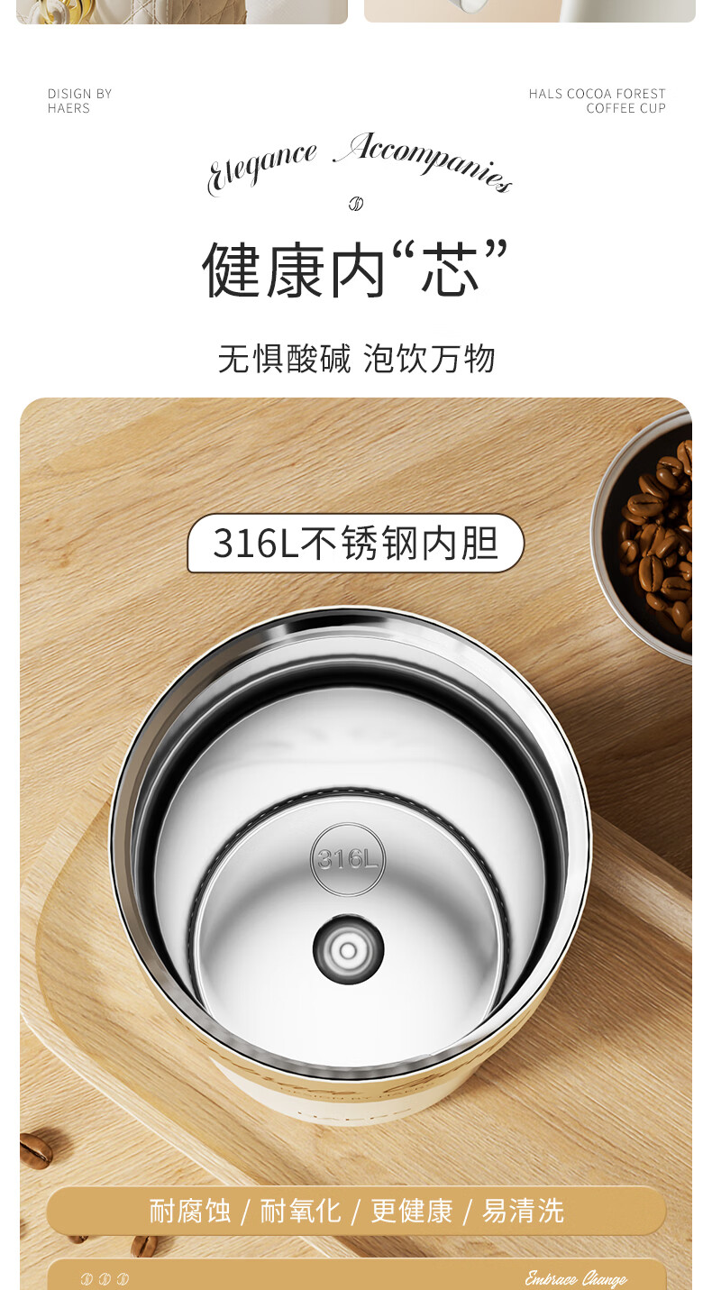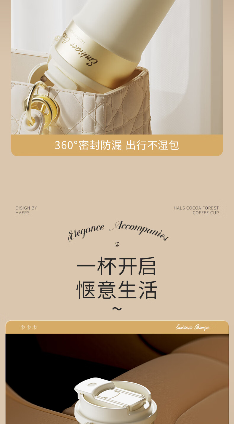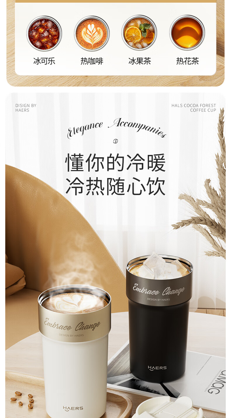 哈尔斯咖啡保温杯316不锈钢吸管杯男女士外出便携式保冷水杯车载适用 莹白460ml【赠皮质提绳】
