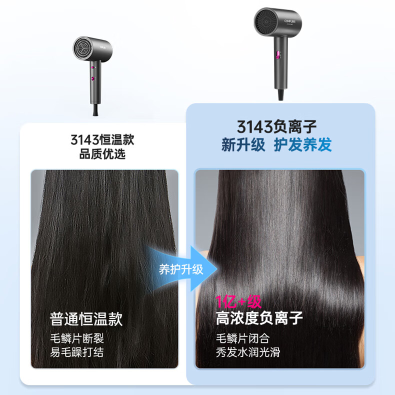 康夫(CONFU)电吹风机家用大风力1800W大功率理发店专用智能恒温吹风筒便携造型吹风机节日礼物3143 3143【恒温无负离子】1800W轻奢灰