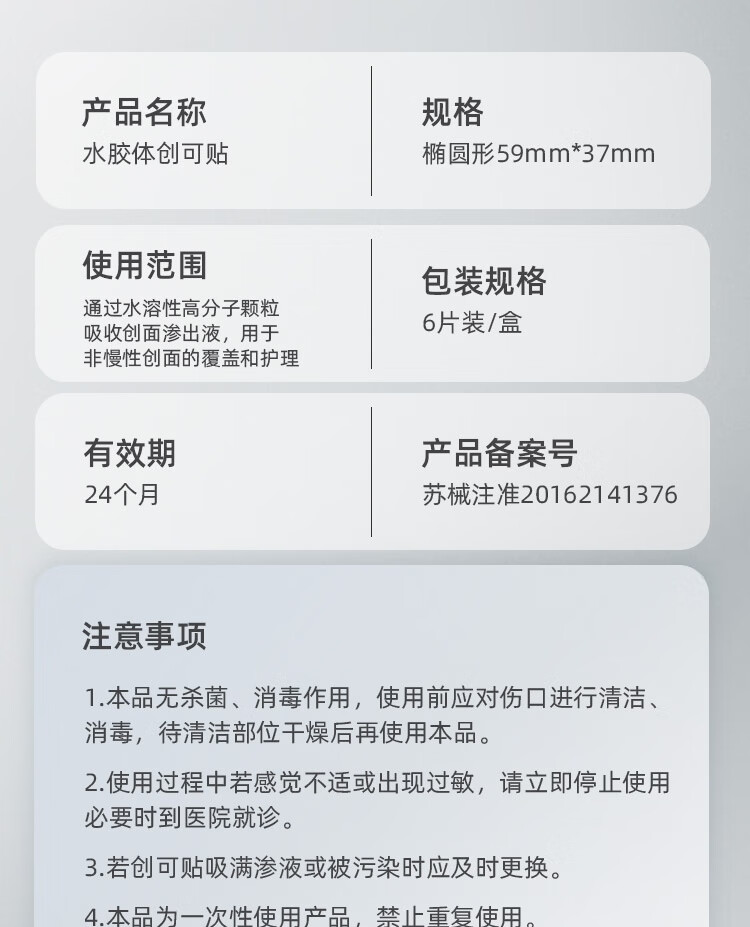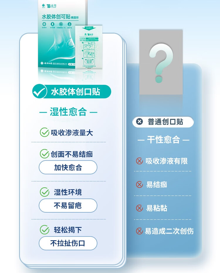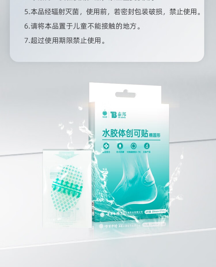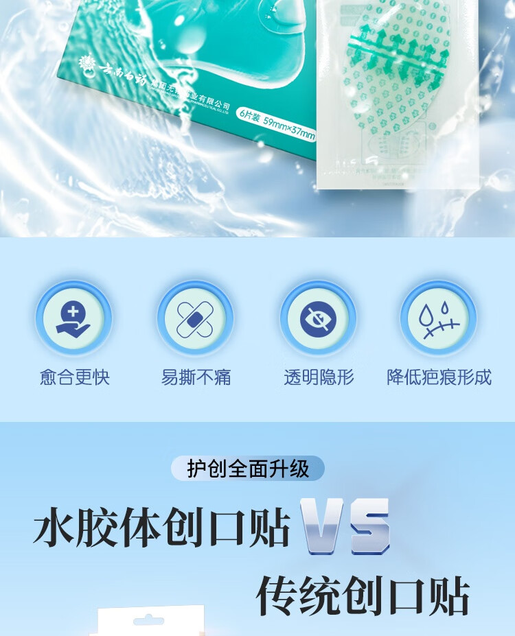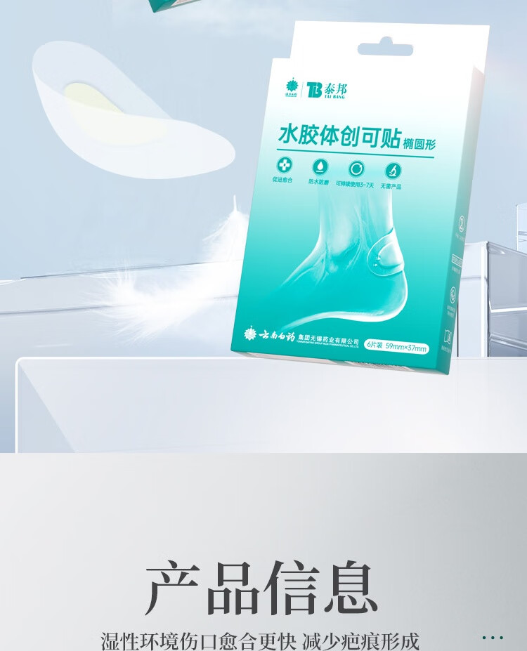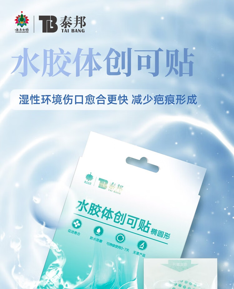 云南白药泰邦医用水胶体湿性愈合创可贴敷料促愈脚后跟防磨防水贴6片/盒