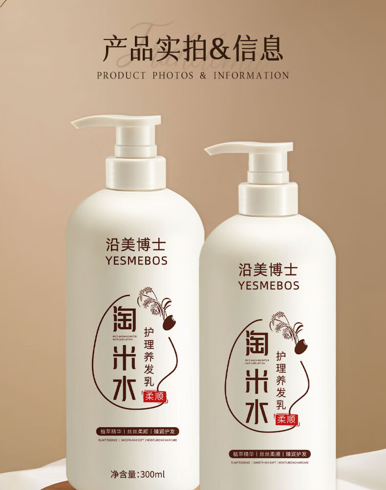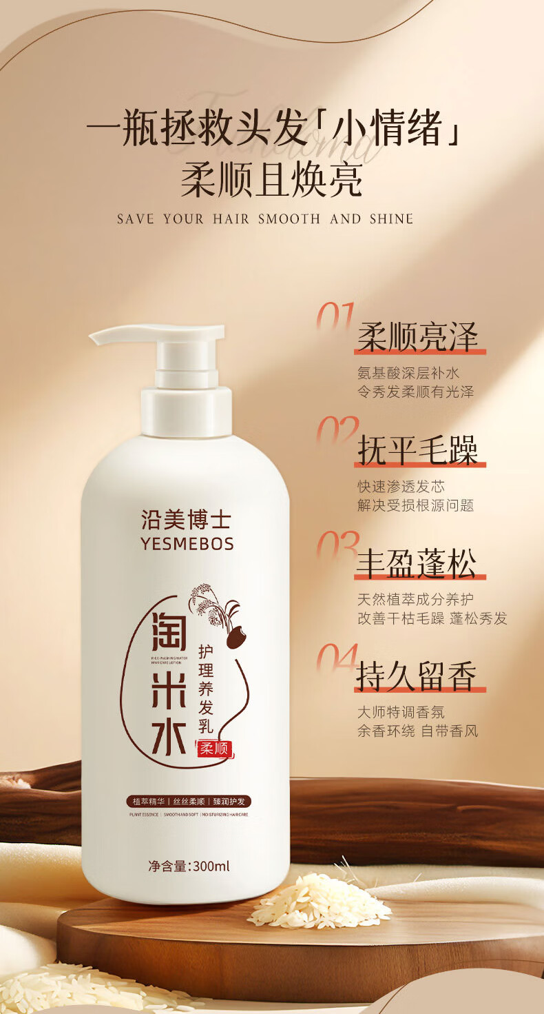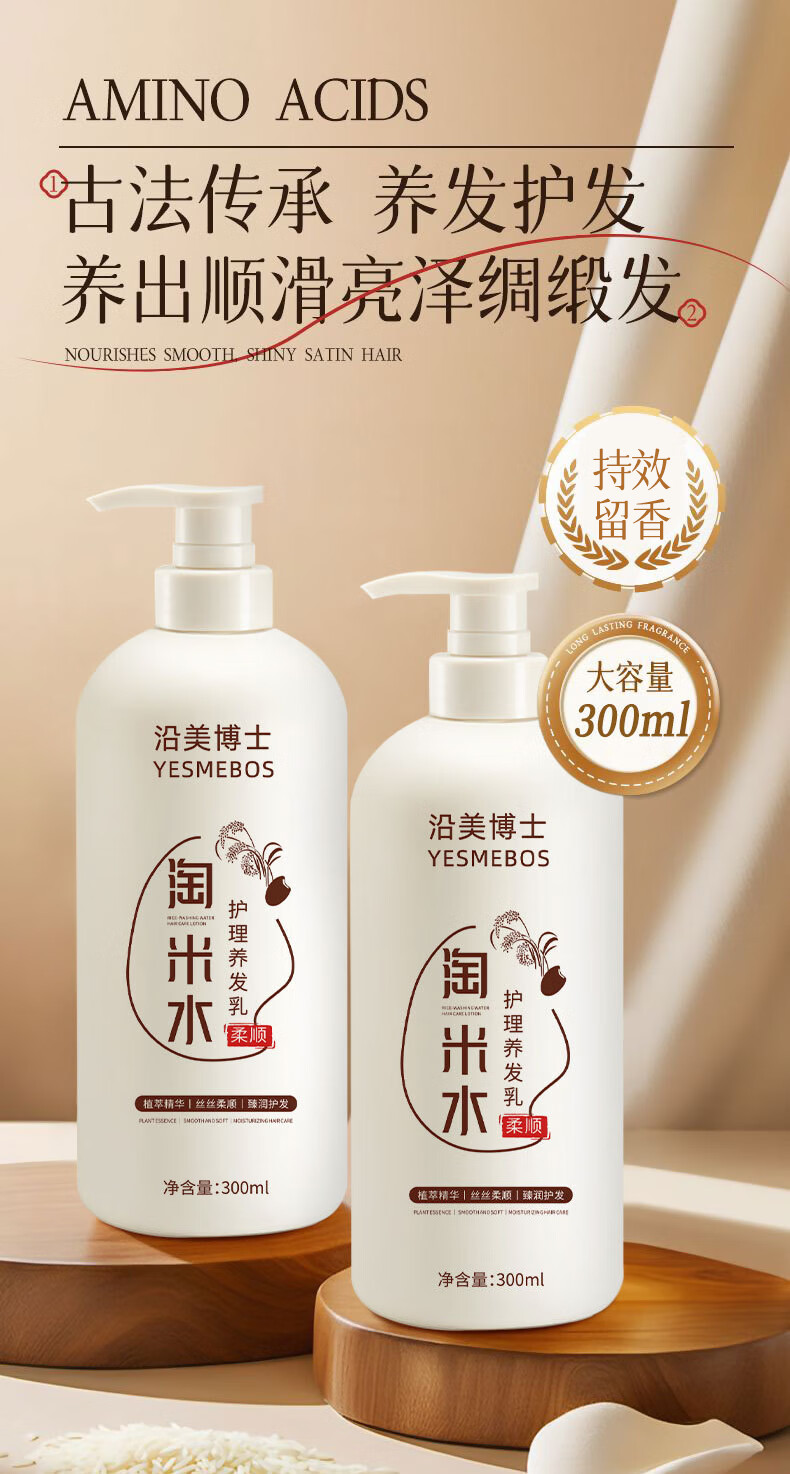 沿美博士淘米水柔顺护发素修护烫染受损改善干枯滋润顺滑男女士养发护发乳 淘米水护发素300ML-2瓶