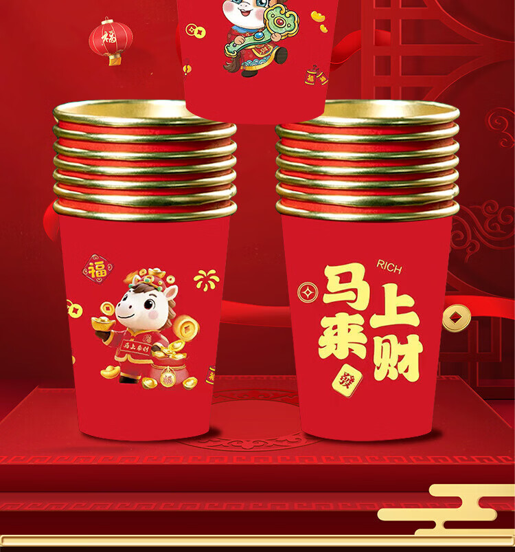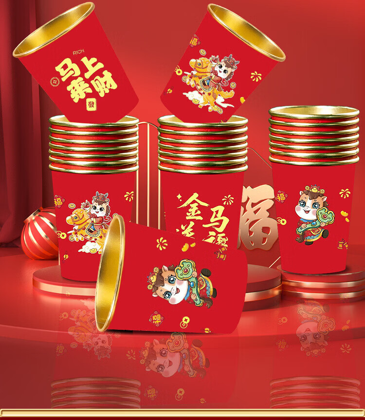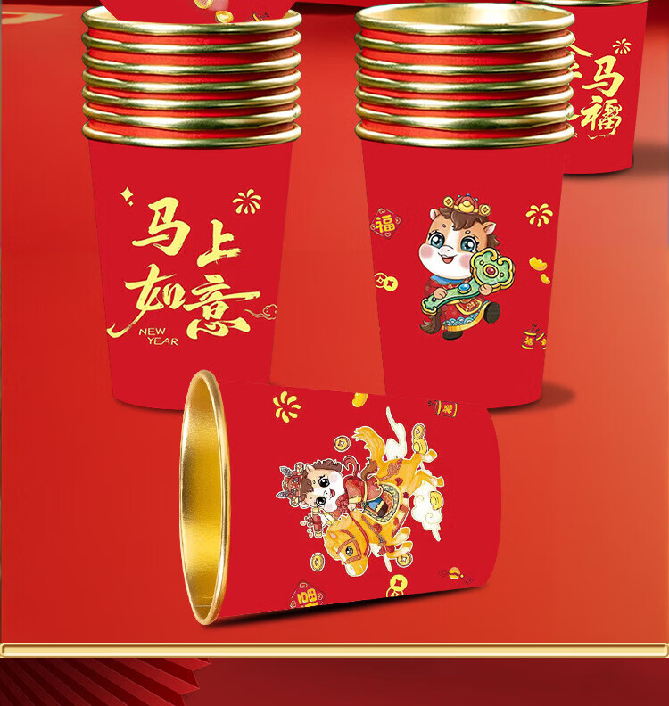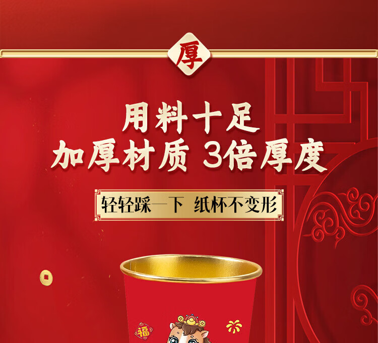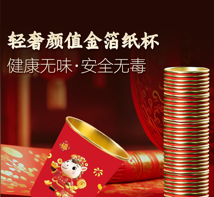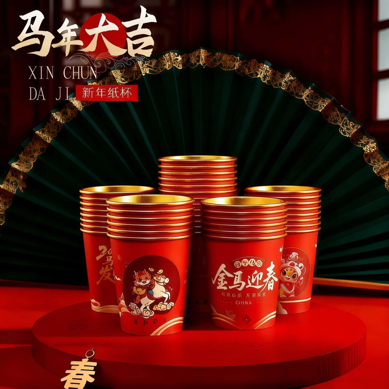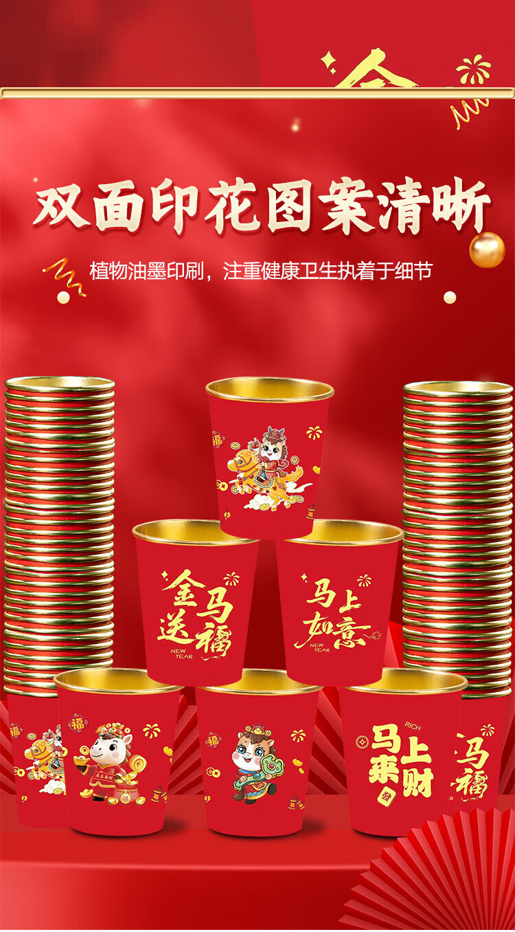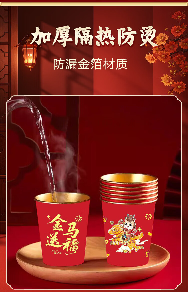 清洁JTT 马年金箔杯50只装 一次性纸杯款式随机