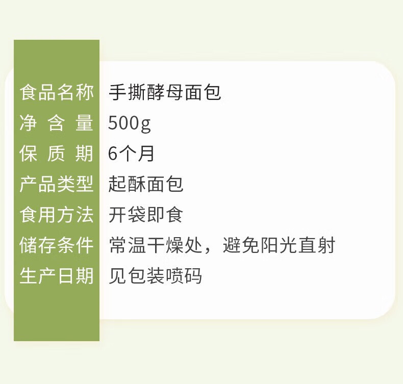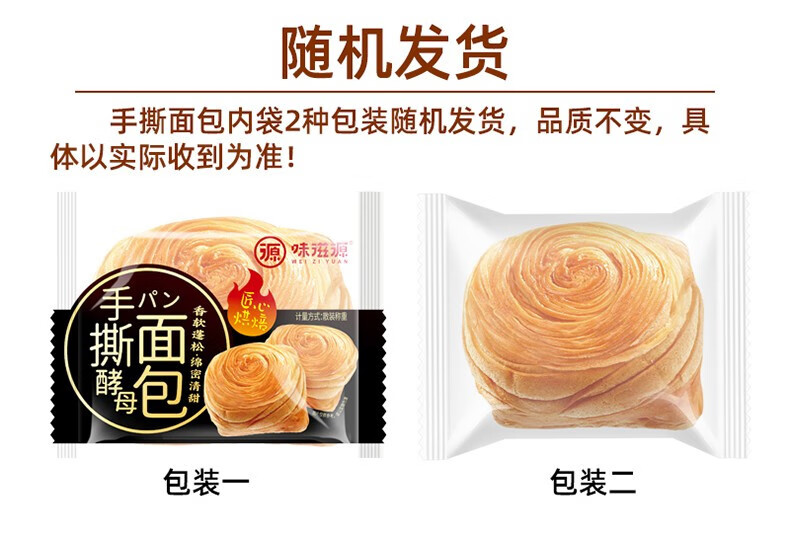 味滋源 手撕酵母面包 速食懒人面包 早餐零食 营养面包 手撕酵母面包 500g/箱 1箱