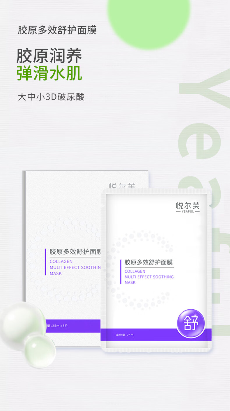 悦尔芙胶原蛋白多效舒护面膜玻尿酸补水保湿温和肌肤果冻膜布 舒缓修护丨拯救敏感肌·舒护紫膜 舒缓修护丨拯救敏感肌·舒缓紫膜