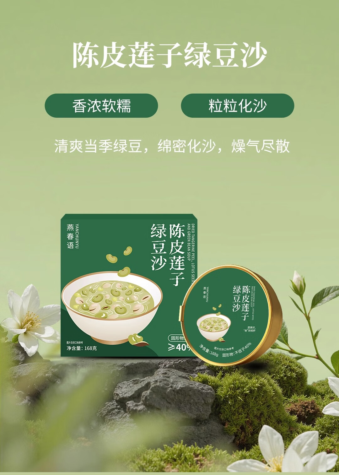 燕春语陈皮莲子绿豆沙即食清爽好吃八宝速食粥早代餐即食品礼品 陈皮莲子绿豆沙168g*12碗