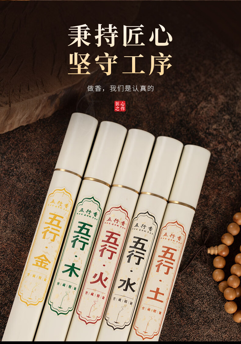 五行线香10克装五方香沉香檀香线香草本药香居家室内卧室客厅用香 五方-土/21cm/10克