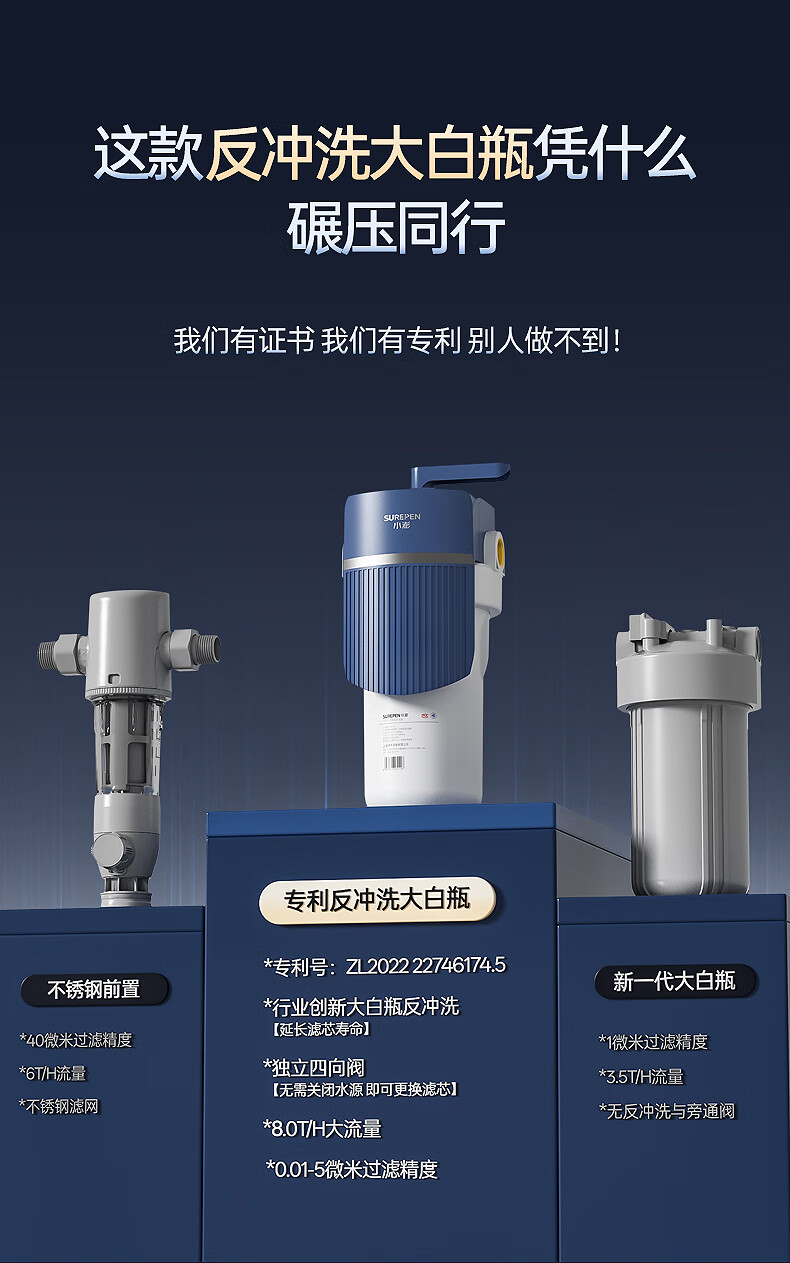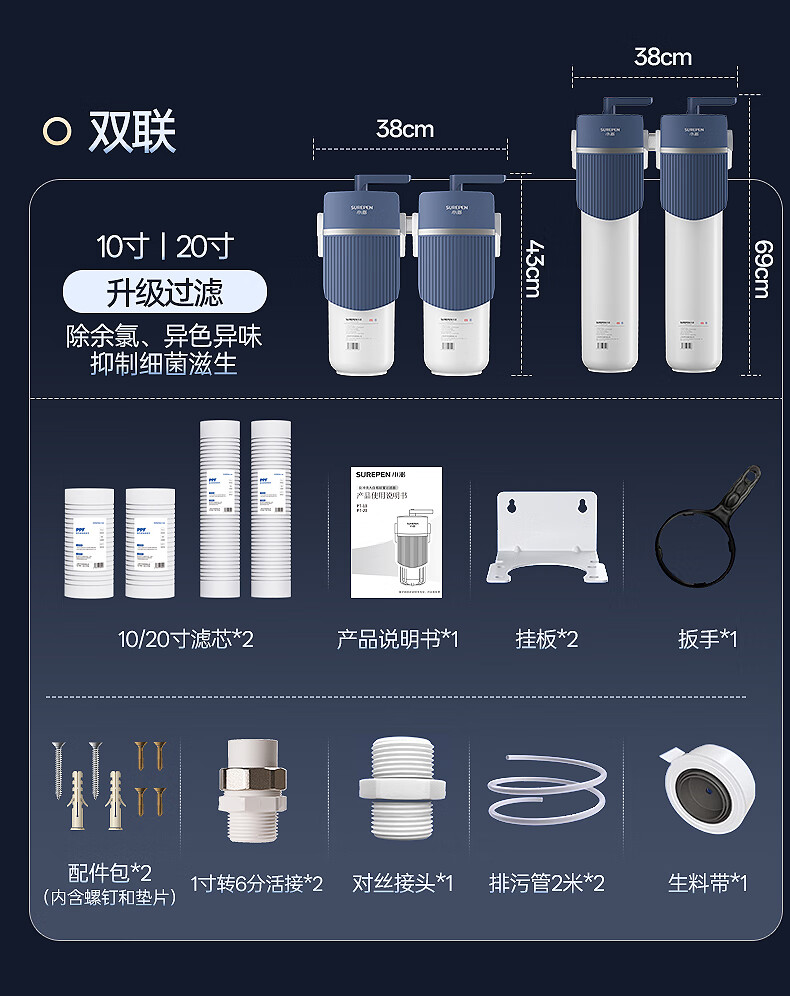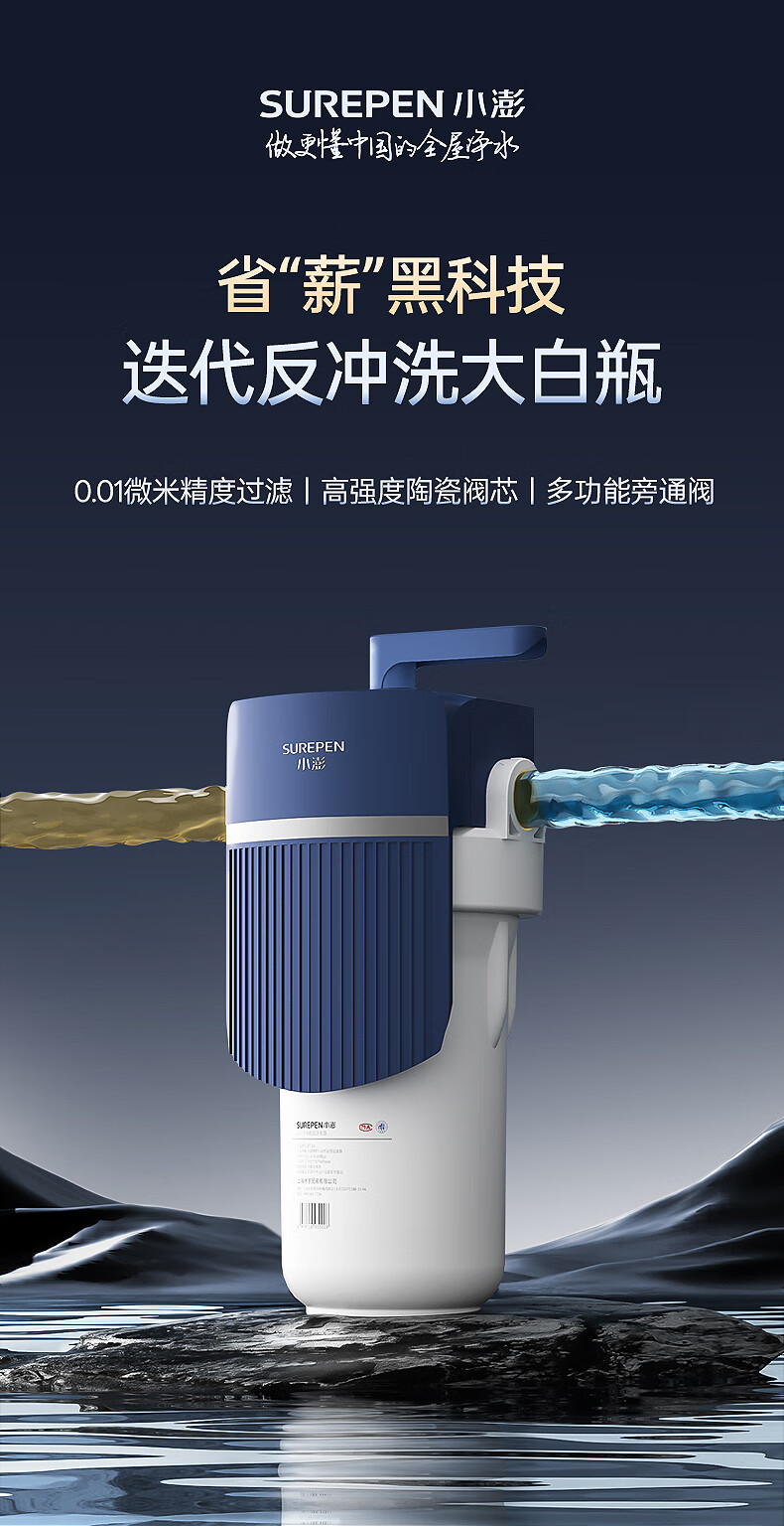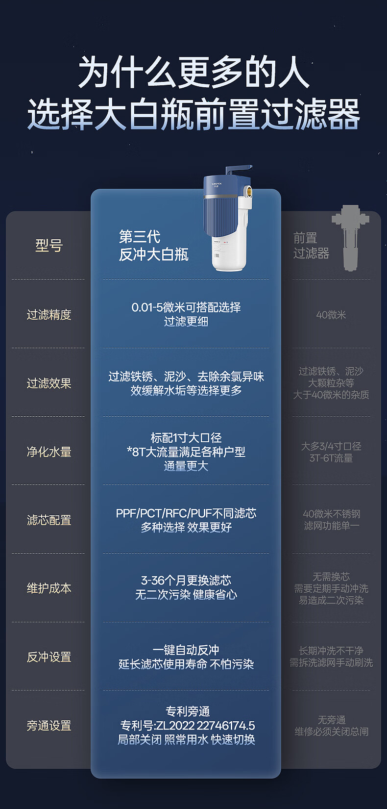 小澎【终身送滤芯】大白瓶前置过滤器8吨大流量旁通反冲洗前置过滤器家用自来水龙头全屋中央净水机 大白瓶10寸PPF+PCT【抑制细菌】