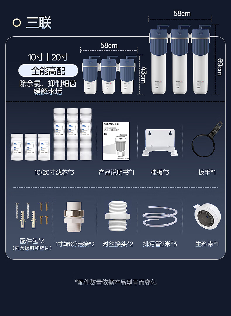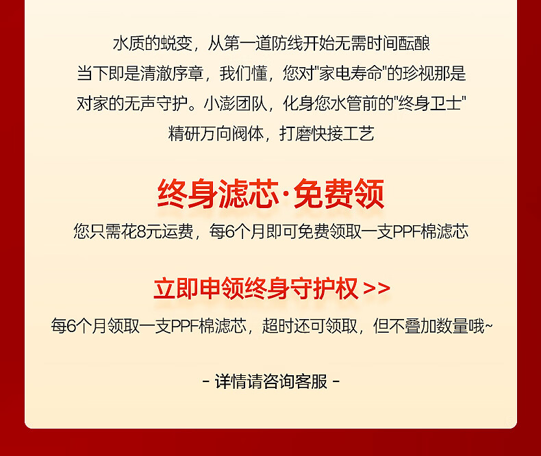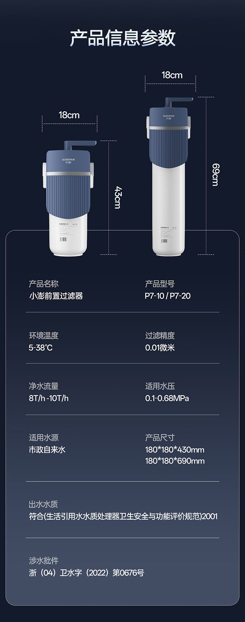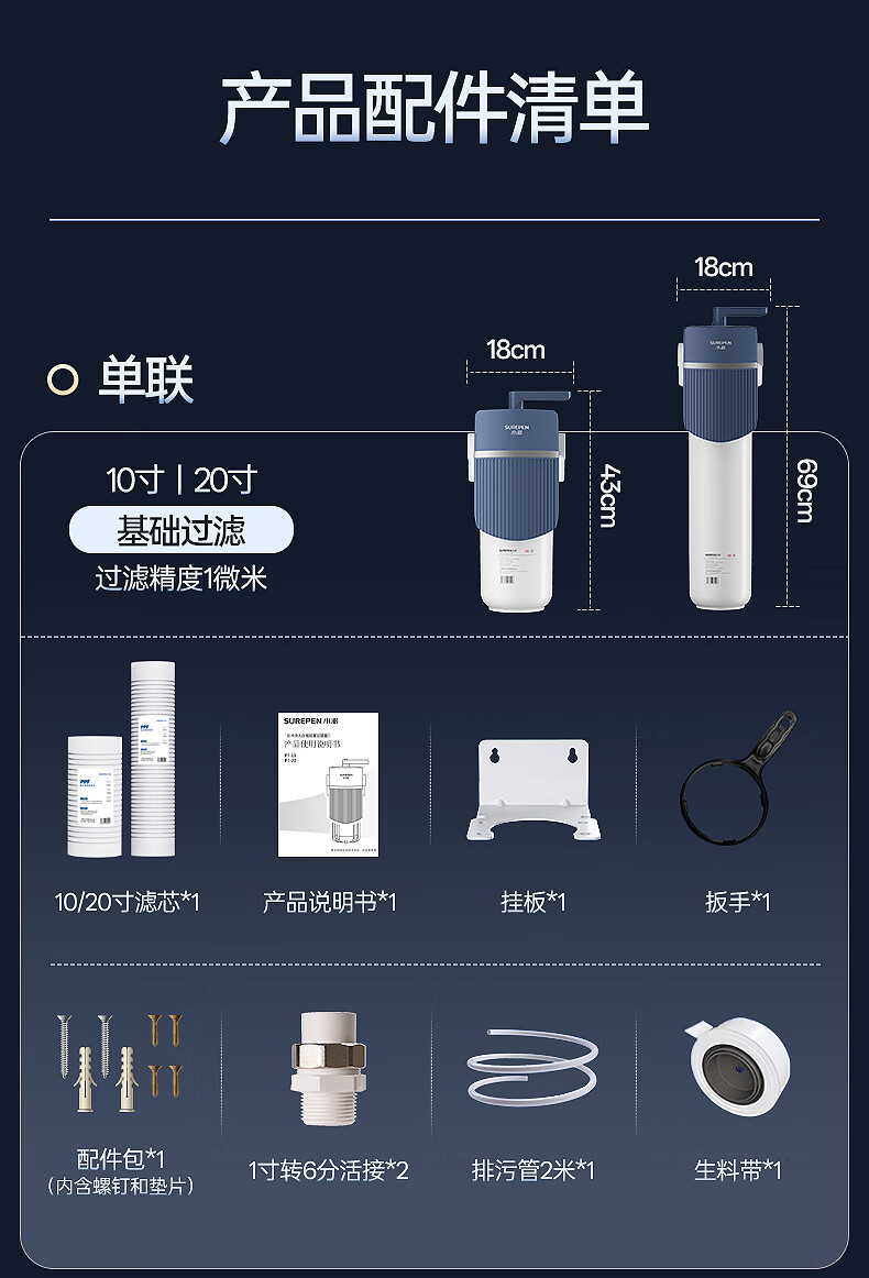 小澎【终身送滤芯】大白瓶前置过滤器8吨大流量旁通反冲洗前置过滤器家用自来水龙头全屋中央净水机 大白瓶10寸PPF+PCT【抑制细菌】