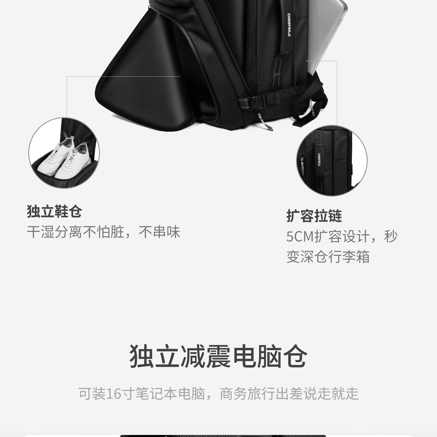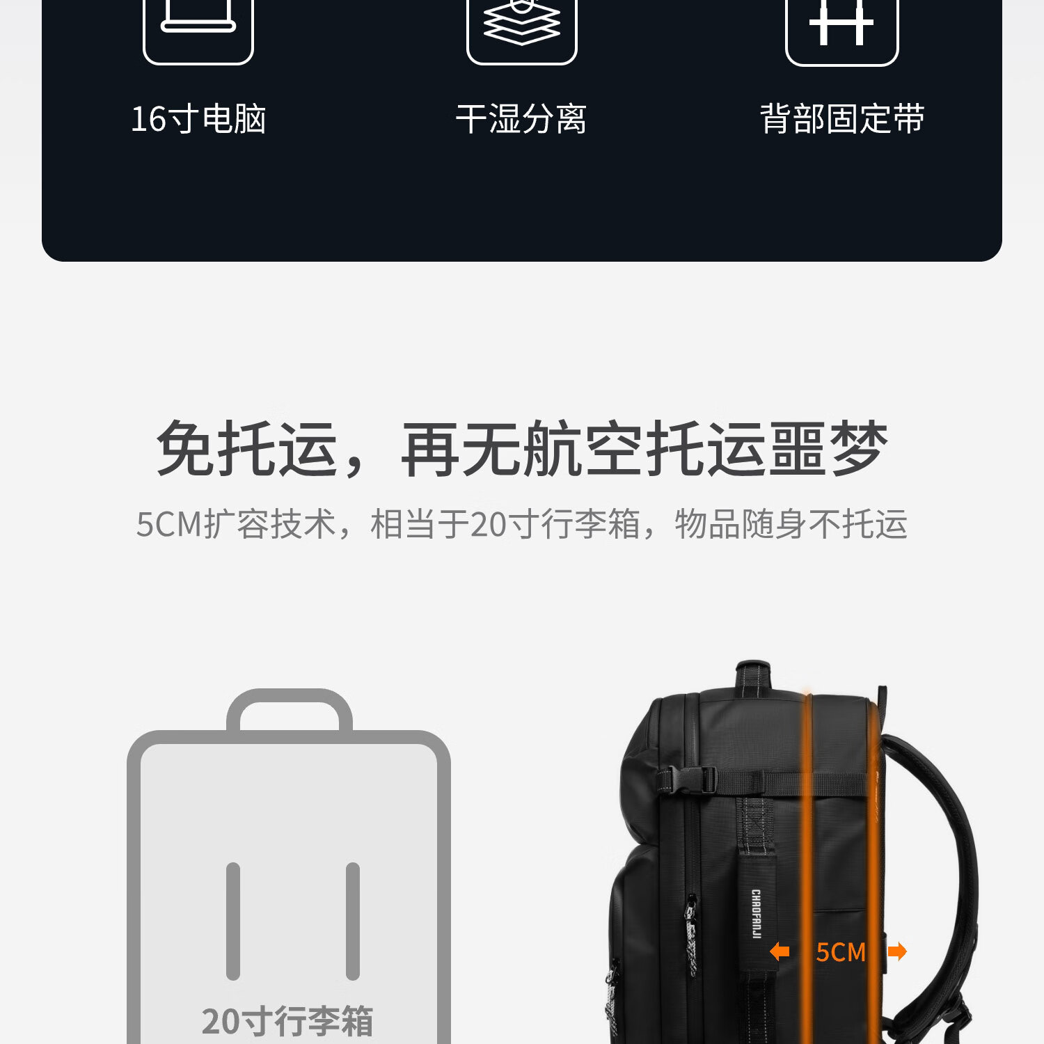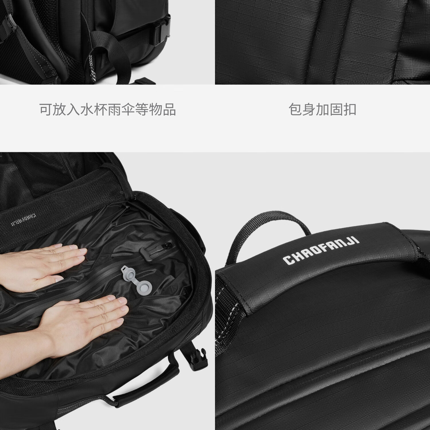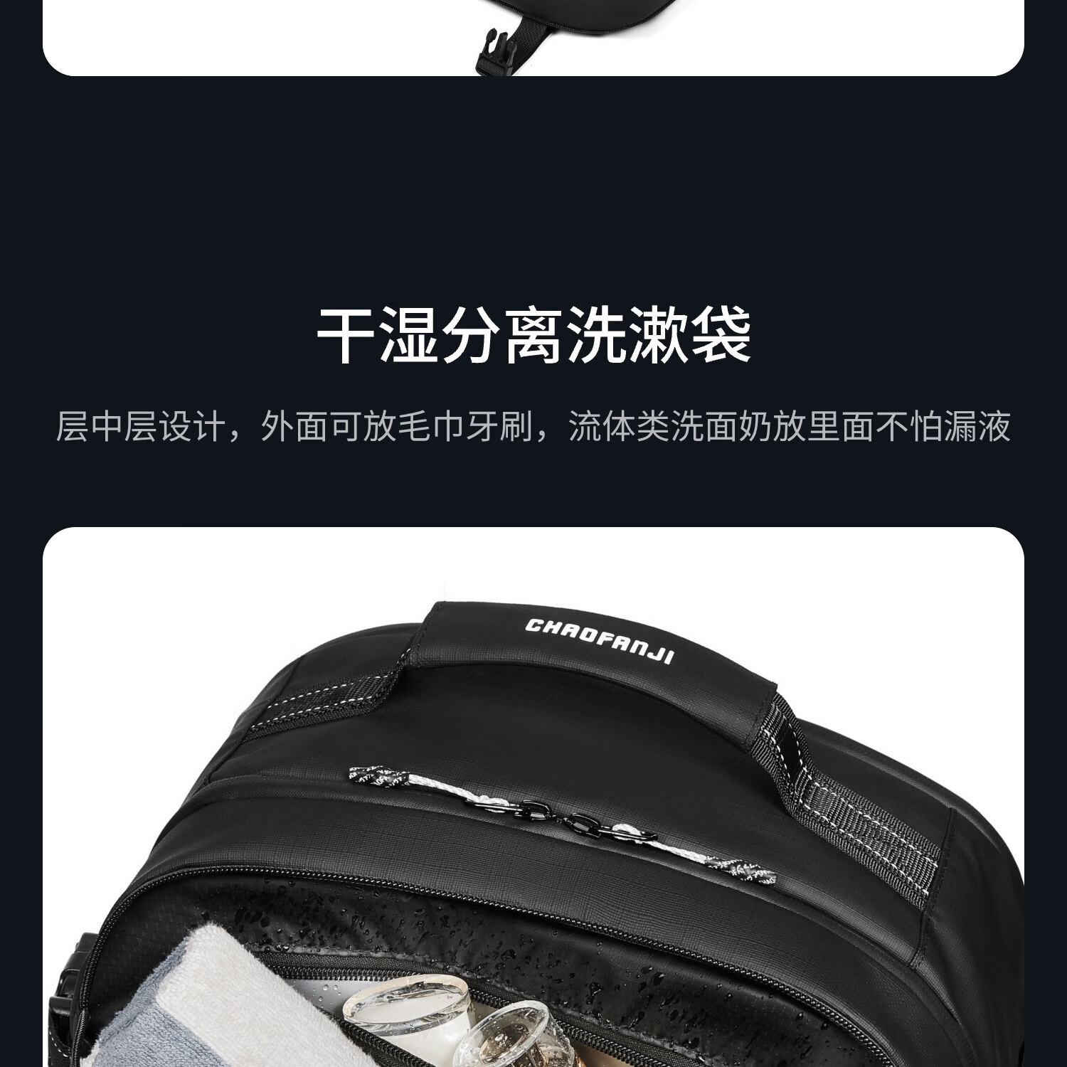 CHAOFANJI超大容量户外双肩包可扩容旅行出差多功能干湿分离防水背包男士 黑色