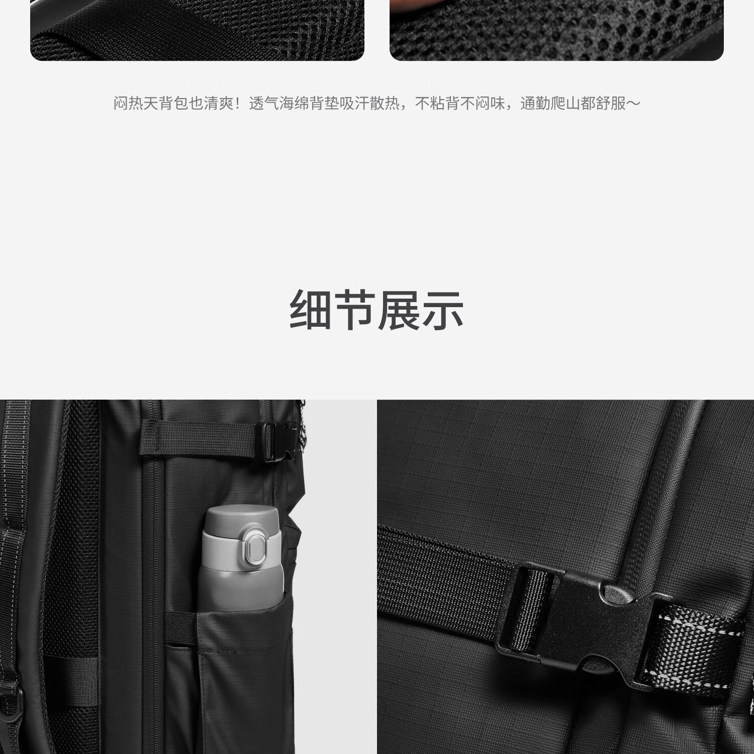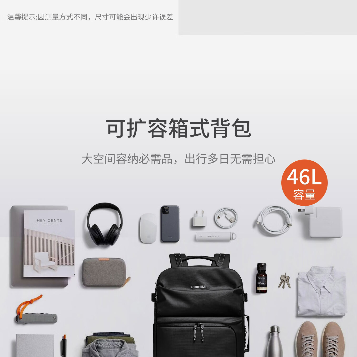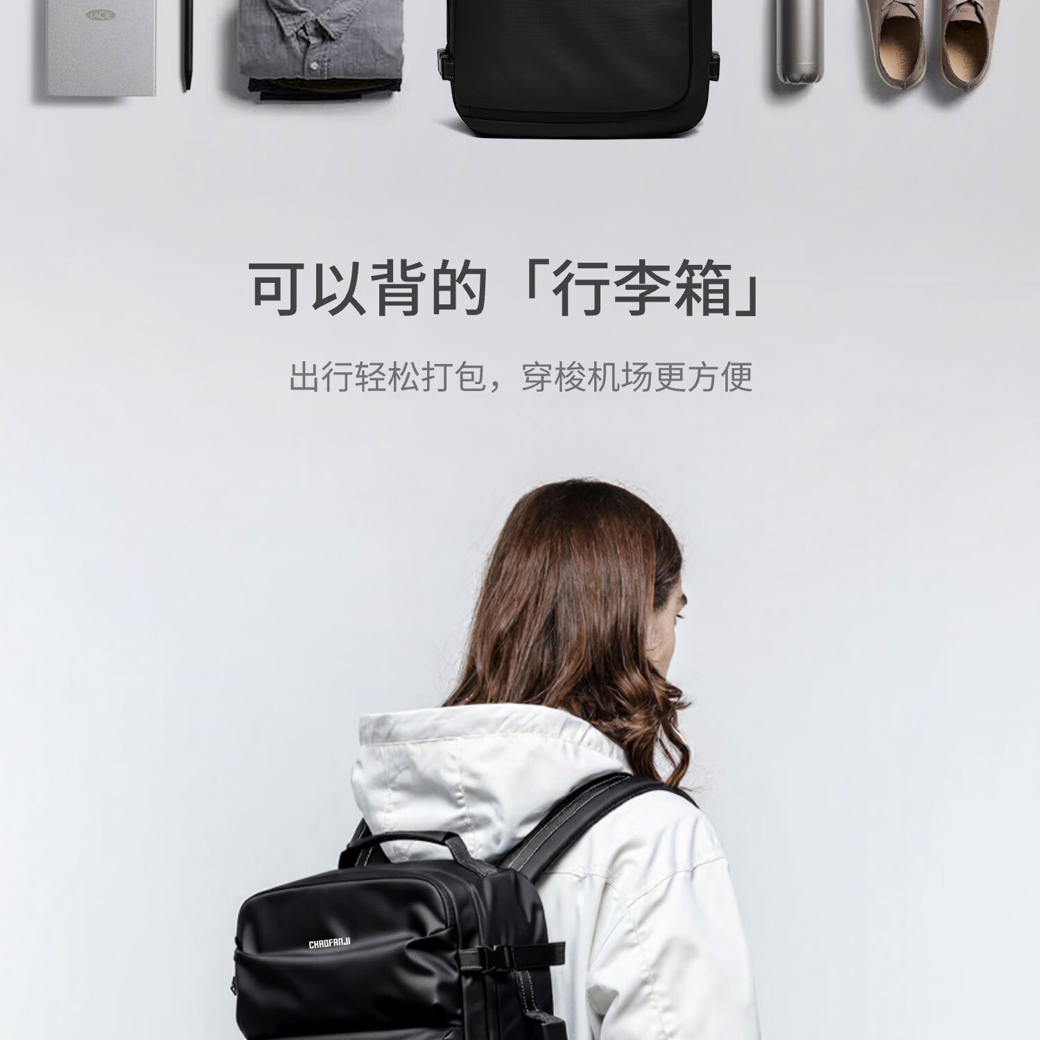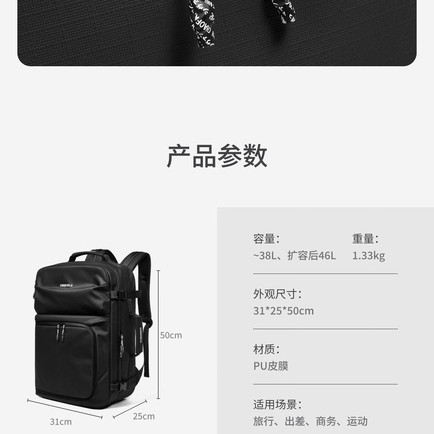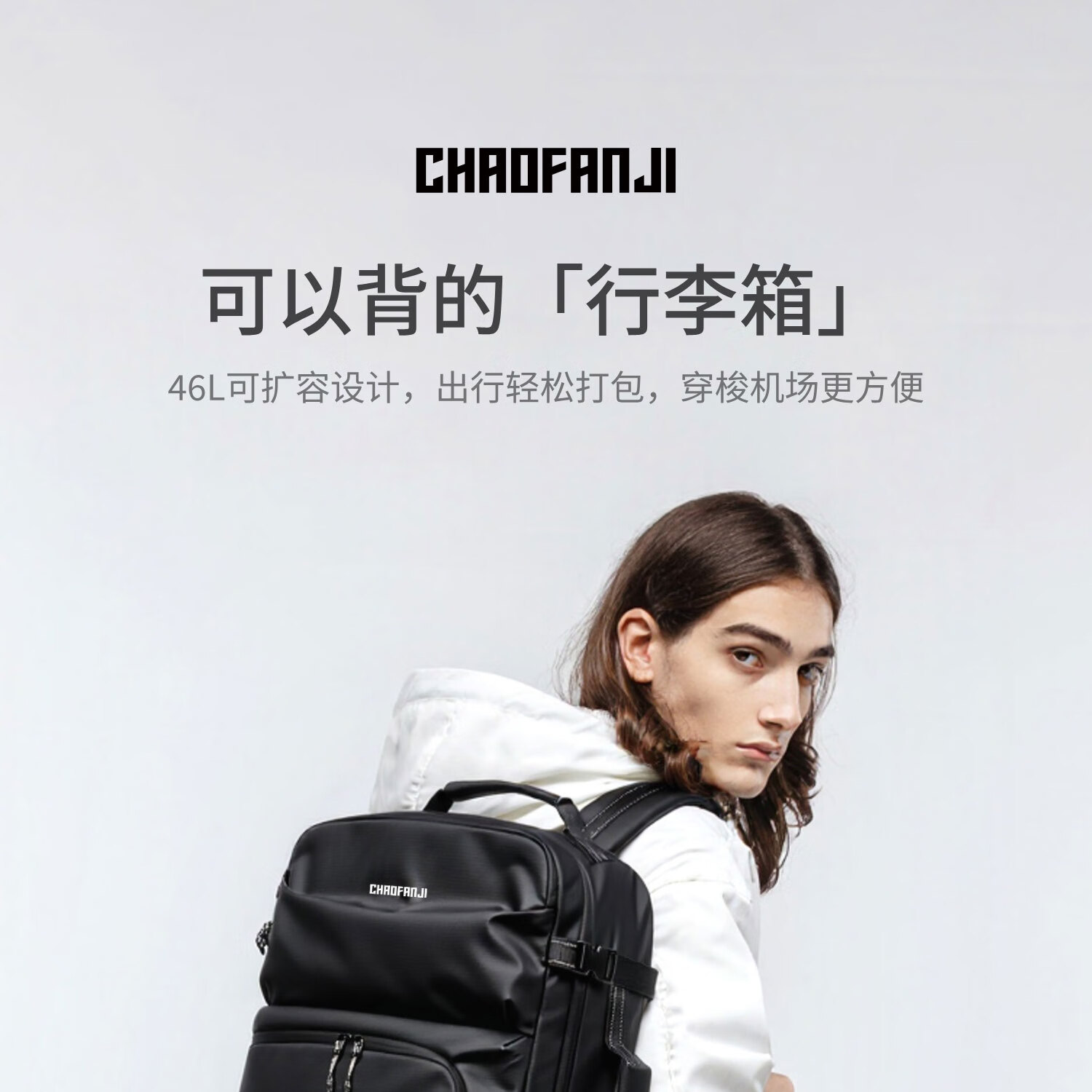 CHAOFANJI超大容量户外双肩包可扩容旅行出差多功能干湿分离防水背包男士 黑色