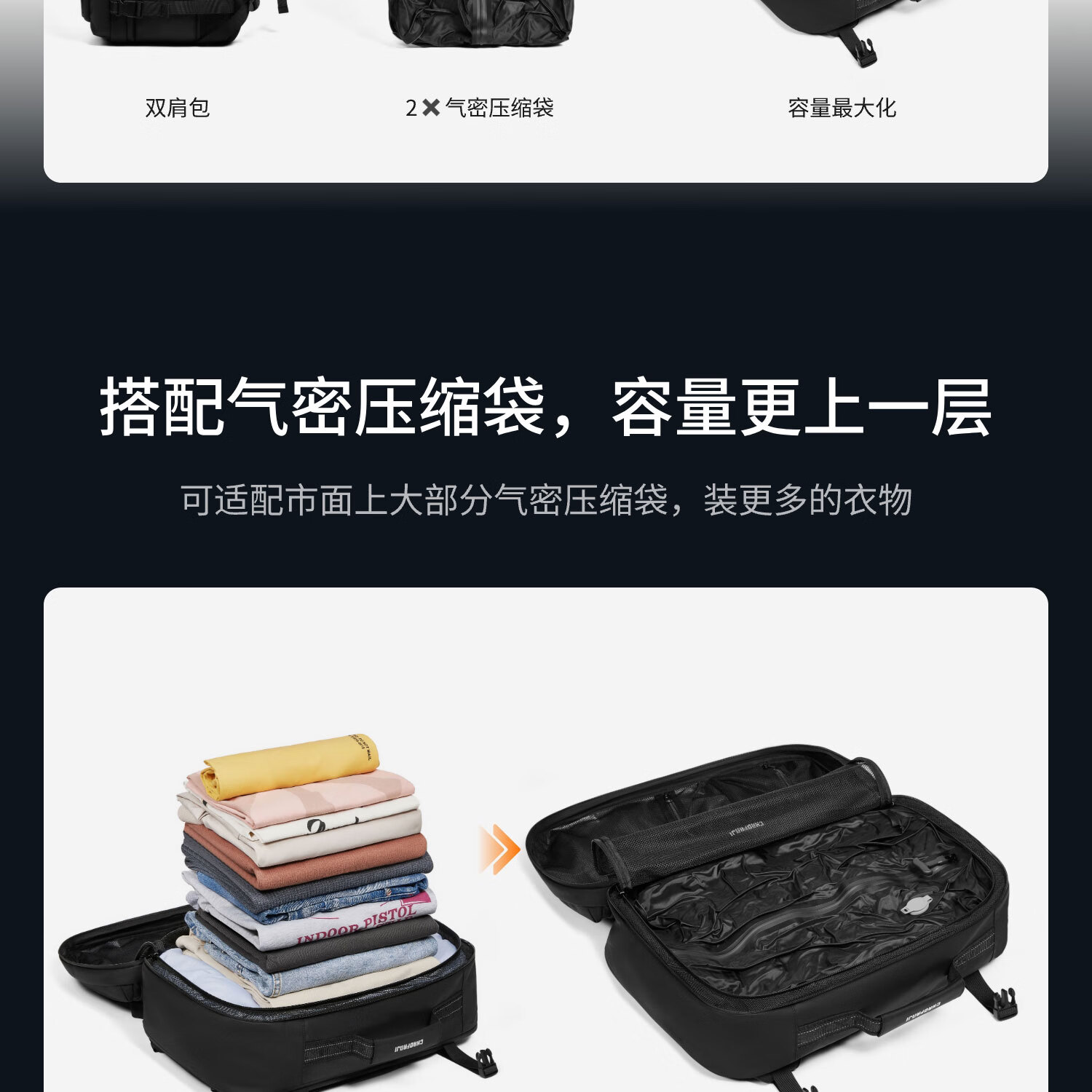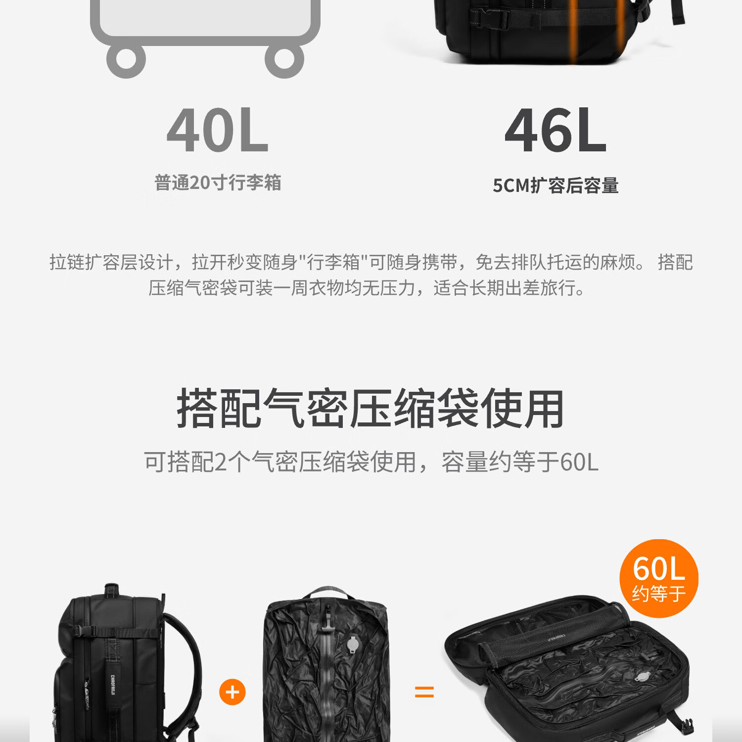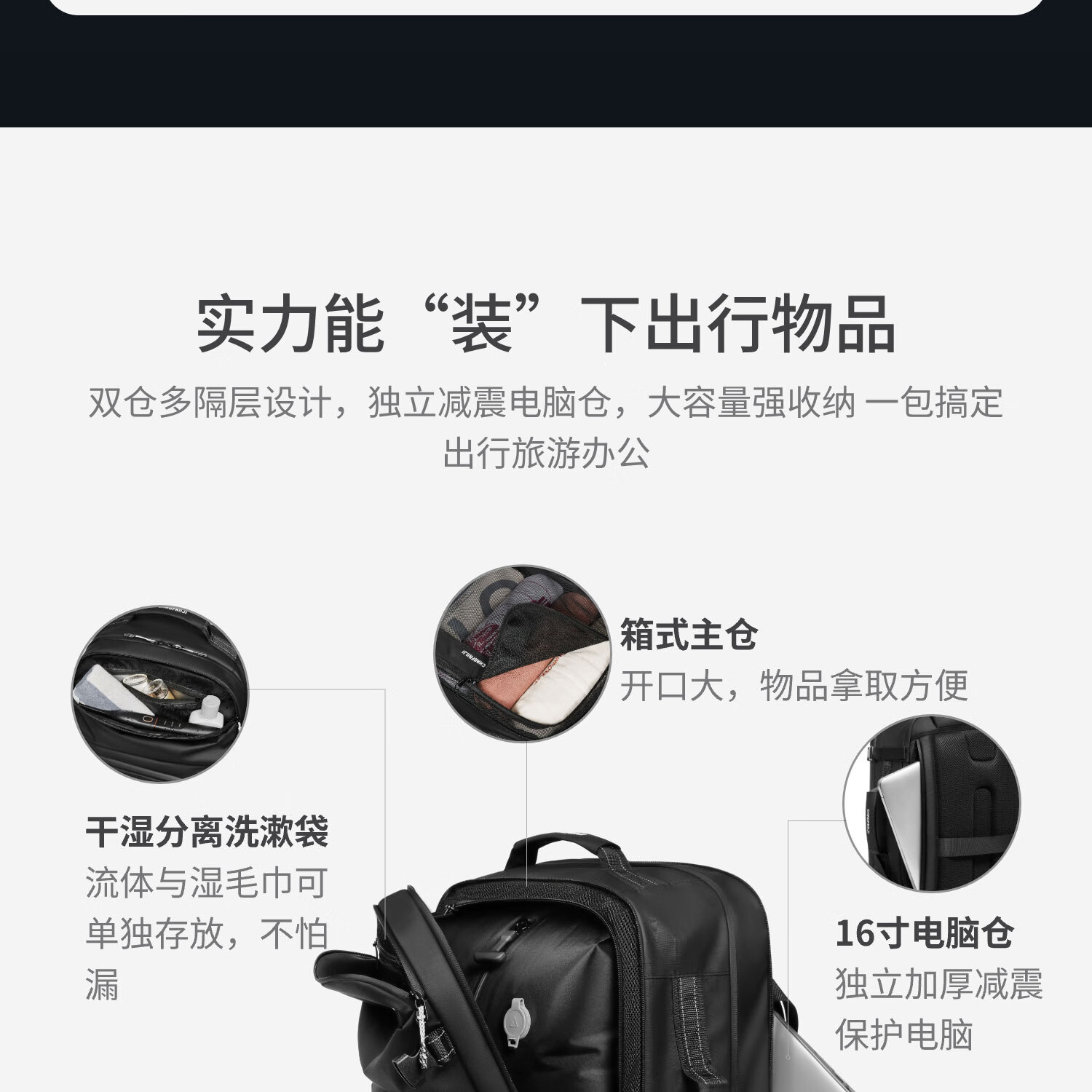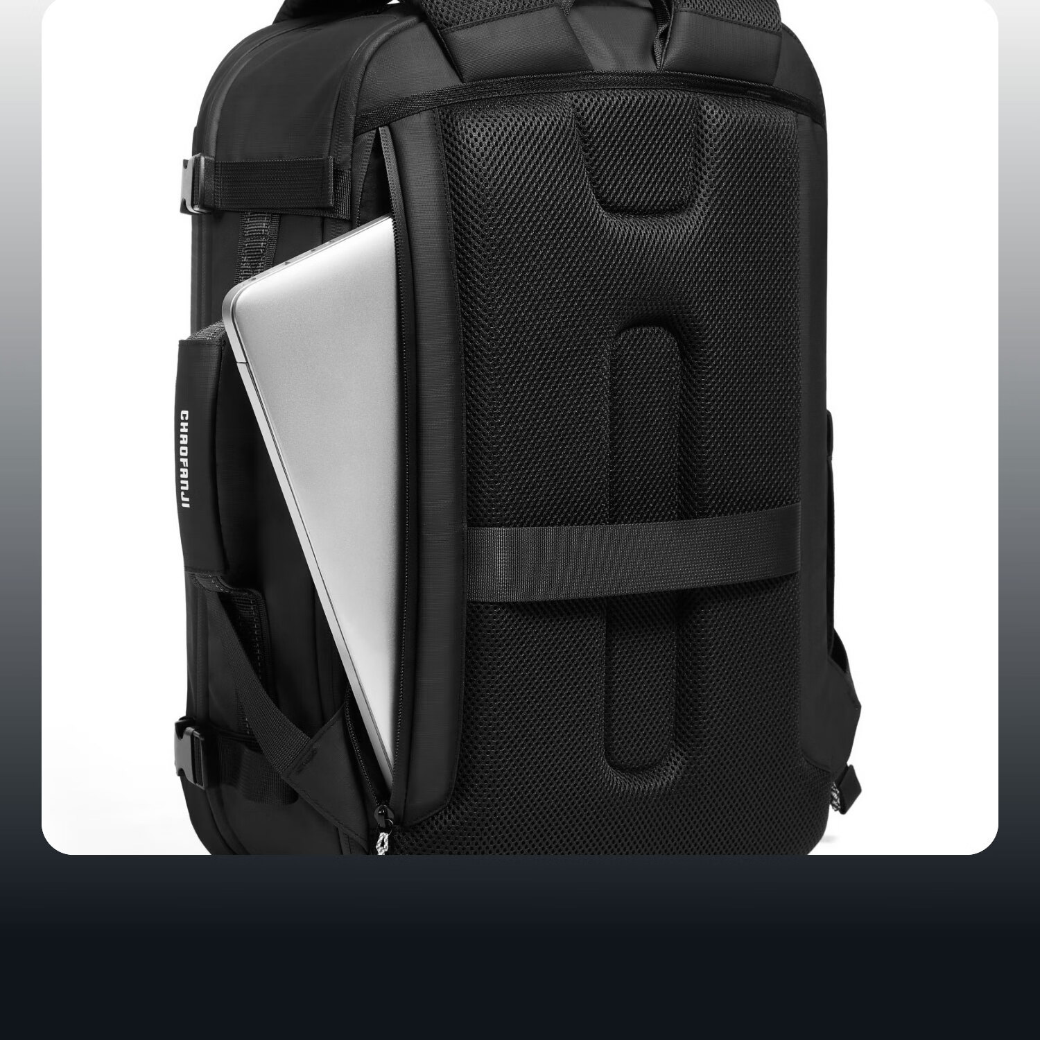 CHAOFANJI超大容量户外双肩包可扩容旅行出差多功能干湿分离防水背包男士 黑色
