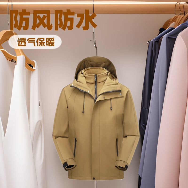德尔.默克(Delmerk)冲锋夹克上衣男女三合一两件套外套小个子爬山旅行登山服团购定制 三合一两件套,男女同款藏青色 S