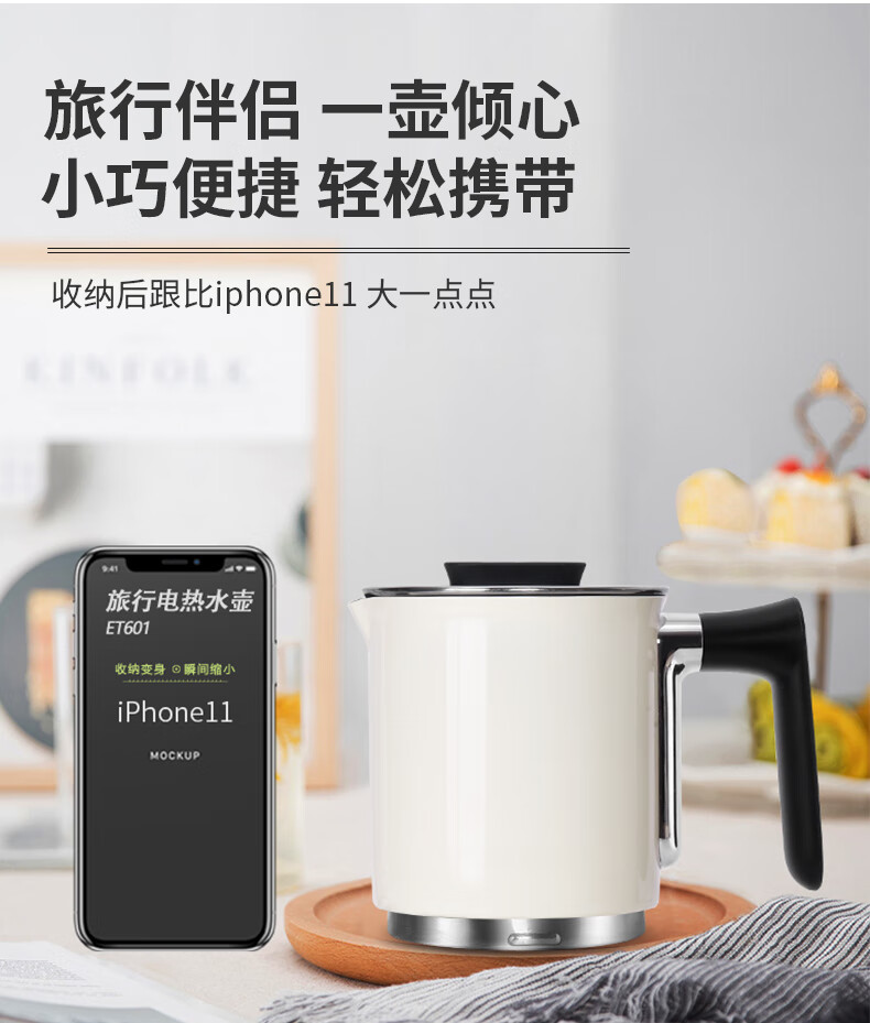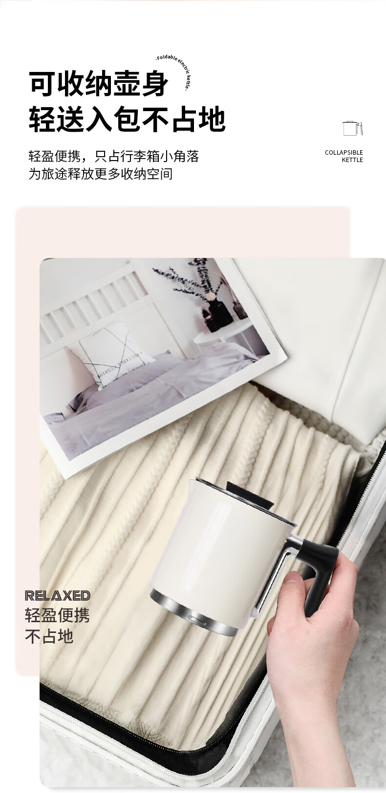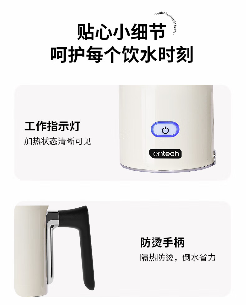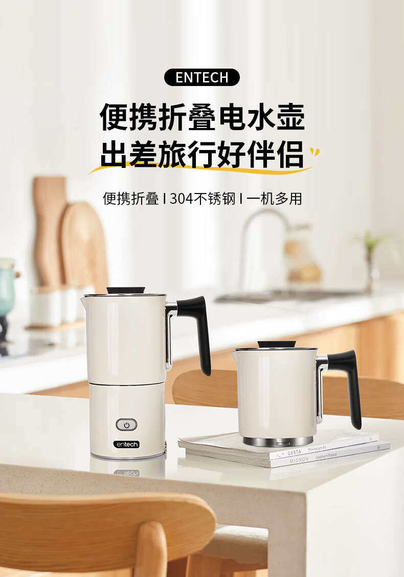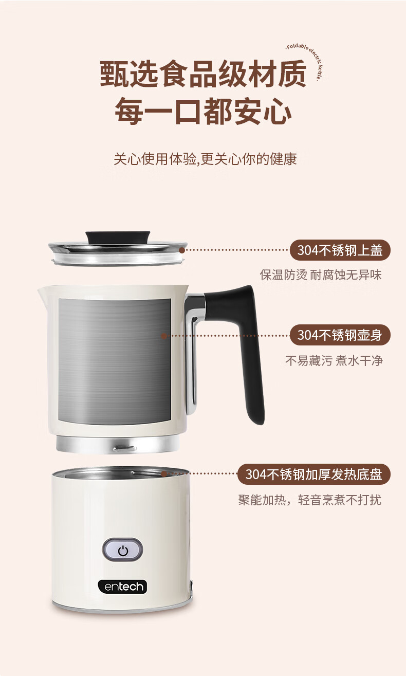 一特(EnTech)迷你旅行电热水壶 家用小型便携式烧水壶折叠 全球通用高铁飞机可带自动断电304不锈钢低功率 0.4L 绿色