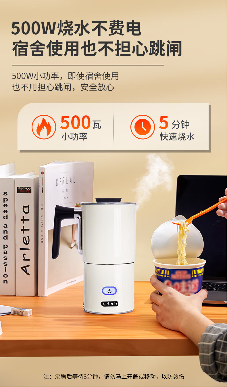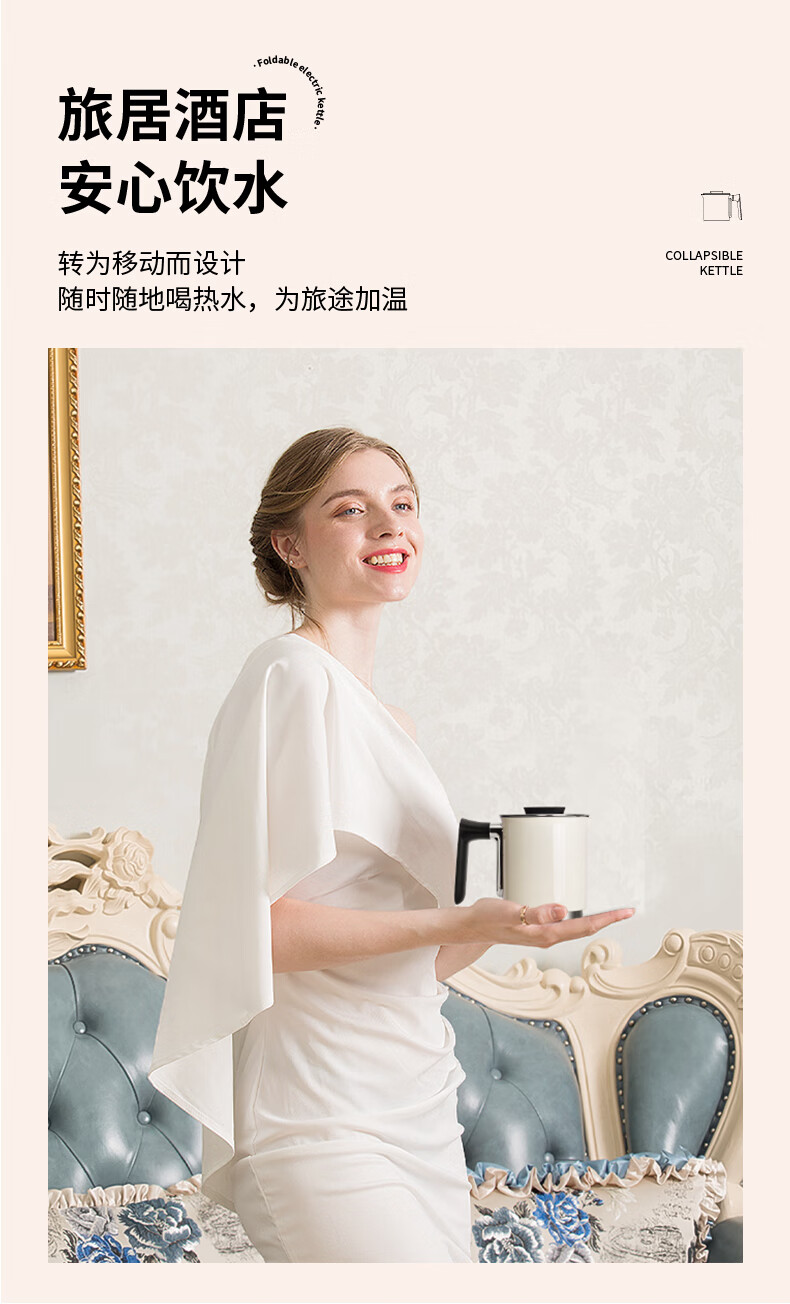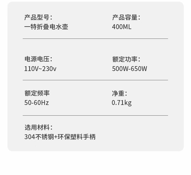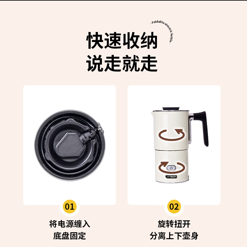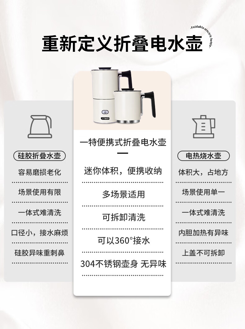 一特(EnTech)迷你旅行电热水壶 家用小型便携式烧水壶折叠 全球通用高铁飞机可带自动断电304不锈钢低功率 0.4L 绿色