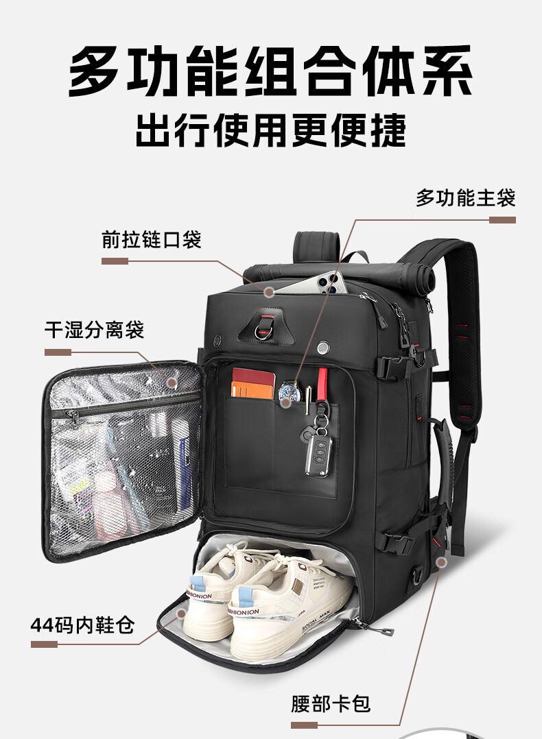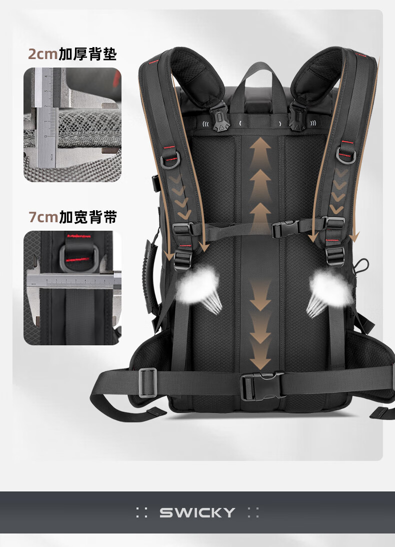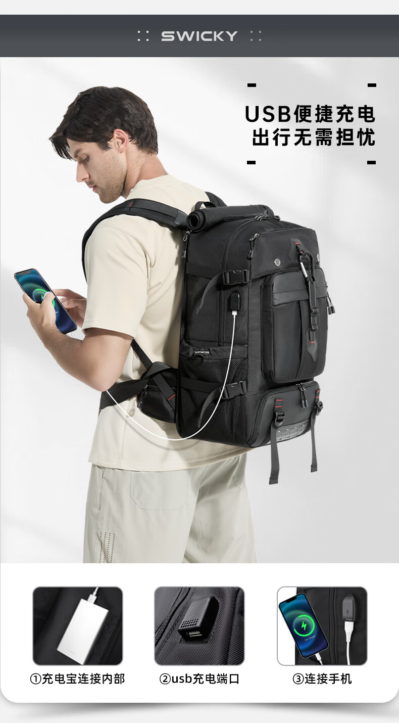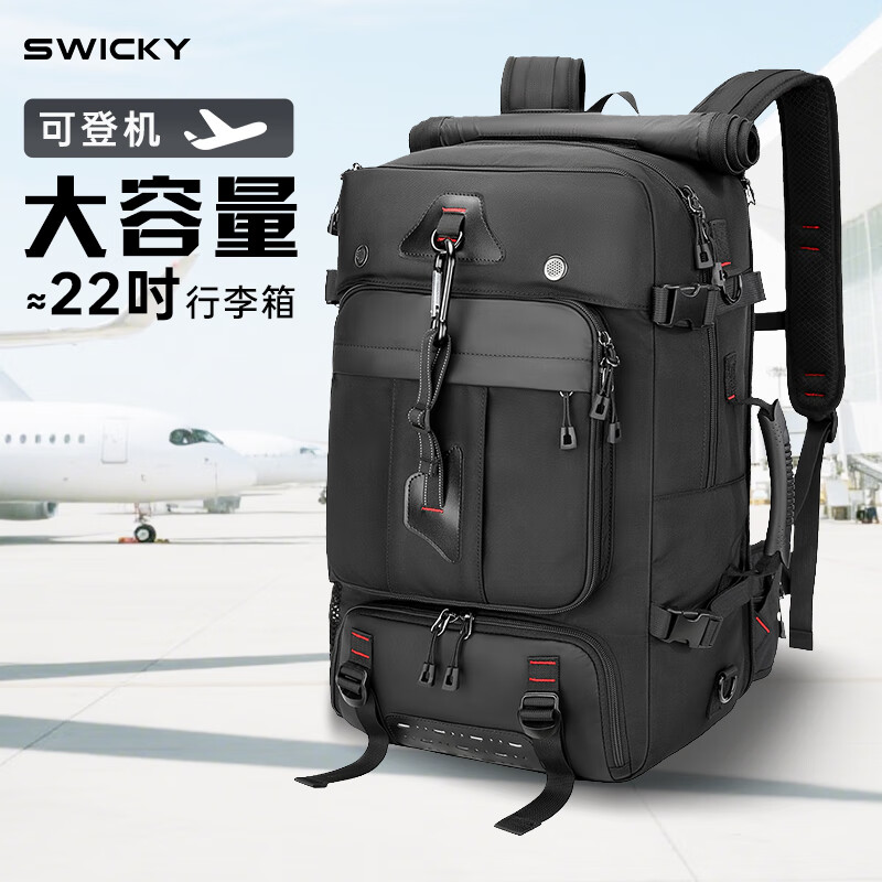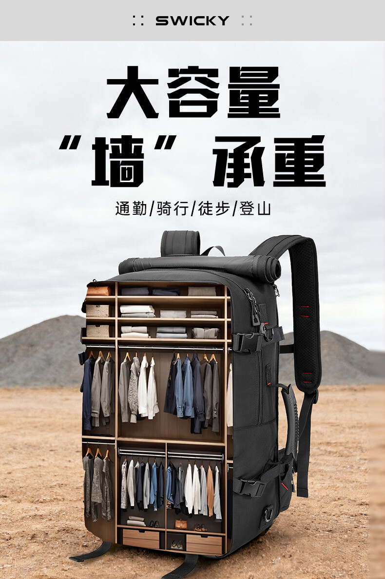 SWICKY背包男款2026年最新款户外超大容量旅行登山双肩包出差行李电脑包 通勤款【独立鞋仓+可拆卸隐藏式肩带】