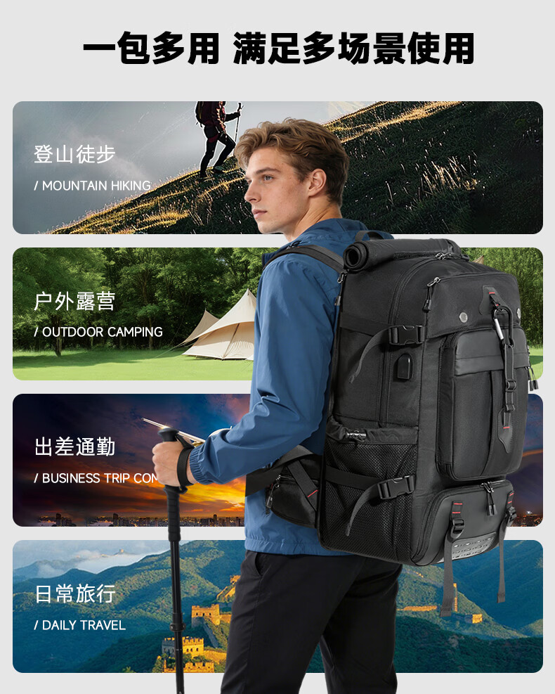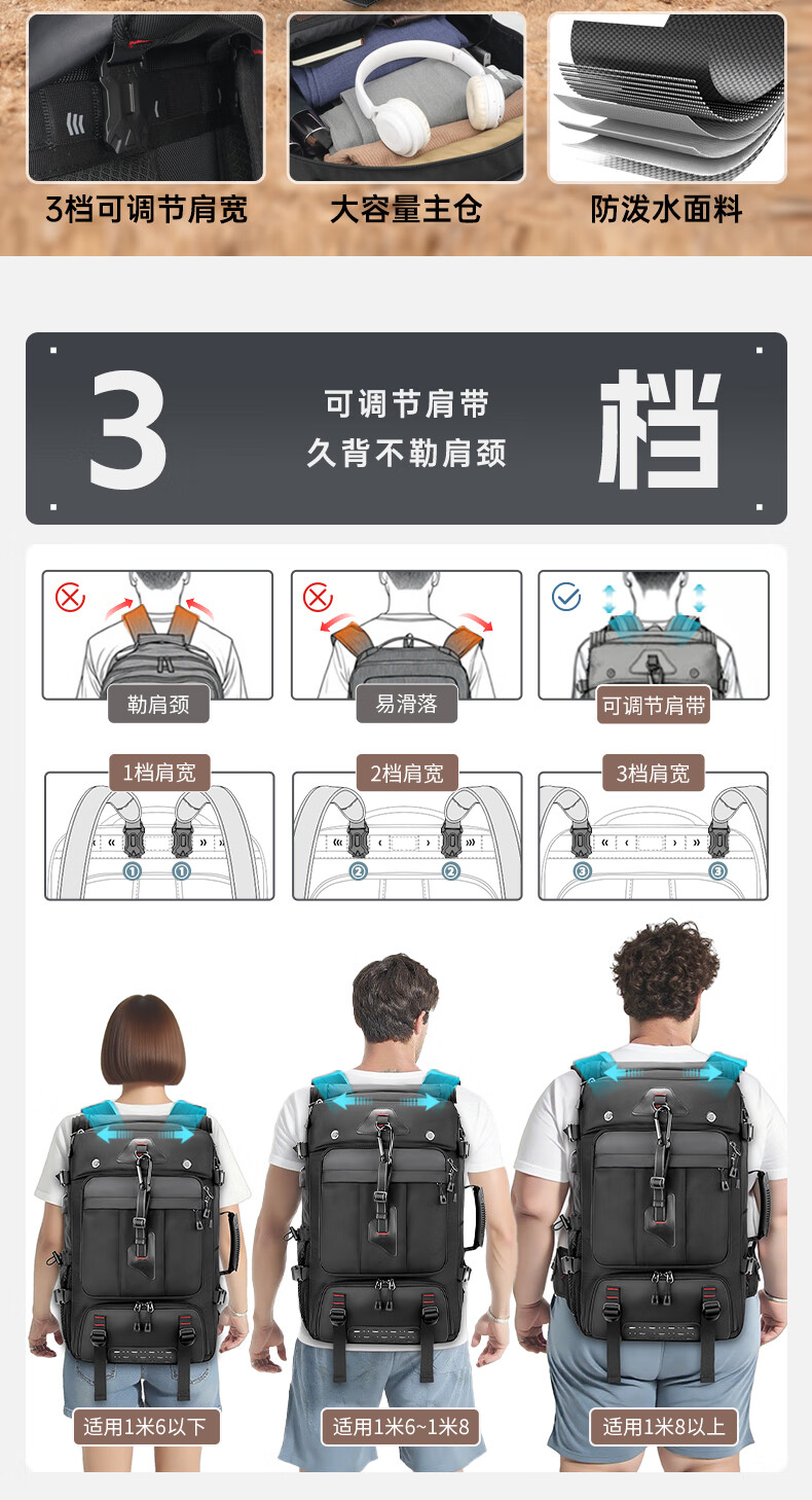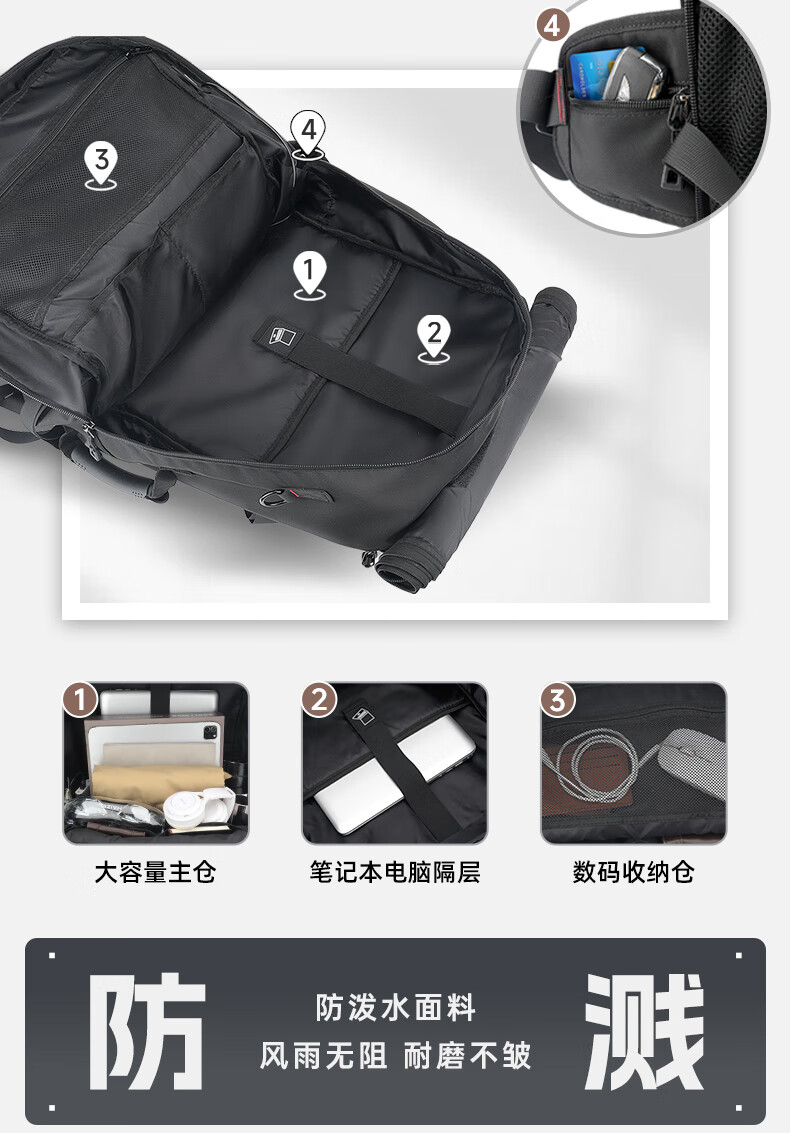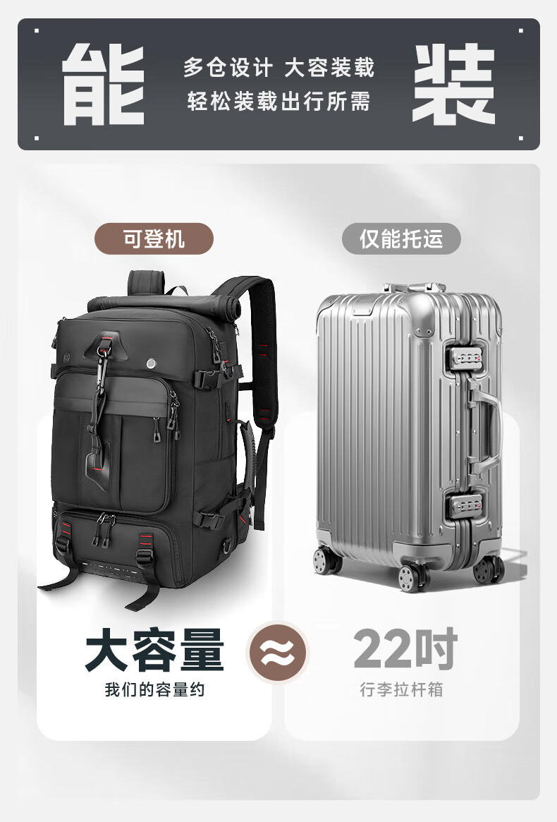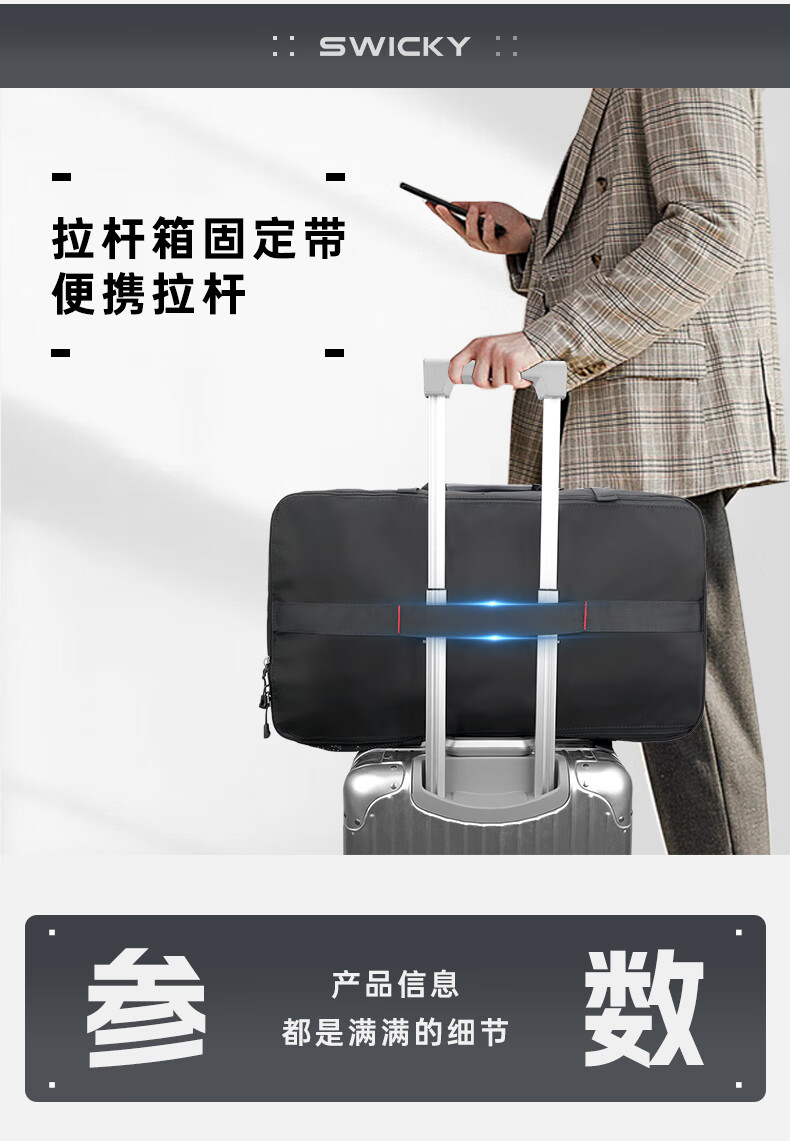 SWICKY背包男款2026年最新款户外超大容量旅行登山双肩包出差行李电脑包 通勤款【独立鞋仓+可拆卸隐藏式肩带】