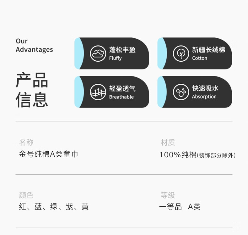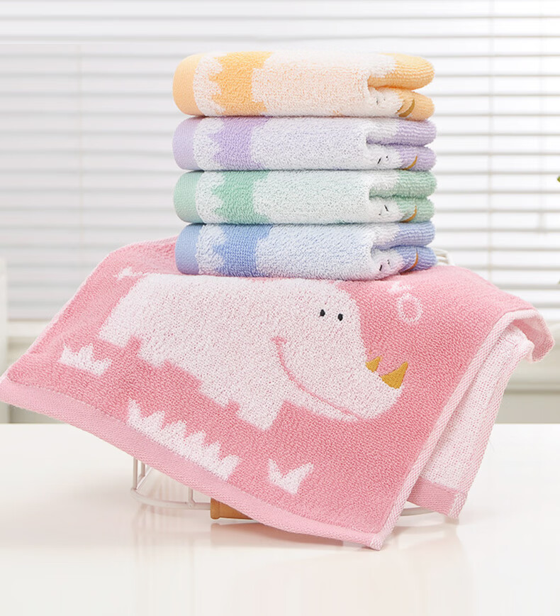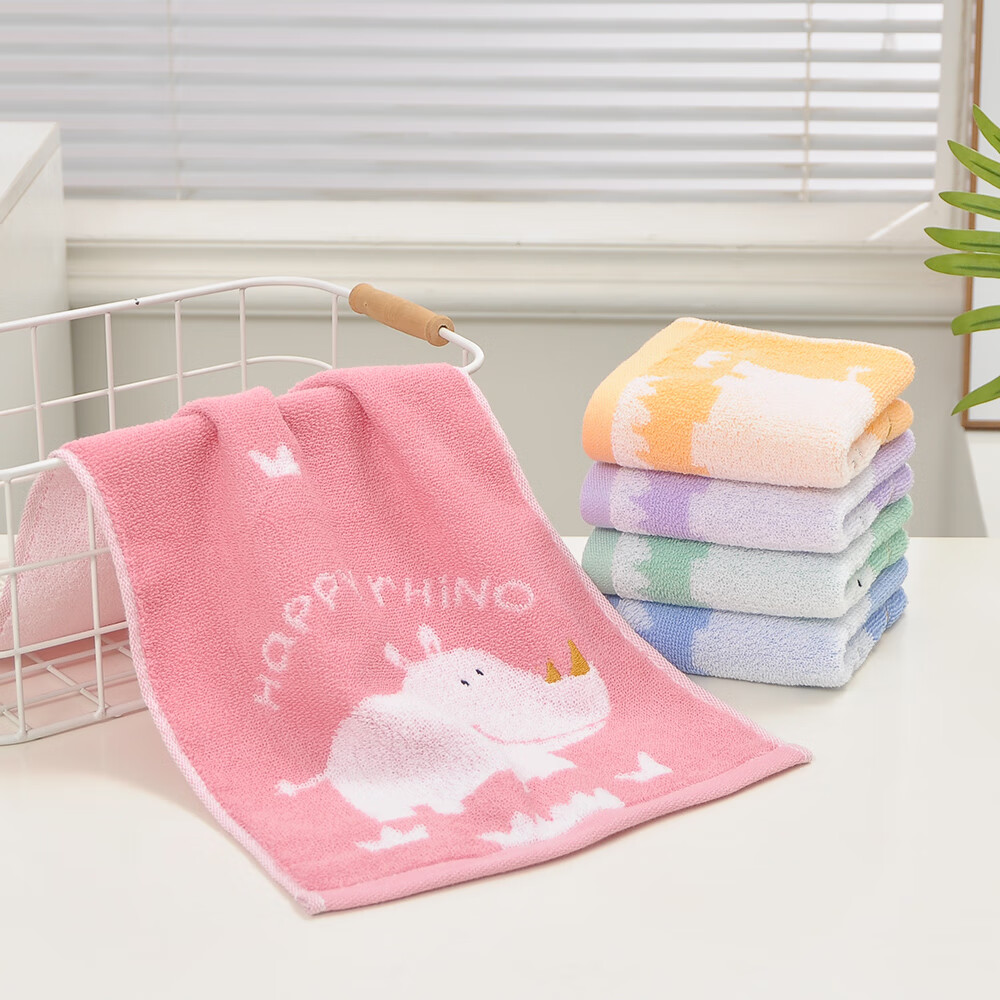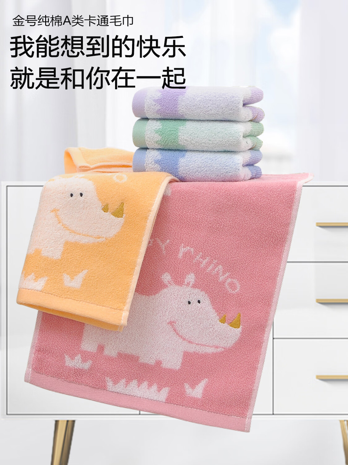 金号纯棉儿童毛巾A类家用洗脸擦手巾宝宝面巾柔软卡通可爱小毛巾 4条-紫色+黄色+绿色+红色