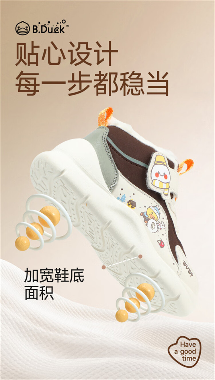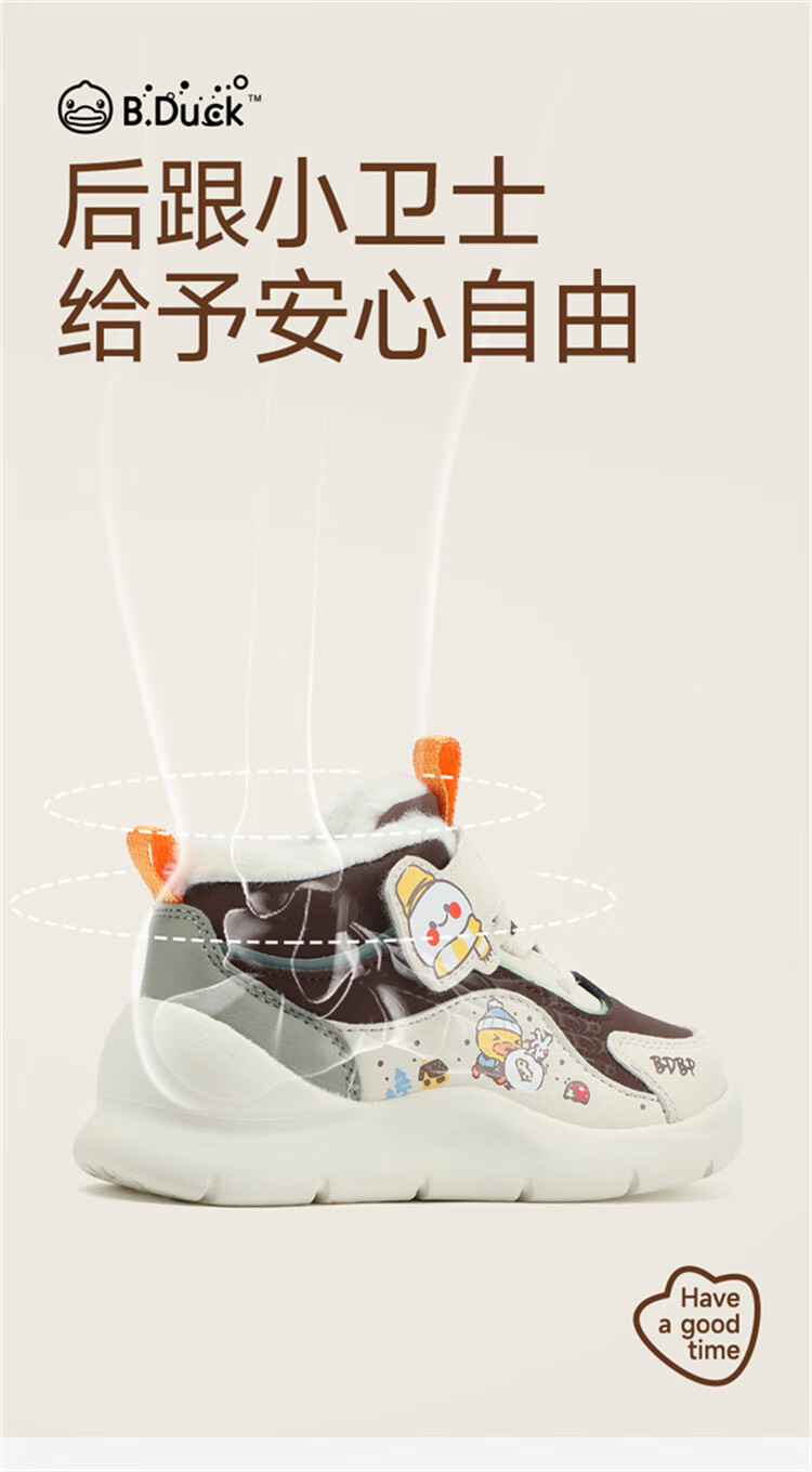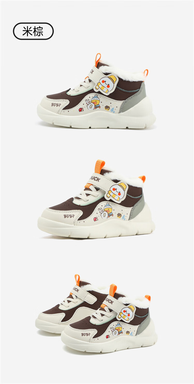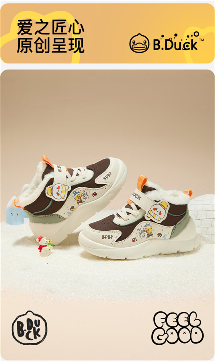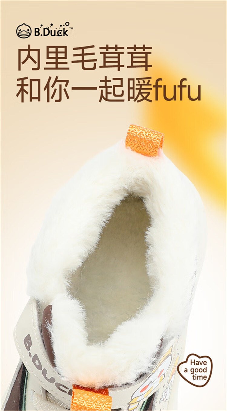 B.Duck小黄鸭童鞋2025新款儿童板鞋男女保暖大棉毛绒高帮宝宝运动棉鞋 米棕 28 码 适合脚长16.9-17.4cm