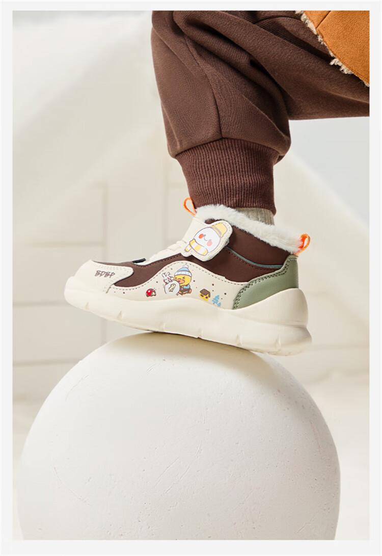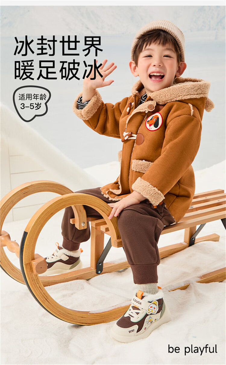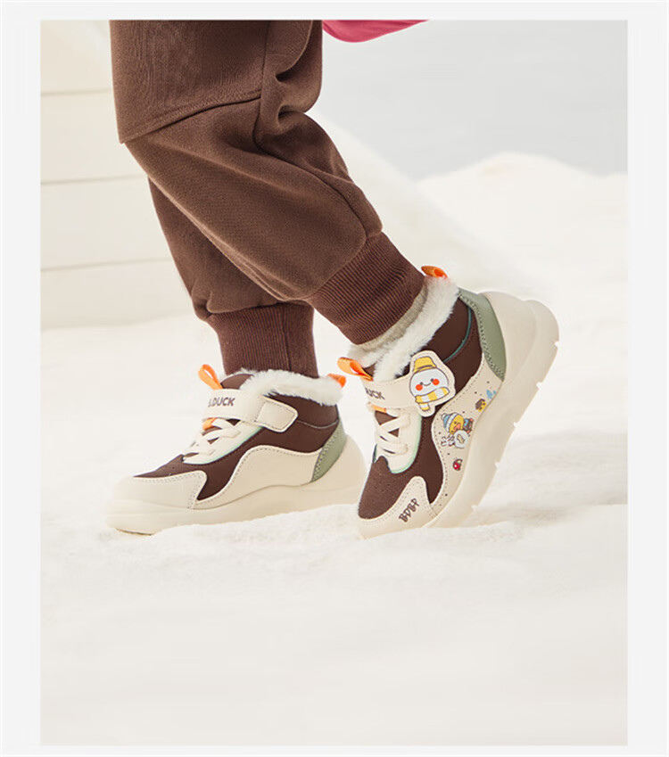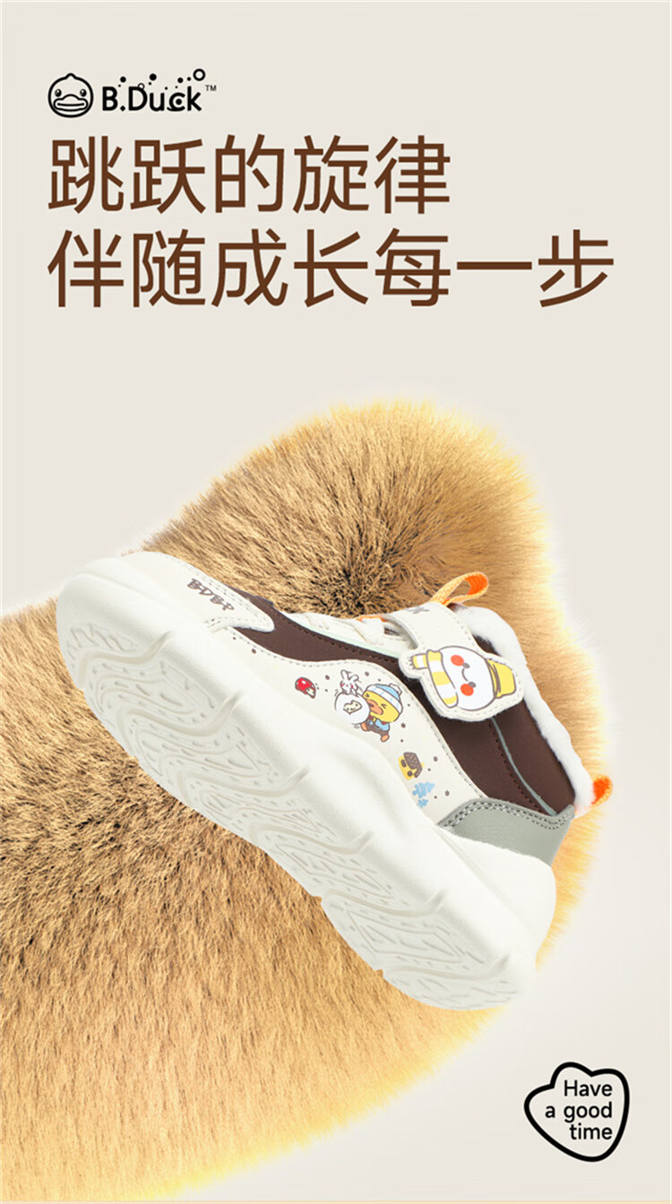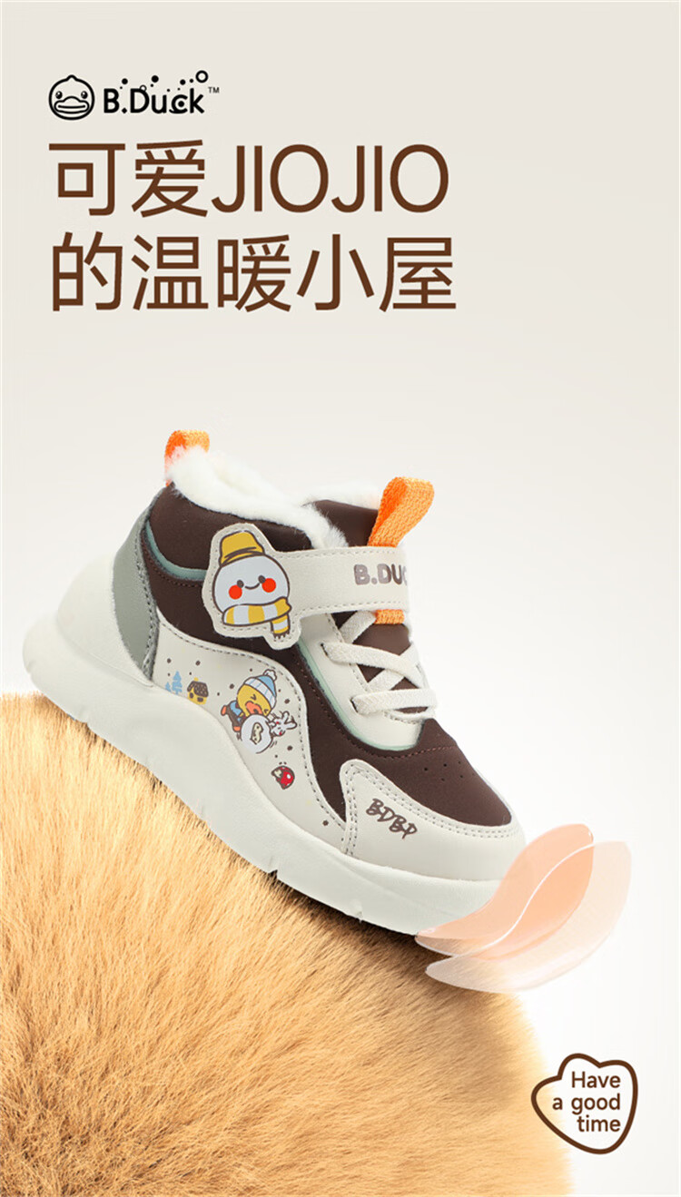 B.Duck小黄鸭童鞋2025新款儿童板鞋男女保暖大棉毛绒高帮宝宝运动棉鞋 米棕 28 码 适合脚长16.9-17.4cm