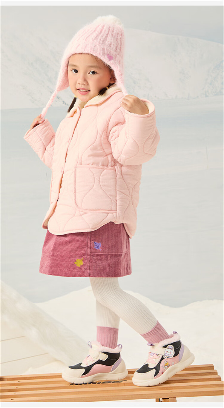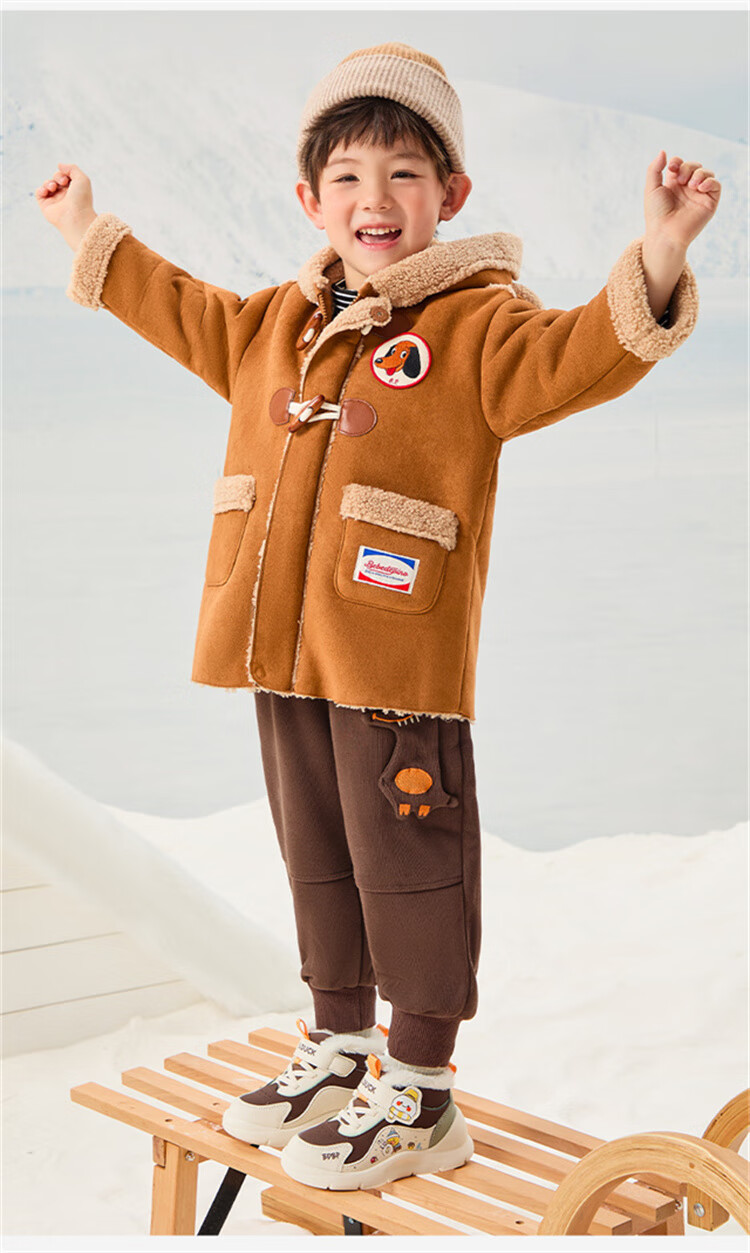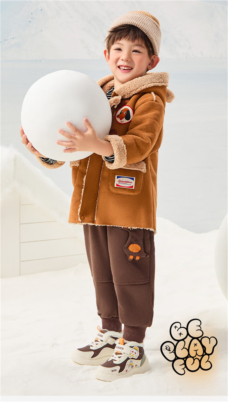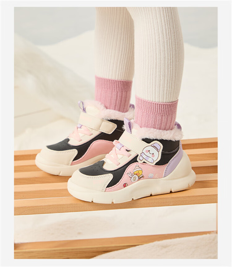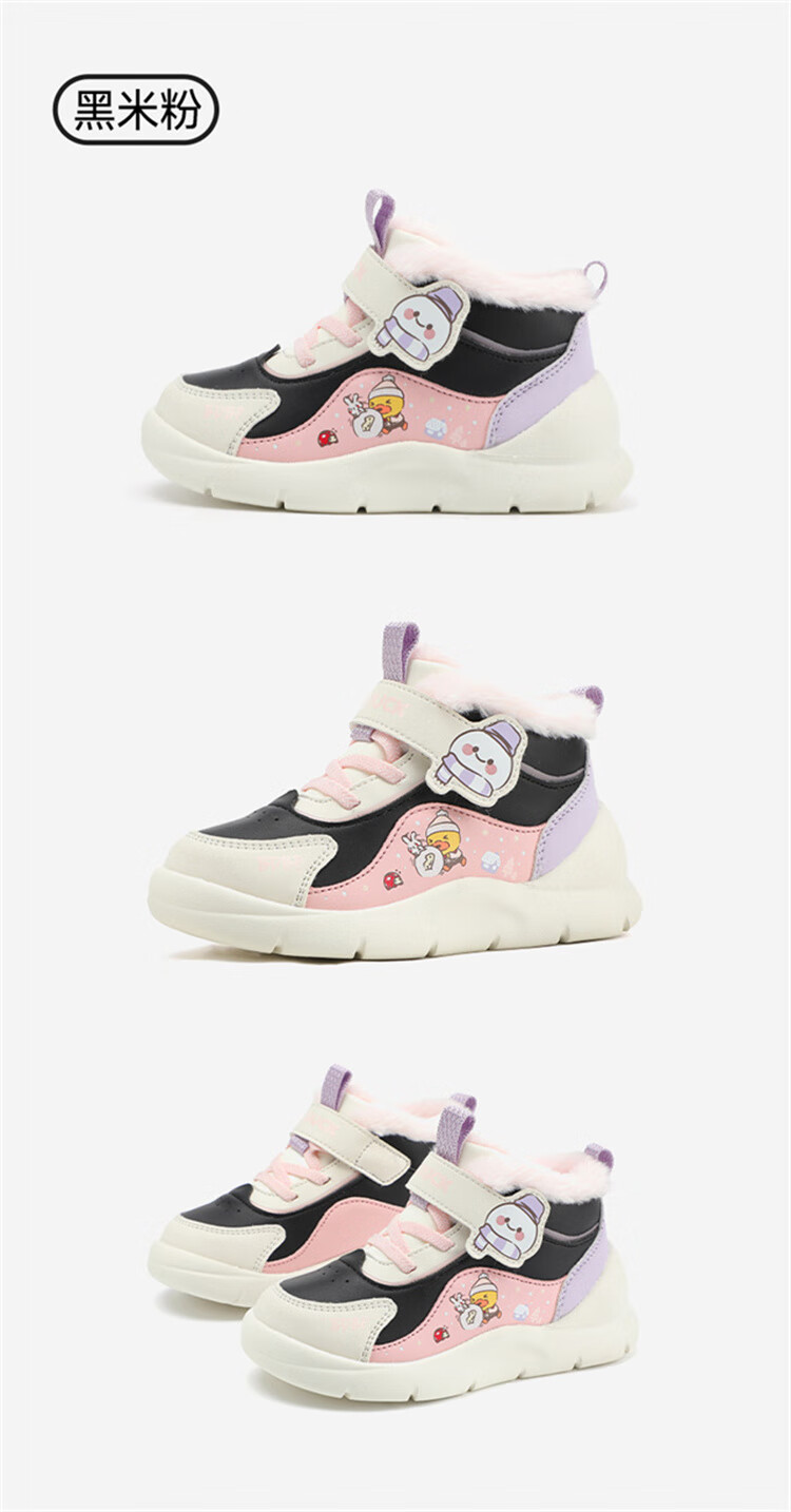 B.Duck小黄鸭童鞋2025新款儿童板鞋男女保暖大棉毛绒高帮宝宝运动棉鞋 米棕 28 码 适合脚长16.9-17.4cm