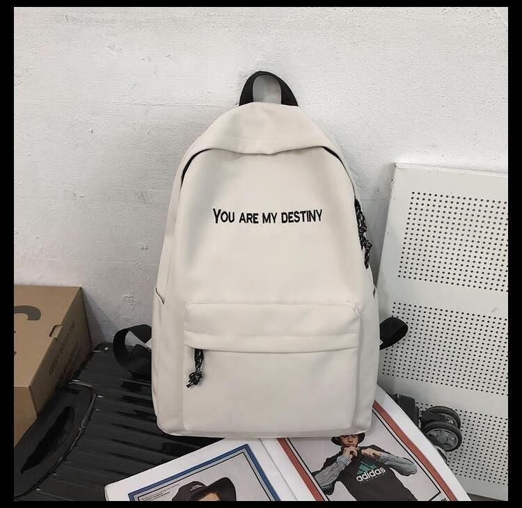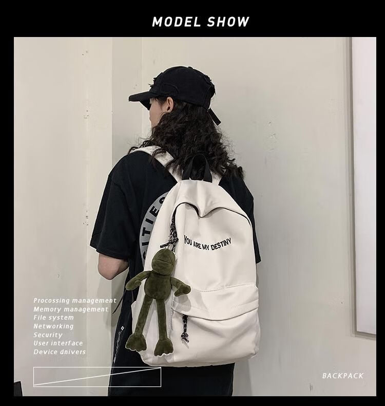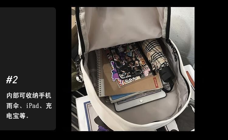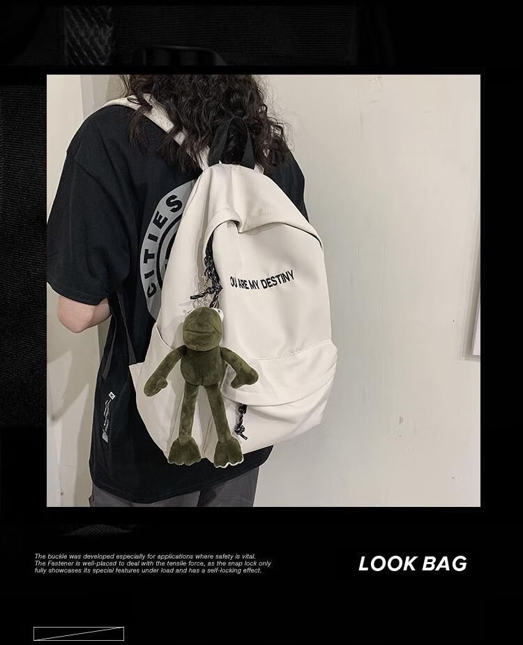 橙央书包男双肩包女韩版休闲高学生帆布时尚潮流百搭背包 黑色大号不要挂件