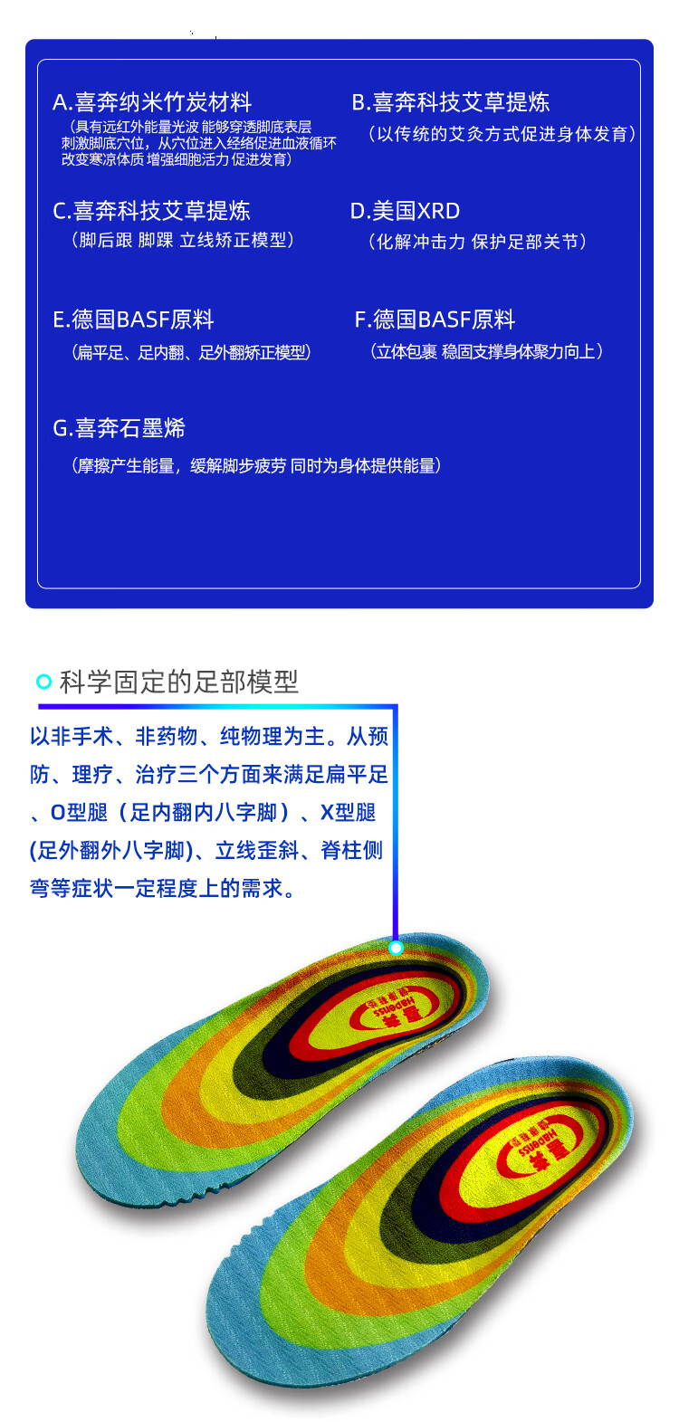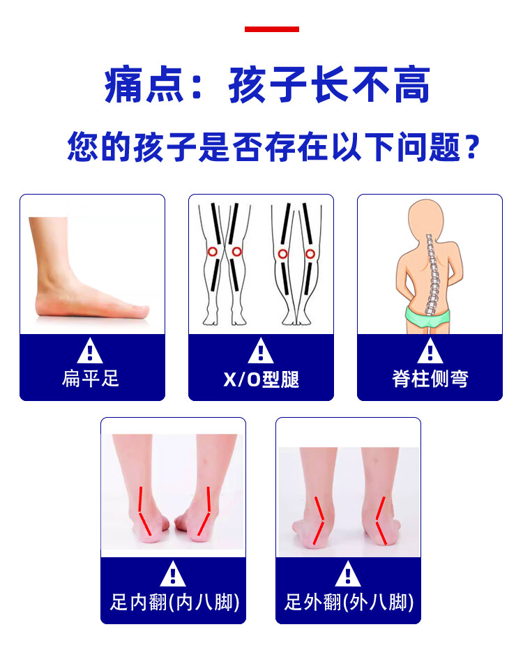 喜奔儿童矫正鞋垫扁平足内外八字足外翻xo腿足弓支撑按摩足底穴位长高 少年儿童喜奔长高垫 46码 内长300mm