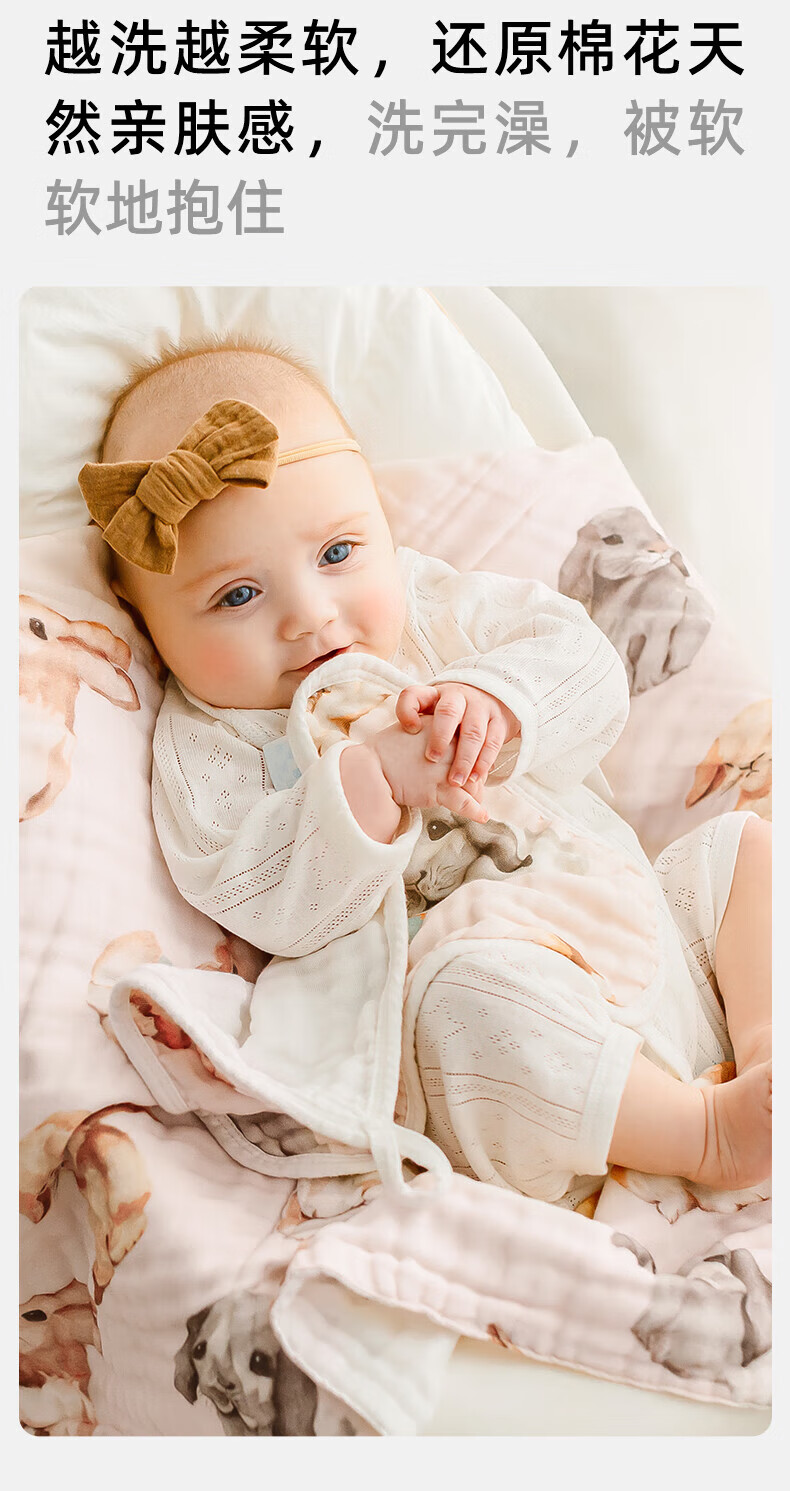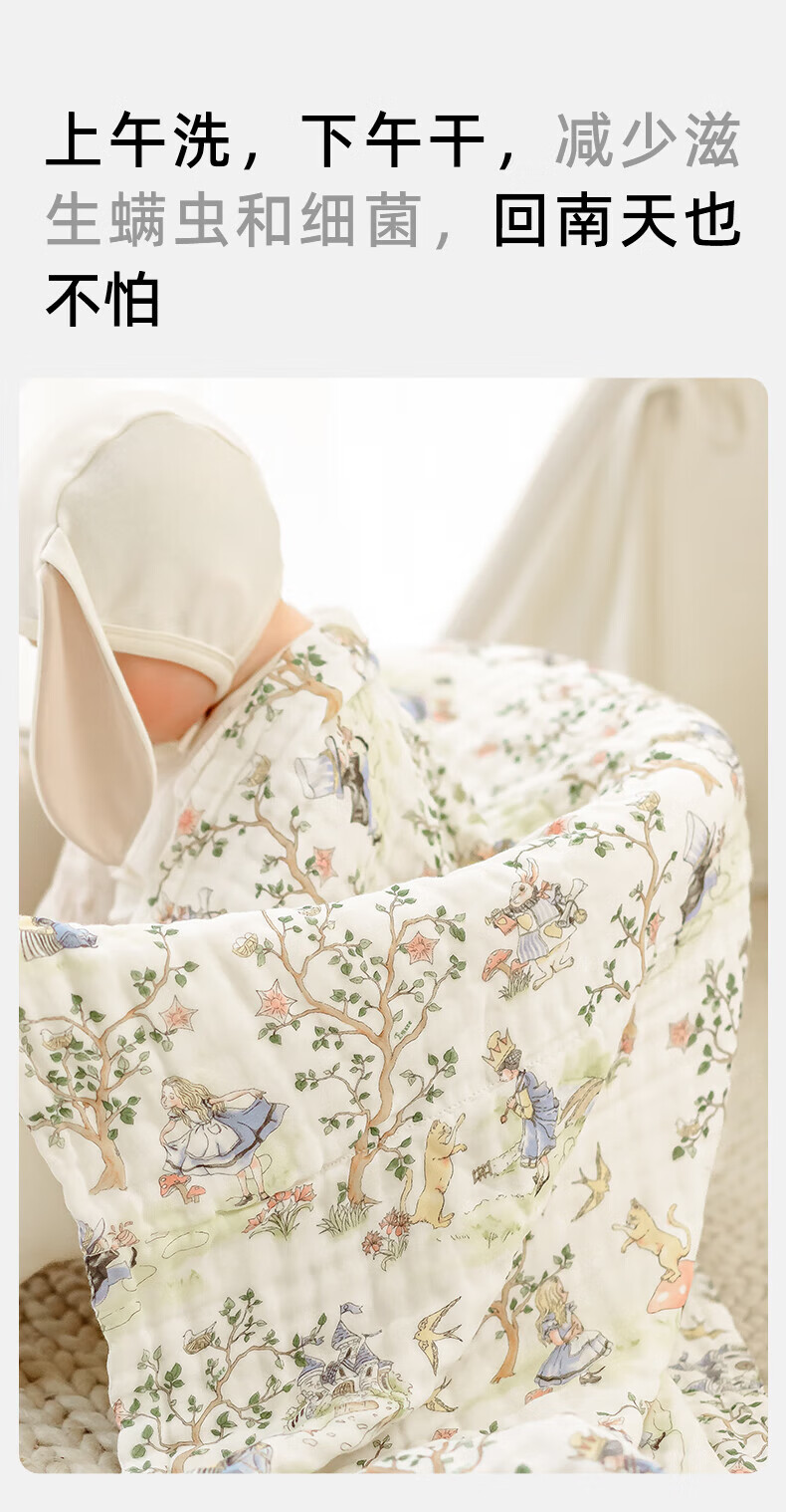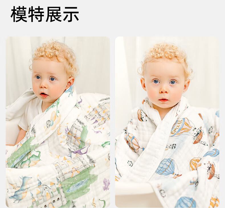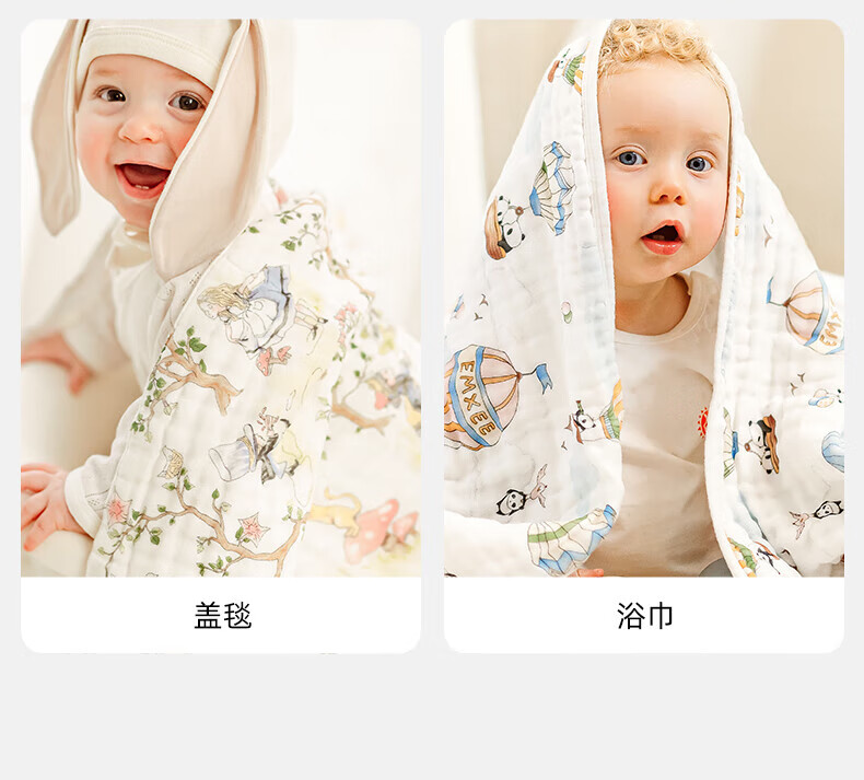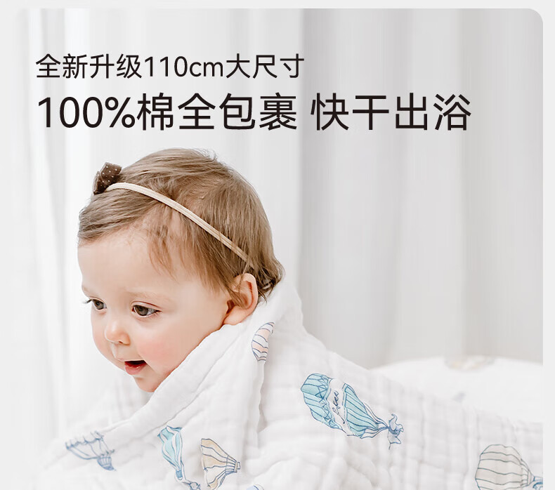 嫚熙(EMXEE)婴儿纱布浴巾纯棉宝宝新生儿童浴巾大尺寸 洗澡包巾 梦幻乐园 110×110cm