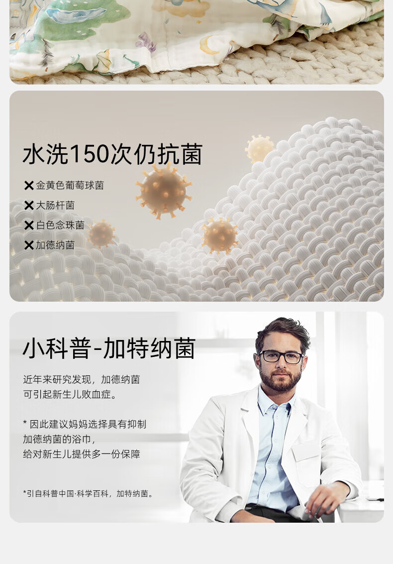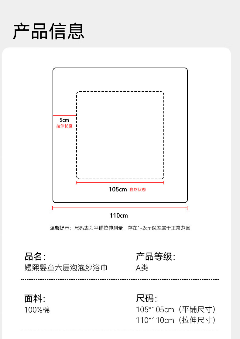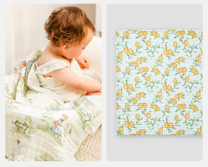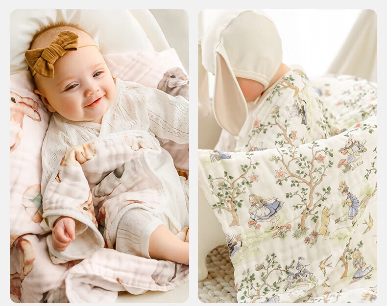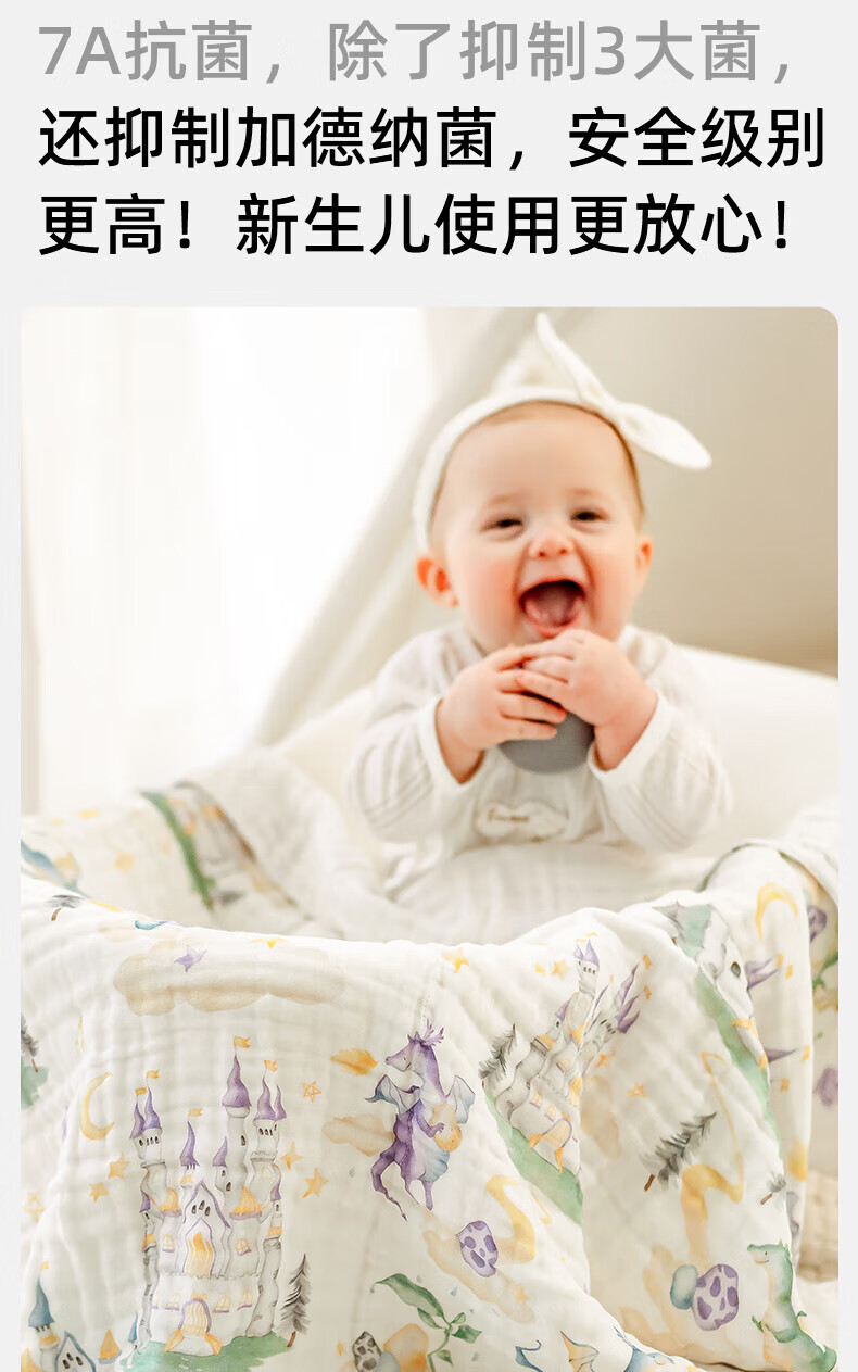 嫚熙(EMXEE)婴儿纱布浴巾纯棉宝宝新生儿童浴巾大尺寸 洗澡包巾 梦幻乐园 110×110cm