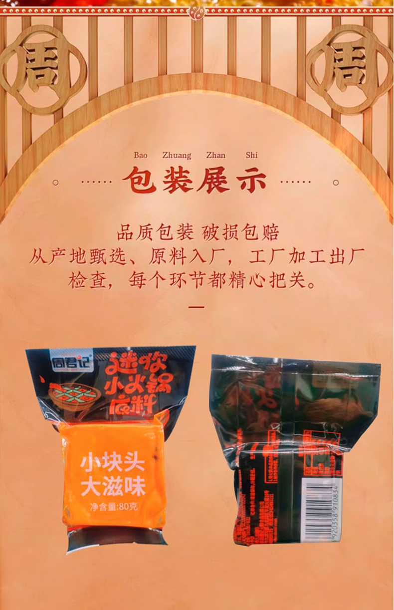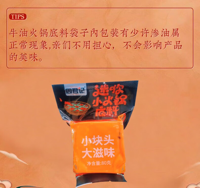 周君记 牛油火锅底料重庆特产老火锅红油 麻辣烫串串香调味料80g*6袋
