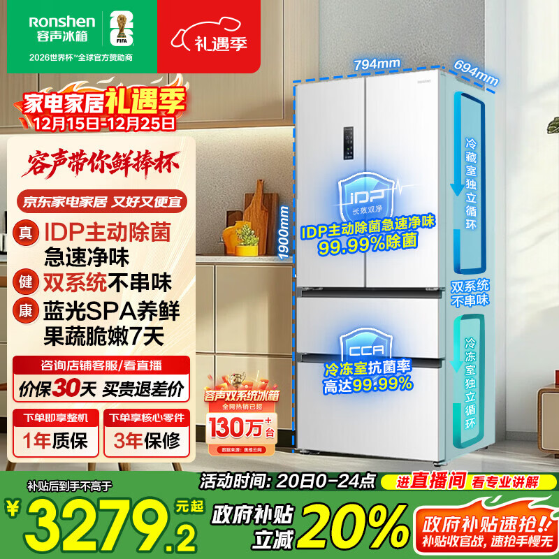 容声IDP净味501L法式多门冰箱pro款主动除菌双系统双循环一级能效风冷无霜BCD-501WD3MPZ国家补贴