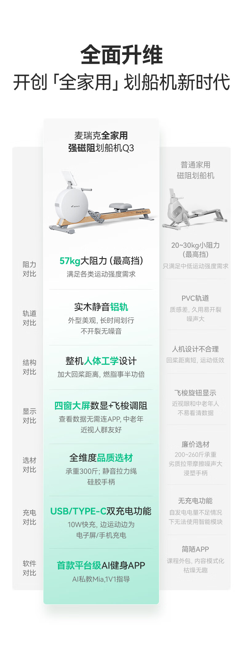 麦瑞克(MERACH)划船机家用智能调阻磁控室内有氧无氧运动健身器材Q3 MR-R21W2