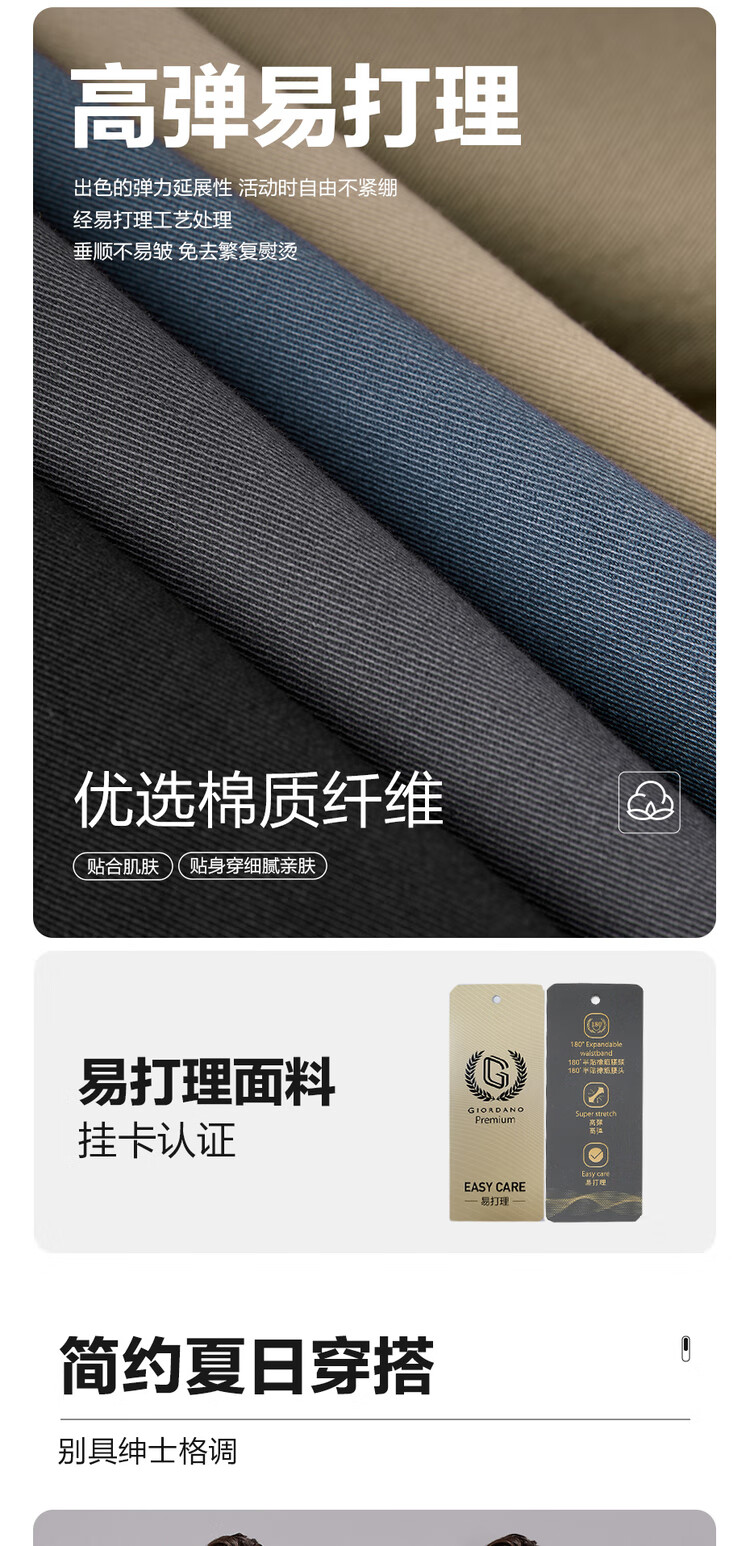 佐丹奴(Giordano)易打理裤子男 高弹力梭织男裤 轻商务男士休闲裤01113067