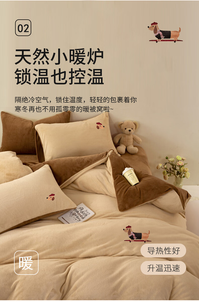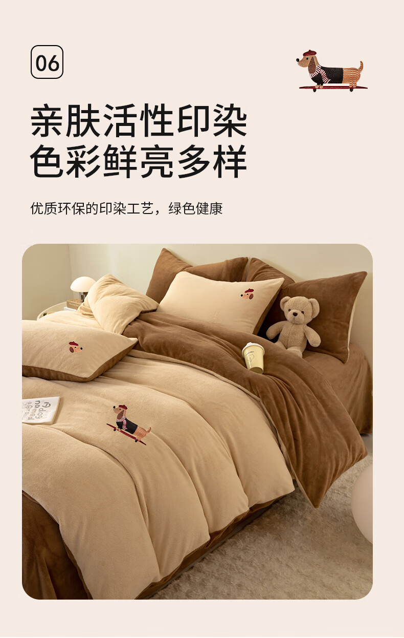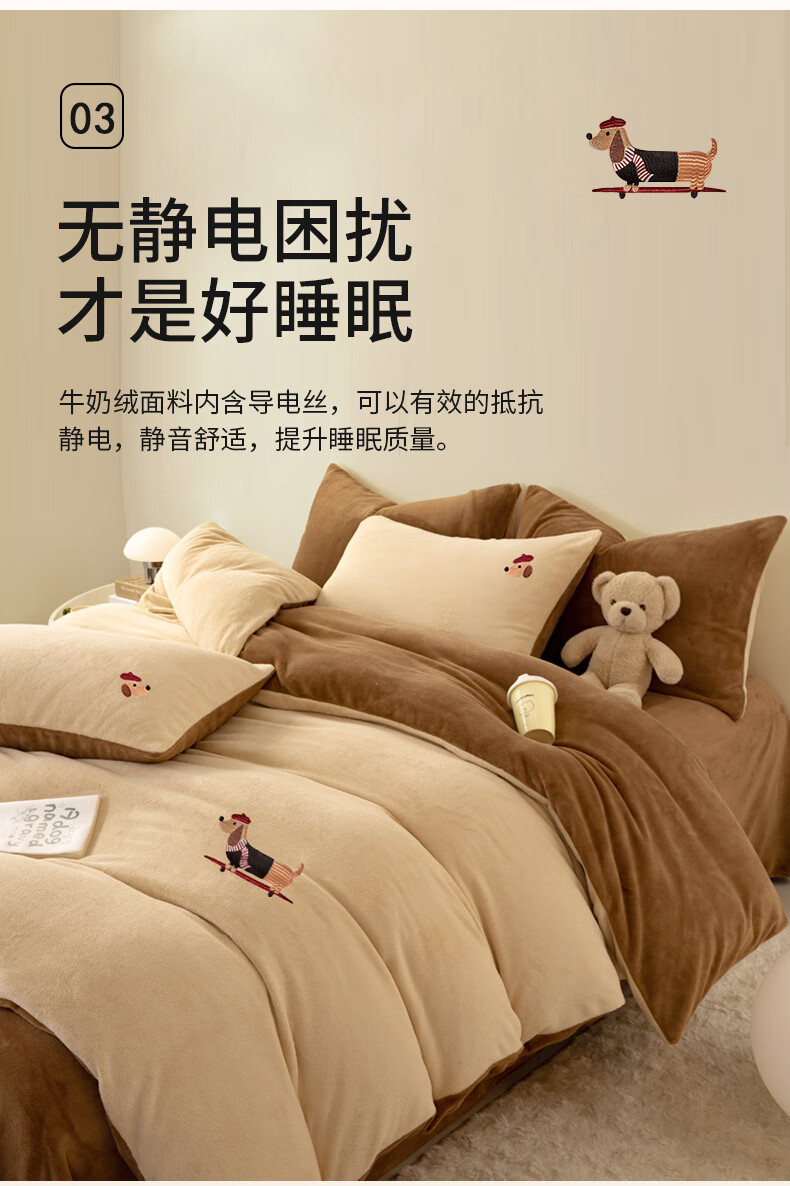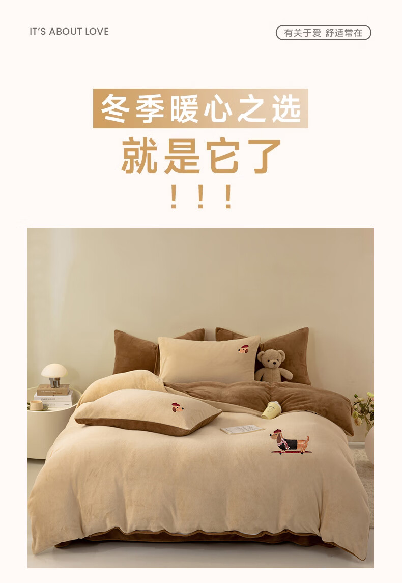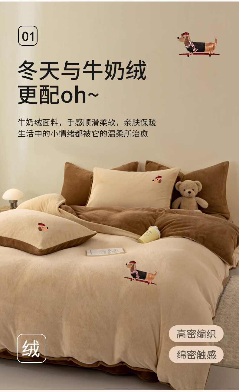 VJE秋冬季床上牛奶绒四件套双面绒法兰珊瑚绒加厚被套床单三件套床品 淘气猫(浅粉+深灰) 四件套2.0m 床单款 -被套220*240cm