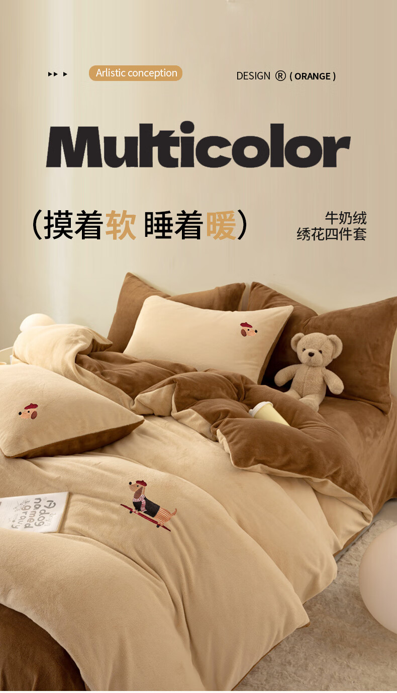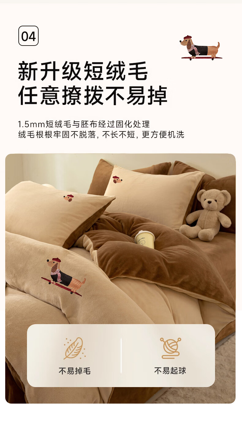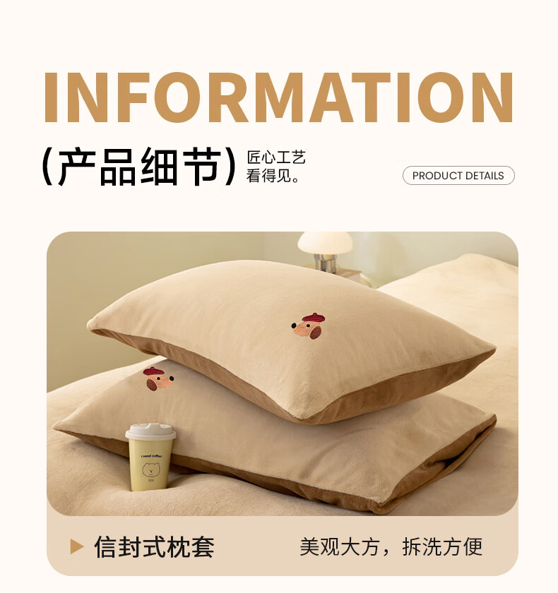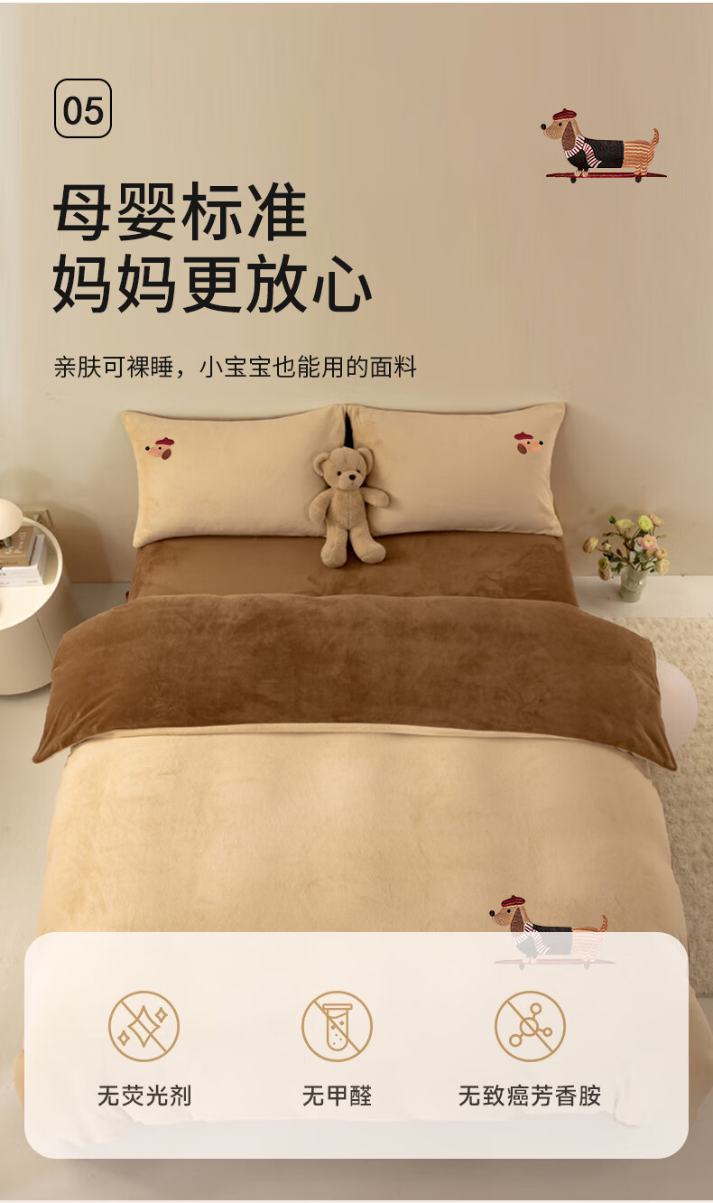 VJE秋冬季床上牛奶绒四件套双面绒法兰珊瑚绒加厚被套床单三件套床品 淘气猫(浅粉+深灰) 四件套2.0m 床单款 -被套220*240cm