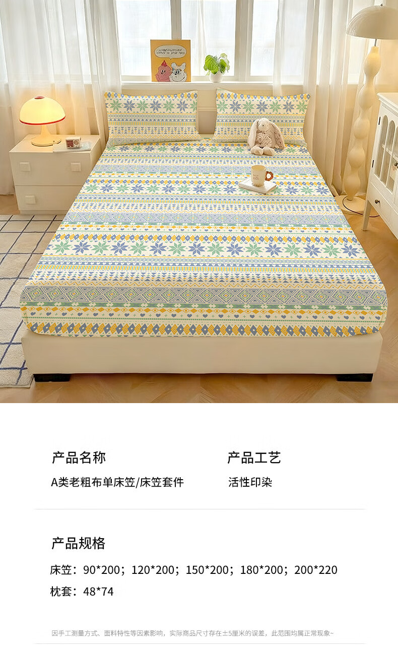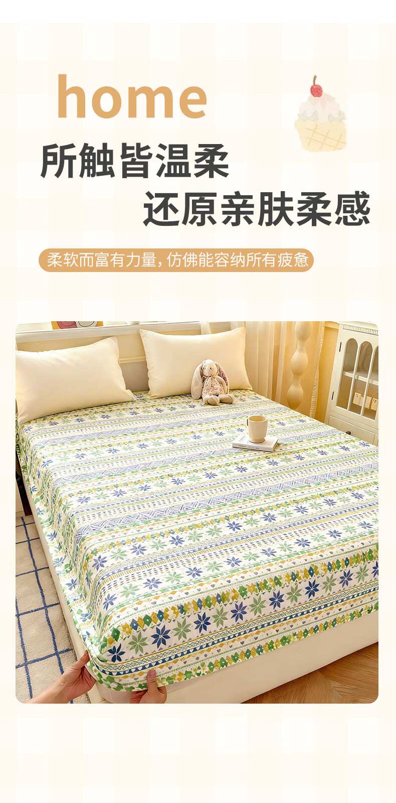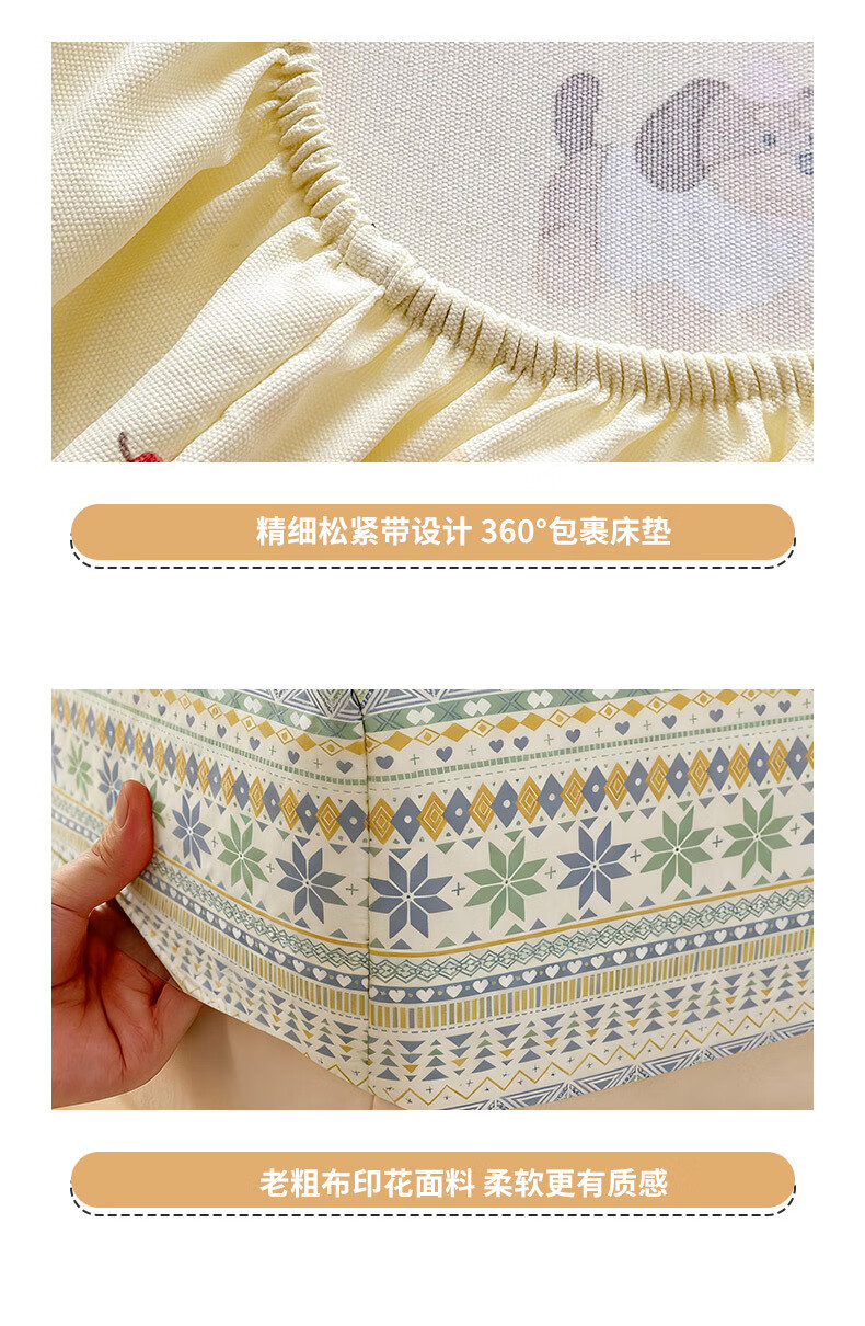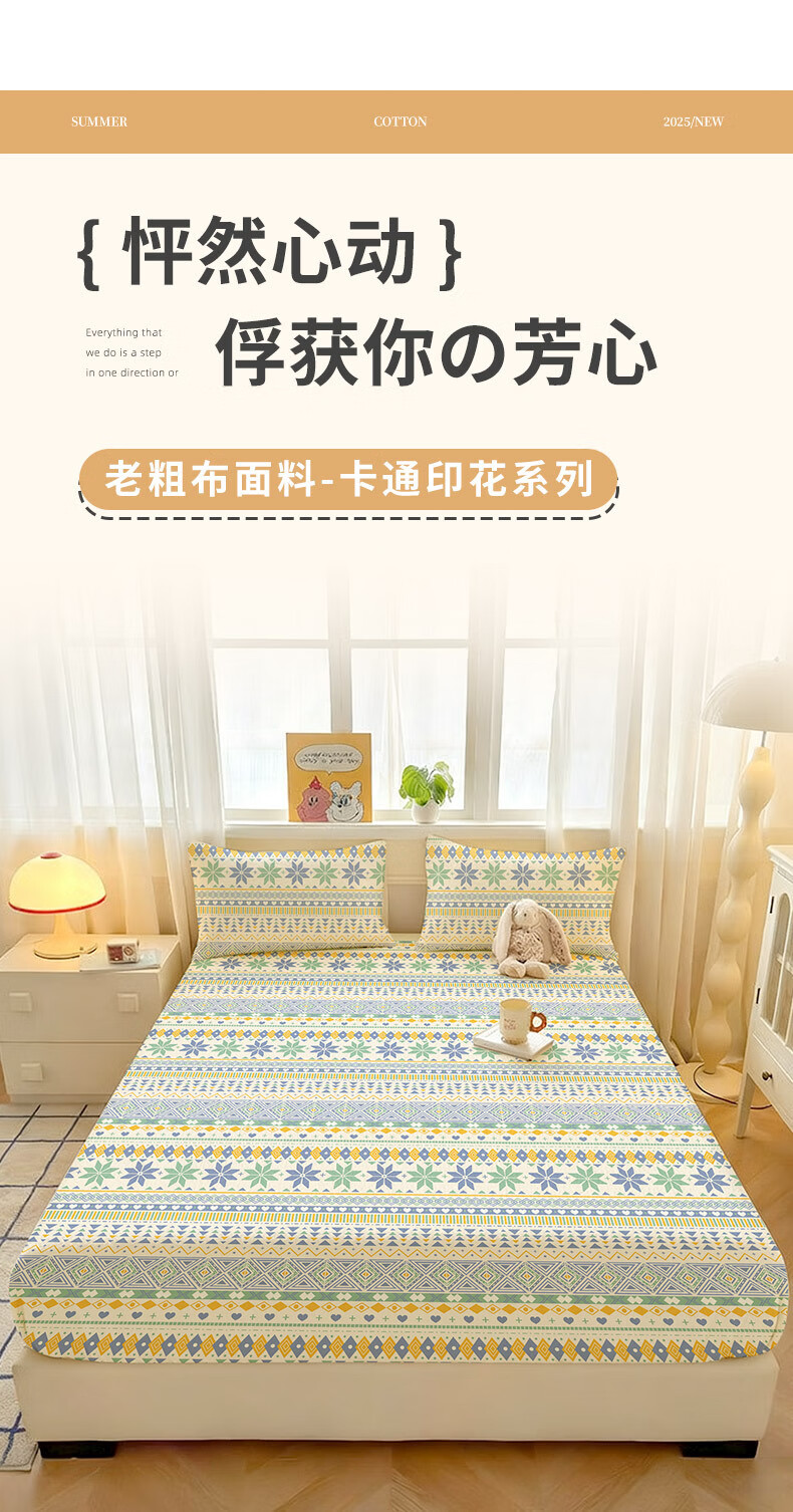 高睿老粗布非纯棉床笠单件加厚床罩防滑床单防尘罩全包席梦思保护罩 米底菱形花 【单床笠】 90cm*200cm