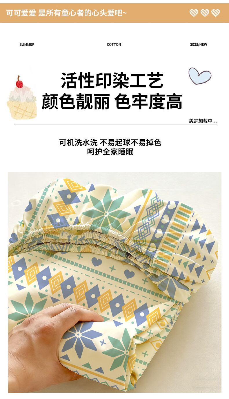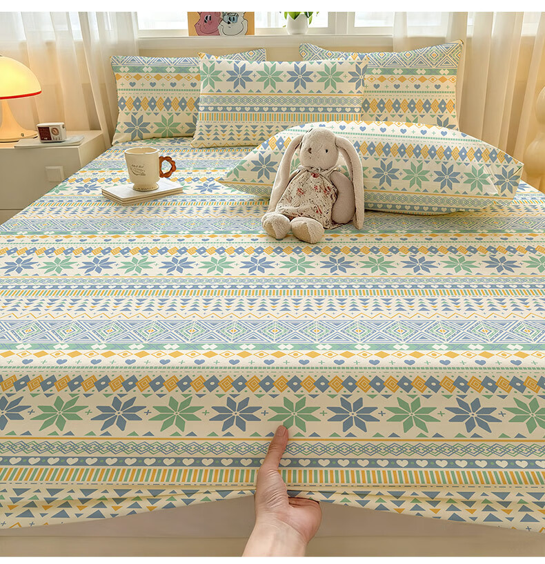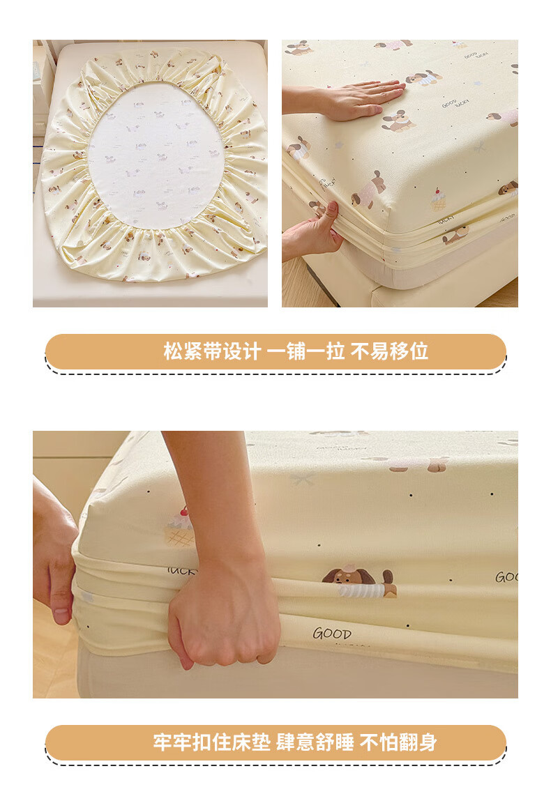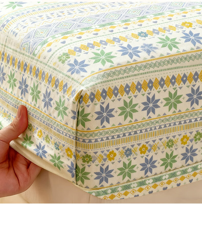 高睿老粗布非纯棉床笠单件加厚床罩防滑床单防尘罩全包席梦思保护罩 米底菱形花 【单床笠】 90cm*200cm